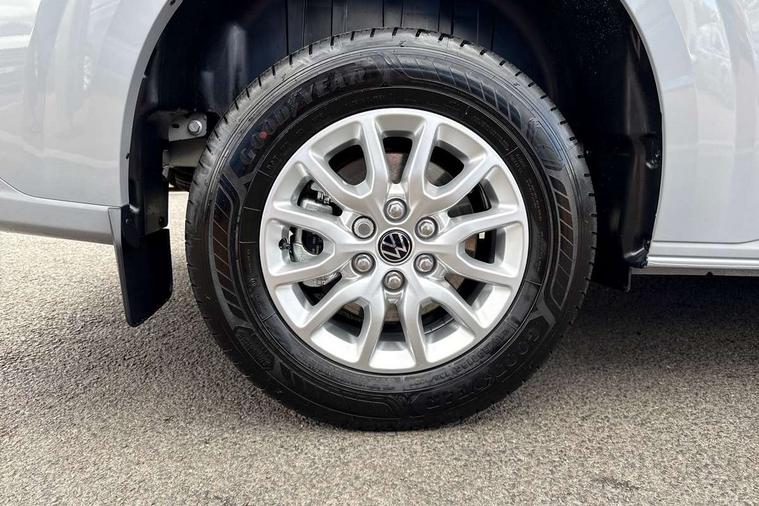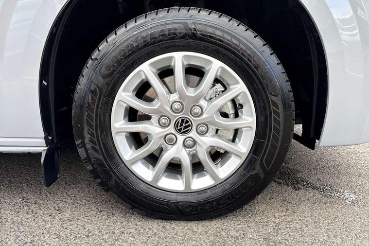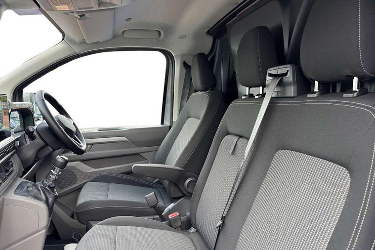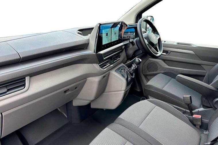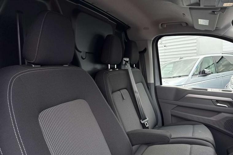 12" digital drivers display, 13" touchscreen infotainment display with wireless app connect and DAB radio, 5G Modem, Adaptive cruise control, Apple CarPlay and Android Auto, Dynamic road sign display, eCall emergency system, Electromechanical speed sensitive power steering, height and longitudinally adjustable steering column, Lane and blind spot assist with exit warning system, Preparation of VW connect and connect plus, Wireless mobile phone charging, Wrong way driver warning, Body colour bumpers, Body coloured door handles, Body coloured door mirrors, Body coloured radiator grille, Electrically heated, adjustable and folding door mirrors, Heat reflecting side window glass, Mud flaps front and rear, Rear Transporter nameplate in black grained decorative trim, Vehicle opening configuration 1x 1st row of seats, 2x all doors, 12V outlet in centre console and 12V outlet on rear right D-pillar, 2x 15-W USB data/charging ports in dashboard and 1x USB-C, 1x USB-A center bottom, 2x LED lights in load compartment, 3x additional super bright LED lights in load compartment, 4 way height and tilt adjustable head restraints, 5 additional USB-C charging ports, Black plastic scuff plate for sliding door in cargo without illumination, Cabin interior lighting, Glasses compartment in driver side roof, Grab handle on A-pillar passenger side, Illuminated lockable glovebox, Lashing rings for reinforced floor covering, Leatherette gear lever, Narrow centre console with cup holder and compartment for mobile phone, Overhead storage compartment, Rubber floor covering in cab, Striped fabric upholstery, Without passenger seats in load compartment, Driver and front passenger airbag with front passenger airbag deactivation, Dual tone horn, Front and curtain airbags for driver and front passenger, Seat belt pretensioner for driver seat, Anti theft alarm system with interior monitoring in cab, backup horn and towing protection, Electronic immobiliser, Lockable wheel bolts, Preparation for alcohol ignition interlock, 5+ Promise, Alternator - 230A, Electromechanical brake booster, Electronic stability control, ABS, ASR with deactivation button, hill start assist and brake assist system,