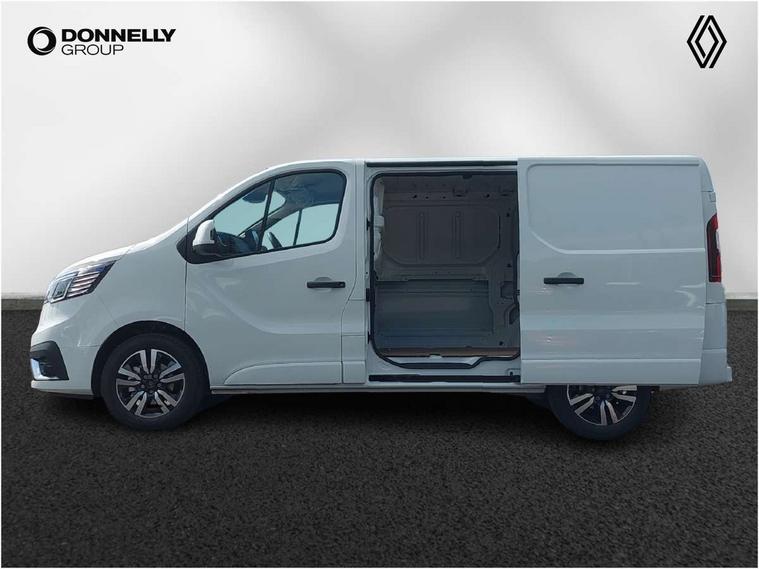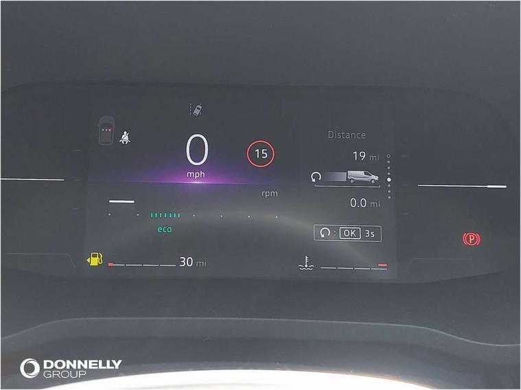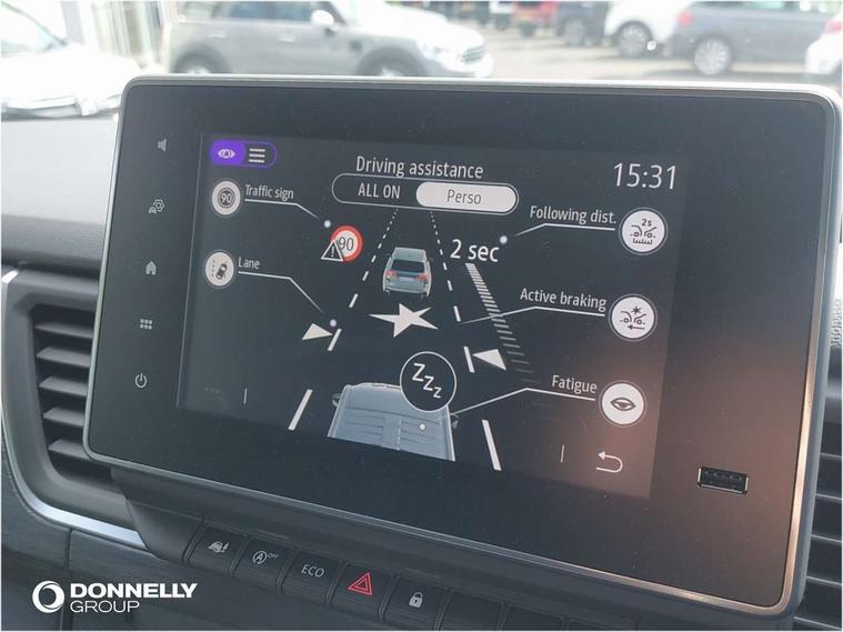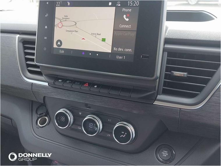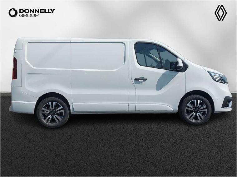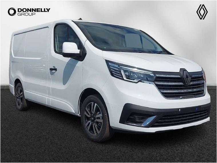 360 degree parking sensors (front, rear and lateral ultra sonic sensors), 7" Colour TFT driver information display, Driver attention alert, Driver drowsiness warning, E-Call - automated emergency call, Easy link navigation with 8" touchscreen DAB radio with bluetooth, USB + aux input, compatible with Apple CarPlay and Android Auto, ECO mode button, Gearshift indicator, Intelligent Speed Assist, Lane departure warning system, PAS, Rear parking camera, Trip computer, Wireless smart phone integration with Android auto & Apple CarPlay, Automatic high beam, Blind spot mirror on passenger sunvisor, Body coloured door mirrors, Body coloured door rail and rear tail light column with chrome grille, Body coloured front bumper, Body coloured side mouldings, Chrome Grille, Electric folding door mirrors, Electric front windows with one touch drivers window, Front fog lights, Full LED headlights with C-shaped DRL, New brand identity, Roof bar fixings, Wide view mirror, 12V power socket in front, 14 load anchorage points, Climate control, Closed glovebox, Height adjustable drivers seat with armrest and lumbar adjustment, Interior LED cabin lighting, Java cloth upholstery, LED load space lighting, Premium dashboard with horizontal grain and chrome styling, Premium faux leather steering wheel, Look pack - Trafic, Parking pack - Trafic, Visibility pack - Trafic, 3 point height adjustable seatbelts with pretensioners and load limiter, Driver and passenger airbags, Driver and passenger seatbelt reminder, Front lateral and curtain airbags and passenger airbag with deactivation, Alarm - Thatcham T1 volumetric alarm, Alcohol interlock pre-device, Deadlocking, Electronic immobiliser, Hands free key card with push button stop/start function, Keyless entry system, Remote central locking, 20L AdBlue tank, 4 disc brakes, 6 speed gearbox, 80 litre fuel tank, ABS with EBD (Electronic Brake force Distribution), Active emergency braking system, ESC (Electronic Stability Control) with Hill Start Assist and Grip Xtend, 17" Avens diamond cut alloy wheels,