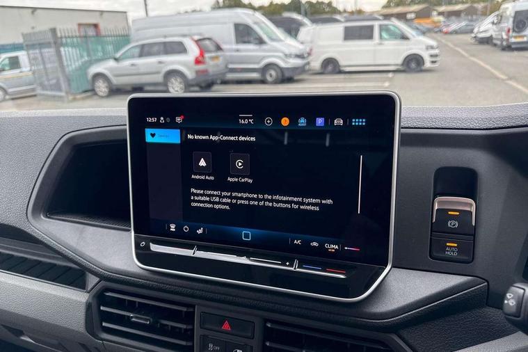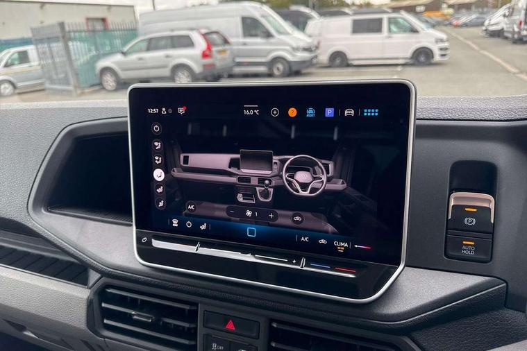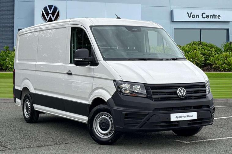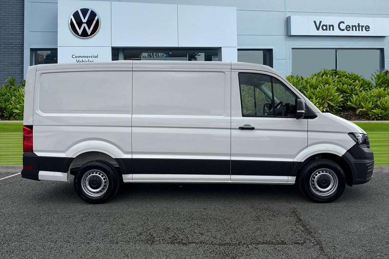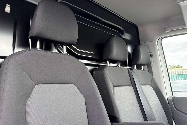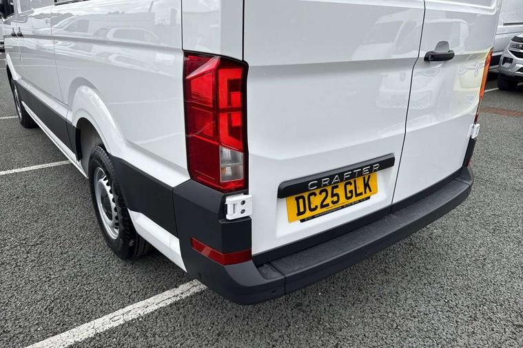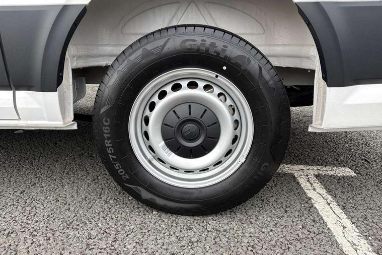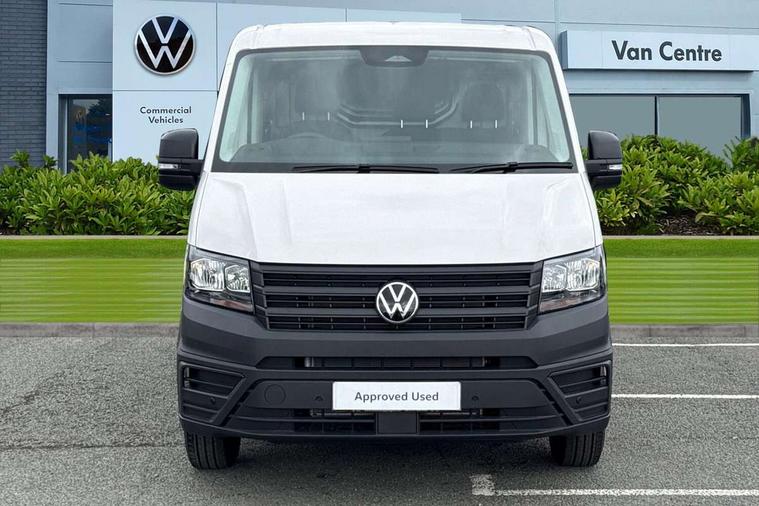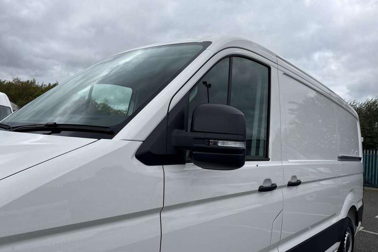 Bluetooth, Digital clock, Driver alert system, E-call + We connect basic preparation, Front and rear parking sensors, Instrument cluster, Lane keeping assist, Lights on warning buzzer, Locking fuel cap, Multi-function Display Plus, Rev counter, Service indicator, Speedometer, Voice control system, Composition media with 6.5" with we connect plus prep, 4 speaker, multifun display plus, USB, mob interface, app con, "We connect function", DAB Radio, Auto low beam mode, Leaving home function and manual coming home function, Black unpainted plastic front bumper, Cab doors, Convex and wide angle mirror, Driver seatbelt warning light, Electric windows, Heat insulating glass, Indicators in front door mirrors, Manually adjustable door mirrors, One towing eye in front, Special identification plate, Unpainted radiator grille, Air recirculation system, Ashtray, Centre console storage tray, CFCU preparation, Charcoal filter, Document holder on centre console, Drinks holders, Electromechanical Servotronic steering, Electronically controlled heating system, Fully adjustable suspension type driver seat, Height adjustable head restraints, Height and reach adjustable steering wheel, Illuminated glove compartment with lockable lid, Interior light, including 2 reading lights, Interior light, switchable by door, Jack and tool kit, Multifunction steering wheel, Preparation for interface for external use with terminal block, Storage compartments in doors and in step, right, Storage tray on dashboard, Two 12V outlets in the cab (in the dashboard), Without rear side trim panel passenger load compartment, Non-smokers pack - Crafter, 3 point inertia reel belt on all seats, Automatic hazard light with emergency braking, Crosswind assist, Driver and front passenger airbag with front passenger airbag deactivation, Height adjustable seatbelts for outer cab seats, 1 rigid key, Engine immobiliser, ABS, Automatic post collision braking system, EBA, EBD, EDL, ESP, Front disc brakes, HBA, Hill start assist, Parking brake - hill hold control, Start and stop system with regenerative braking, TCS, Hub cap covers,
