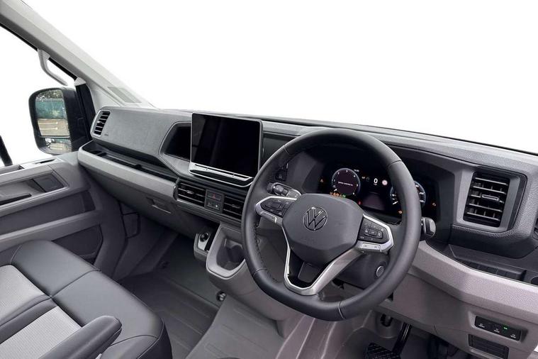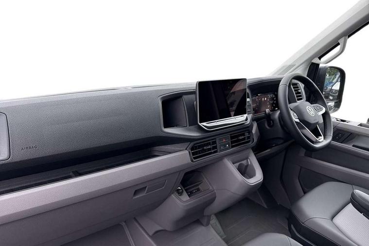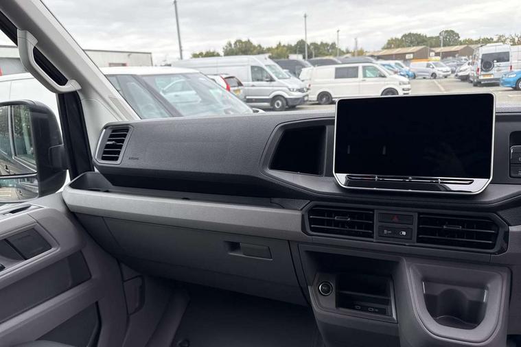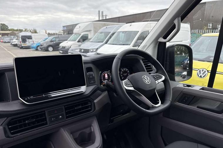Bluetooth, Digital clock, Driver alert system, E-call + We connect basic preparation, Instrument cluster, Lights on warning buzzer, Locking fuel cap, Multi-function Display Plus, Rev counter, Service indicator, Speedometer, Voice control system, Composition media with 6.5" with we connect plus prep, 4 speaker, multifun display plus, USB, mob interface, app con, "We connect function", DAB Radio, Auto low beam mode, Leaving home function and manual coming home function, Cab doors, Convex and wide angle mirror, Driver seatbelt warning light, Electric windows, Electrically heated and adjustable door mirrors, Half painted front bumper, Heat insulating glass, Indicators in front door mirrors, One towing eye in front, Rear wing doors with 270 degree hinges, Special identification plate, Unpainted radiator grille, Air recirculation system, Ashtray, Centre console storage tray, CFCU preparation, Charcoal filter, Climatic air conditioning, Document holder on centre console, Drinks holders, Electromechanical Servotronic steering, Electronically controlled heating system, Fully adjustable suspension type driver seat, Grab handles on rear entry pillars, Height adjustable head restraints, Height and reach adjustable steering wheel, Illuminated glove compartment with lockable lid, Interior light, including 2 reading lights, Interior light, switchable by door, Jack and tool kit, Preparation for interface for external use with terminal block, Storage compartments in doors and in step, right, Storage tray on dashboard, Two 12V outlets in the cab (in the dashboard), Without rear side trim panel passenger load compartment, Non-smokers pack - Crafter, 3 point inertia reel belt on all seats, Automatic hazard light with emergency braking, Crosswind assist, Driver and front passenger airbag with front passenger airbag deactivation, Height adjustable seatbelts for outer cab seats, 1 rigid key, Anti-theft alarm with interior monitor, back up horn and tow away protect, overhead storage with two 1-DIN, reading light, SAFELOCK with 2 remote keys, Engine immobiliser, ABS, Automatic post collision braking system, EBA, EBD, EDL, ESP, Front disc brakes, HBA, Hill start assist, Parking brake - hill hold control, Start and stop system with regenerative braking, TCS, Hub cap covers,