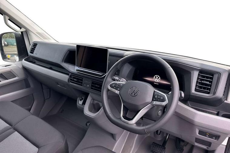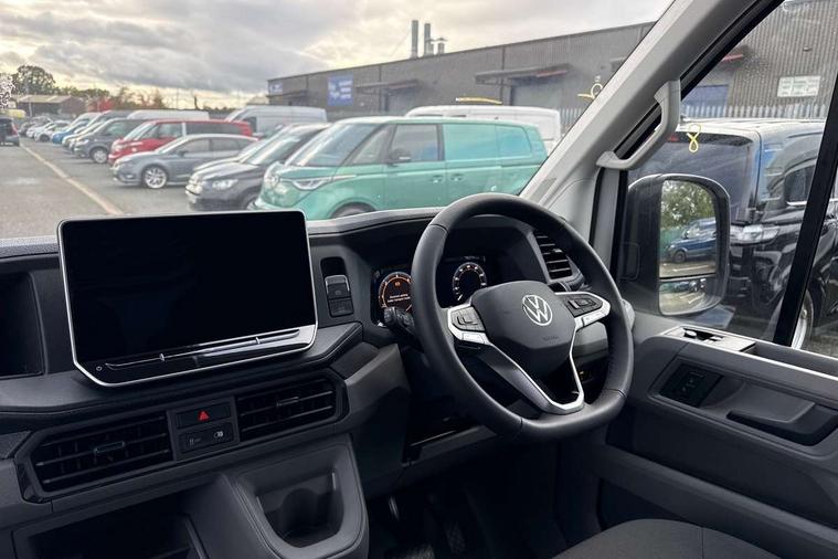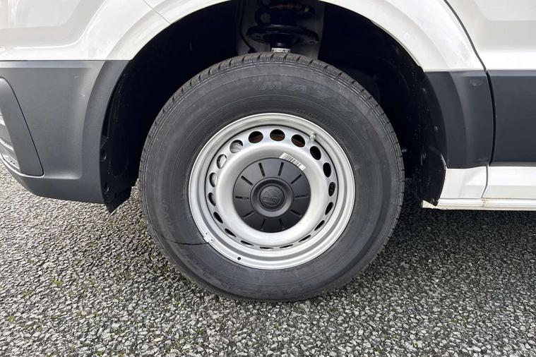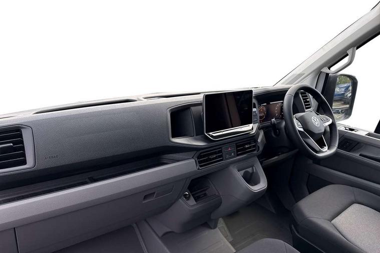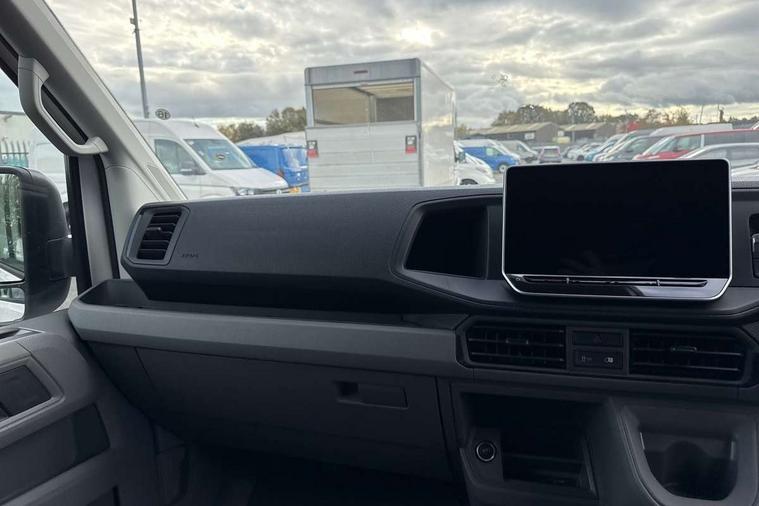 Bluetooth, Digital clock, Driver alert system, E-call + We connect basic preparation, Instrument cluster, Lights on warning buzzer, Locking fuel cap, Multi-function Display Plus, Rev counter, Service indicator, Speedometer, Voice control system, Composition media with 6.5" with we connect plus prep, 4 speaker, multifun display plus, USB, mob interface, app con, "We connect function", DAB Radio, Auto low beam mode, Leaving home function and manual coming home function, Cab doors, Convex and wide angle mirror, Driver seatbelt warning light, Electric windows, Electrically heated and adjustable door mirrors, Half painted front bumper, Heat insulating glass, Indicators in front door mirrors, One towing eye in front, Rear wing doors with 270 degree hinges, Special identification plate, Unpainted radiator grille, Air recirculation system, Ashtray, Centre console storage tray, CFCU preparation, Charcoal filter, Climatic air conditioning, Document holder on centre console, Drinks holders, Electromechanical Servotronic steering, Electronically controlled heating system, Fully adjustable suspension type driver seat, Grab handles on rear entry pillars, Height adjustable head restraints, Height and reach adjustable steering wheel, Illuminated glove compartment with lockable lid, Interior light, including 2 reading lights, Interior light, switchable by door, Jack and tool kit, Preparation for interface for external use with terminal block, Storage compartments in doors and in step, right, Storage tray on dashboard, Two 12V outlets in the cab (in the dashboard), Without rear side trim panel passenger load compartment, Non-smokers pack - Crafter, 3 point inertia reel belt on all seats, Automatic hazard light with emergency braking, Crosswind assist, Driver and front passenger airbag with front passenger airbag deactivation, Height adjustable seatbelts for outer cab seats, 1 rigid key, Anti-theft alarm with interior monitor, back up horn and tow away protect, overhead storage with two 1-DIN, reading light, SAFELOCK with 2 remote keys, Engine immobiliser, ABS, Automatic post collision braking system, EBA, EBD, EDL, ESP, Front disc brakes, HBA, Hill start assist, Parking brake - hill hold control, Start and stop system with regenerative braking, TCS, Hub cap covers,