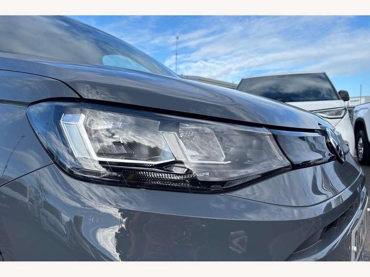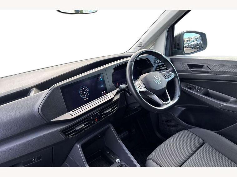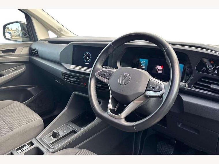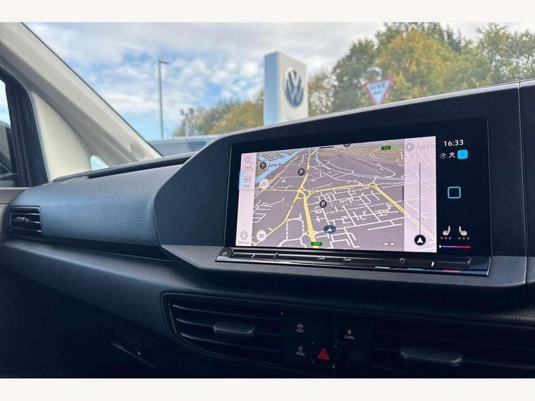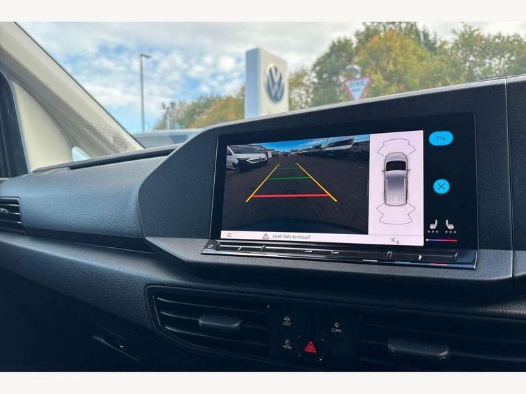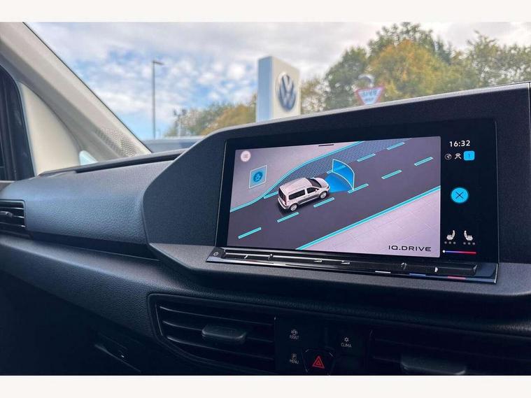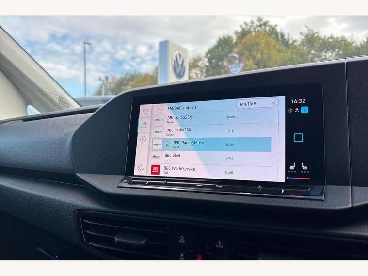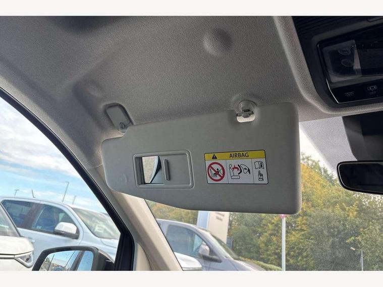 Driver alert system includes drowsiness detection, Emergency call control unit with eCall, Multi-function Display, Seatbelt warning indicator, Service indicator, Start-stop system with regenerative braking, DAB Radio, We Connect Plus Preparation, Automatic hazard light activation under emergency braking, Black painted exterior mirror housings, body-colored door handles and Silver sliding door rail, Body coloured bumpers, Electric front windows, Heated windscreen, LED rear combination lights, LED rear tail lights, Roof rail preparation, Windscreen wiper with variable intermittent delay and wash-wipe system, Electronically controlled heating system, ergoComfort seats for driver, Interior light in headlining, Lockable glove compartment door with light, Manual height adjustment for front seats and seat cushion inclination and depth adjustment on drivers seat, Multi function leather steering wheel, Power-adjustable lumbar support for drivers seat, Reach and rake adjustable steering column, Six lashing points for securing loads, Steering wheel paddle shift, Storage compartments under driver and front passenger seats, Sun visors with mirror, airbag label on front passenger sun visor, 3-point seat belts in front, with pretensioner and height adjustment, Driver and front passenger airbag with front passenger airbag deactivation, Anti-theft alarm system, interior monitoring, backup horn, and towing protection, Electronic engine immobiliser, Remote central locking with deadlocks, interior locking, Anti locking braking system (ABS), Automatic post collision braking system, Electric parking brake with auto hold function, Electronic brake force distribution (EBD), Electronic differential lock (EDL), Electronic stabilisation programme (ESP), Emergency brake assist, Engine drag torque control (MSR), Hill hold assist, Traction control system (TCS), Decorative beige birch vein inserts, Wheel bolts with anti-theft protection (unlockable),