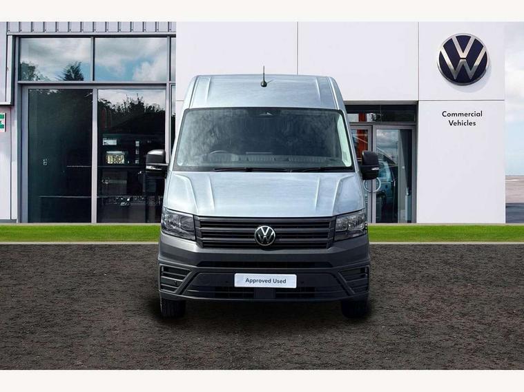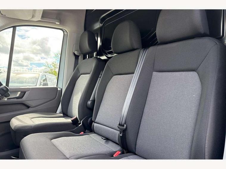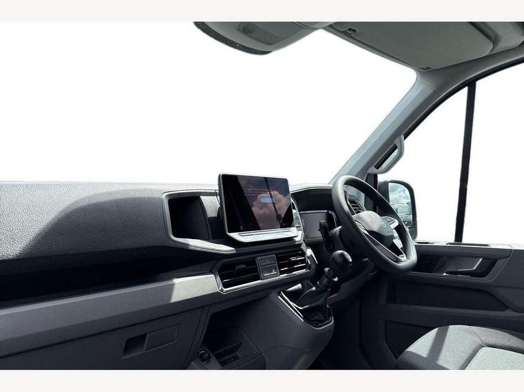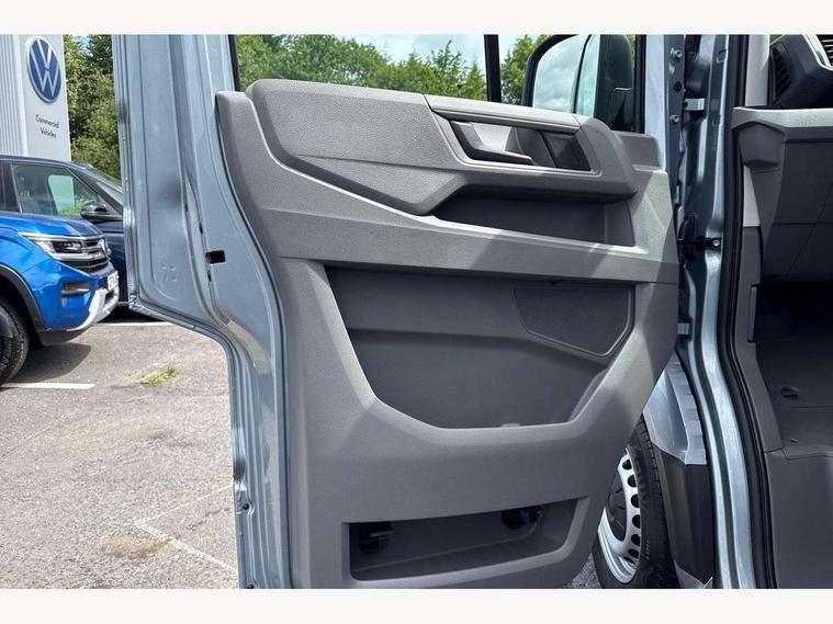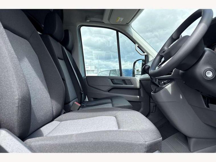 Advanced driver attention and drowsiness monitor, Blind spot monitor, Bluetooth, Digital clock, Digital cockpit with active Info display, Dynamic road sign display, E-call + We connect basic preparation, Forward collision warning with warning and braking reaction to vehicles, pedestrians and cyclists, Front assist including city emergency braking, Instrument cluster, Lane keeping assist, Lights on warning buzzer, Locking fuel cap, Rev counter, Roof console for interior lighting control, Service indicator, Speedometer, USB socket at top of windscreen, Wireless charging, 2 USB C ports in dashboard, DAB Radio, Auto low beam mode, Leaving home function and manual coming home function, Black unpainted plastic front bumper, Cab doors, Convex and wide angle mirror, Driver seatbelt warning light, Electric windows, Heat insulating glass, Indicators in front door mirrors, One towing eye in front, Rear badges, Special identification plate, Touch panel control for exterior lights, Unpainted radiator grille, Windscreen wiper auto control with light and rain sensor, Air recirculation system, Ashtray, Centre console storage tray, CFCU preparation, Charcoal filter, Document holder on centre console, Drinks holders, Electromechanical Servotronic steering, Electronically controlled heating system, Fully adjustable suspension type driver seat, Height adjustable head restraints, Height and reach adjustable steering wheel, Illuminated glove compartment with lockable lid, Interior light, including 2 reading lights, Interior light, switchable by door, Jack and tool kit, Preparation for interface for external use with terminal block, Storage compartments in doors and in step, right, Storage tray on dashboard, Two 12V outlets in the cab (in the dashboard), Without rear side trim panel passenger load compartment, Non-smokers pack - Crafter, 3 point inertia reel belt on all seats, Automatic hazard light with emergency braking, Crosswind assist, Driver and front passenger airbag with front passenger airbag deactivation, Height adjustable seatbelts for outer cab seats, 1 rigid key, Central locking system with Keyless Go without SAFELOCK entry - Keyless entry and start, Engine immobiliser, ABS, Automatic post collision braking system, EBA, EBD, EDL, Electronic parking brake - hill hold control, ESP, Front disc brakes, HBA, Hill start assist, Start and stop system with regenerative braking, TCS, Hub cap covers,