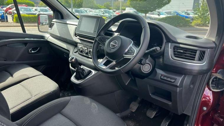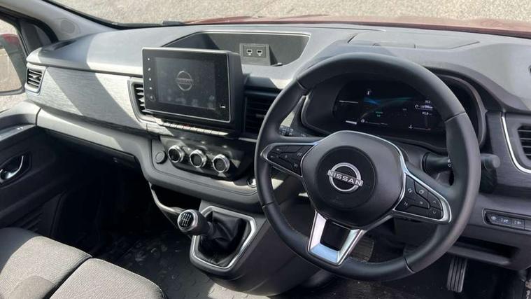 7" Colour TFT screen in dials dash, Blind Spot warning system, Bluetooth, Car phone pre installed, Driver drowsiness and attention warning, eCall, Front parking sensor, Intelligent Speed Assist (cruise control with speed limiter and traffic sign recognition), Lane departure warning system, Low fuel level warning light, Navigation system, Nissan connected services, PAS, Rear parking sensor, Rear view camera, Service indicator, Trip computer, AM/FM Radio, Apple Carplay/Android Auto, Audio switch on steering wheel, Aux port, Digital radio (DAB), Media center with 8" Touchscreen at centre of dashboard and multi-touch support, USB socket, Automatic headlights and wipers, Blind spot mirror in sunvisor, Body coloured exterior mirrors, Body coloured front and rear bumper, side mouldings and rear columns, Daytime running lights, Electric front windows with one touch drivers window, Electric heated and folding door mirrors, High low headlights beam, LED front fog lights, LED headlights, Left side sliding door, 2 x cargo load mounting hooks on each side of C and D pillars, 4 x cargo floor load mounting hooks on each side, Cloth upholstery, Cupholders on dashboard, Drivers armrest, Foldable Passenger bench with fixed table, Front automatic AC, Front head restraints, Full steel bulkhead, Height adjustable driver seat with lumbar support, Imitation leather steering wheel, Loadthrough facility in bulkhead, Passenger bench with underseat storage, Steering wheel rake adjustment, Steering wheel reach adjustment, Automatic door locking (at 5mph), Driver's airbag, Passenger airbag, Tyre pressure monitoring system, Alcohol interlock predisposition, Deadlocks, I Key, Insurance approved immobiliser, Radio frequency remote central locking, Thatcham alarm system, 12V socket in load area, ABS + EBD, Automatic forward emergency braking system (AEBS), ESP, Hill start assist and Extended grip, 17" alloy wheels, Full size spare wheel,