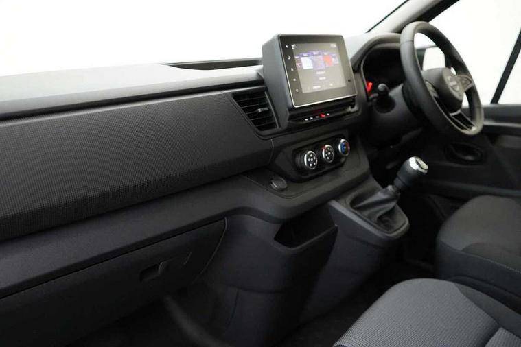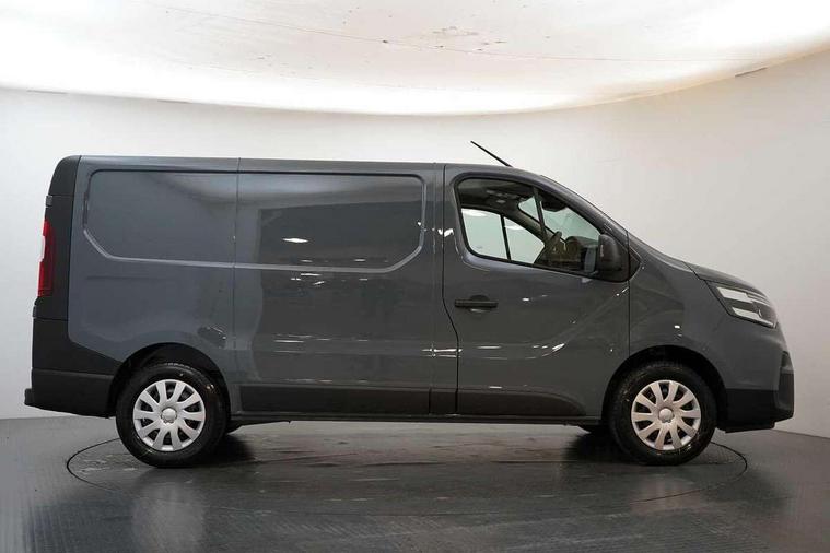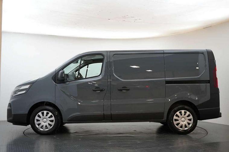 3.5" B&W TFT screen in dials dash, Bluetooth, Car phone pre installed, Driver drowsiness and attention warning, eCall, Intelligent Speed Assist (cruise control with speed limiter and traffic sign recognition), Lane departure warning system, Low fuel level warning light, Nissan connected services, PAS, Rear parking sensor, Service indicator, Trip computer, AM/FM Radio, Apple Carplay/Android Auto, Audio switch on steering wheel, Aux port, Digital radio (DAB), Media center with 8" Touchscreen at centre of dashboard and multi-touch support, USB socket, 180 degree unglazed rear french doors, Automatic headlights and wipers, Black exterior mirrors, Black rear bumper, side moulding and rear columns, Blind spot mirror in sunvisor, Body coloured half painted front bumper, Daytime running lights, Electric front windows with one touch drivers window, Electric heated door mirrors, LED front fog lights, LED headlights, Left side sliding door, 2 x cargo load mounting hooks on each side of C and D pillars, 4 x cargo floor load mounting hooks on each side, Cloth upholstery, Cupholders on dashboard, Drivers armrest, Foldable Passenger bench with fixed table, Front head restraints, Front manual AC, Full steel bulkhead, Height adjustable driver seat with lumbar support, Loadthrough facility in bulkhead, Passenger bench with underseat storage, Steering wheel rake adjustment, Steering wheel reach adjustment, Automatic door locking (at 5mph), Driver's airbag, Passenger airbag, Tyre pressure monitoring system, 2 button key, Alcohol interlock predisposition, Deadlocks, Insurance approved immobiliser, Radio frequency remote central locking, Thatcham alarm system, 12V socket in load area, ABS + EBD, Automatic forward emergency braking system (AEBS), ESP, Hill start assist and Extended grip, 16" steel wheels, Full size spare wheel,