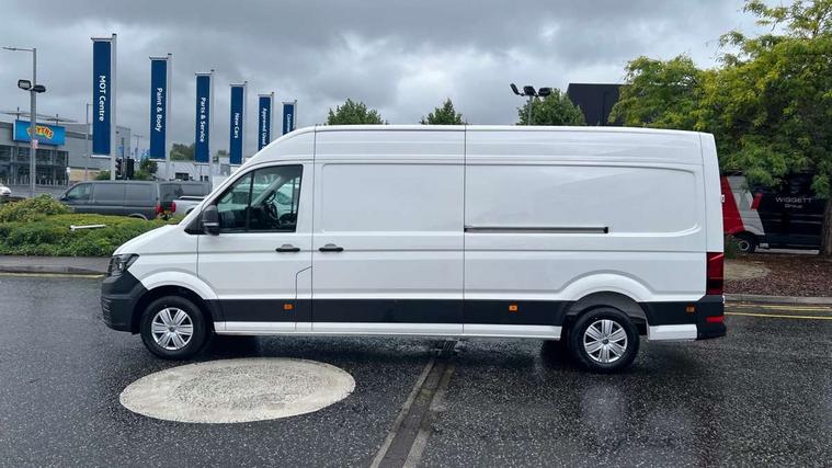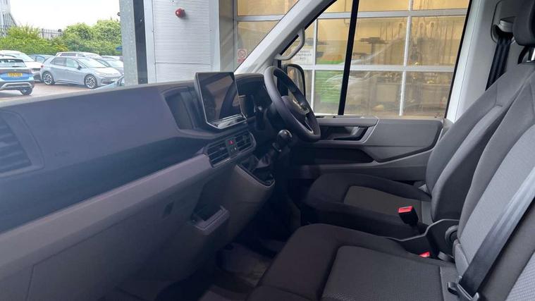 Advanced driver attention and drowsiness monitor, Blind spot monitor, Bluetooth, Digital clock, Digital cockpit with active Info display, Dynamic road sign display, E-call + We connect basic preparation, Forward collision warning with warning and braking reaction to vehicles, pedestrians and cyclists, Front assist including city emergency braking, Instrument cluster, Lane keeping assist, Lights on warning buzzer, Locking fuel cap, Rev counter, Roof console for interior lighting control, Service indicator, Speedometer, USB socket at top of windscreen, Wireless charging, 2 USB C ports in dashboard, DAB Radio, Auto low beam mode, Leaving home function and manual coming home function, Black unpainted plastic front bumper, Cab doors, Convex and wide angle mirror, Driver seatbelt warning light, Electric windows, Heat insulating glass, Indicators in front door mirrors, One towing eye in front, Rear badges, Special identification plate, Touch panel control for exterior lights, Unpainted radiator grille, Windscreen wiper auto control with light and rain sensor, Air recirculation system, Ashtray, Centre console storage tray, CFCU preparation, Charcoal filter, Document holder on centre console, Drinks holders, Electromechanical Servotronic steering, Electronically controlled heating system, Fully adjustable suspension type driver seat, Height adjustable head restraints, Height and reach adjustable steering wheel, Illuminated glove compartment with lockable lid, Interior light, including 2 reading lights, Interior light, switchable by door, Jack and tool kit, Preparation for interface for external use with terminal block, Storage compartments in doors and in step, right, Storage tray on dashboard, Two 12V outlets in the cab (in the dashboard), Without rear side trim panel passenger load compartment, Non-smokers pack - Crafter, 3 point inertia reel belt on all seats, Automatic hazard light with emergency braking, Crosswind assist, Driver and front passenger airbag with front passenger airbag deactivation, Height adjustable seatbelts for outer cab seats, 1 rigid key, Central locking system with Keyless Go without SAFELOCK entry - Keyless entry and start, Engine immobiliser, ABS, Automatic post collision braking system, EBA, EBD, EDL, Electronic parking brake - hill hold control, ESP, Front disc brakes, HBA, Hill start assist, Start and stop system with regenerative braking, TCS, Hub cap covers,