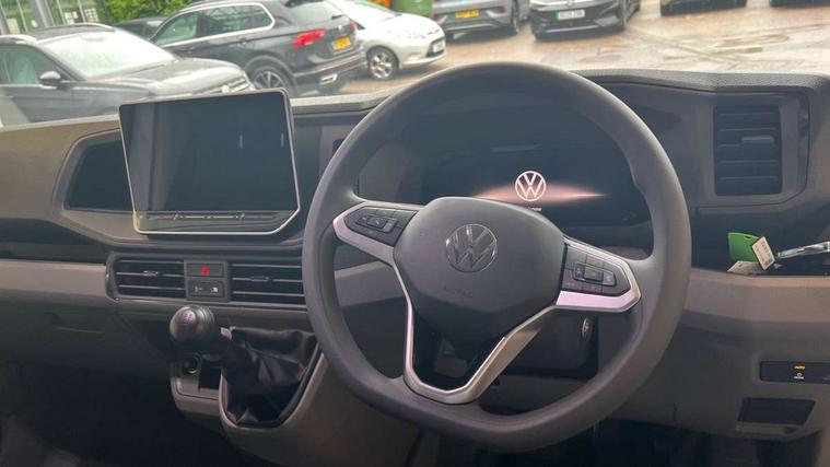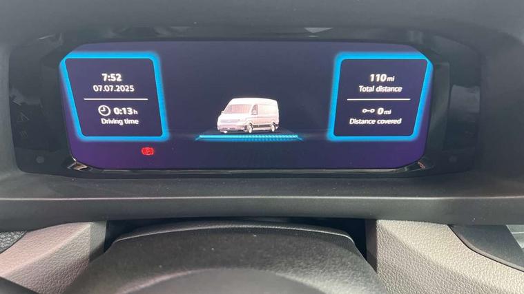 Advanced driver attention and drowsiness monitor, Blind spot monitor, Bluetooth, Digital clock, Digital cockpit with active Info display, Dynamic road sign display, E-call + We connect basic preparation, Forward collision warning with warning and braking reaction to vehicles, pedestrians and cyclists, Front assist including city emergency braking, Instrument cluster, Lane keeping assist, Lights on warning buzzer, Locking fuel cap, Rev counter, Roof console for interior lighting control, Service indicator, Speedometer, USB socket at top of windscreen, Wireless charging, 2 USB C ports in dashboard, DAB Radio, Auto low beam mode, Leaving home function and manual coming home function, Black unpainted plastic front bumper, Cab doors, Convex and wide angle mirror, Driver seatbelt warning light, Electric windows, Heat insulating glass, Indicators in front door mirrors, One towing eye in front, Rear badges, Special identification plate, Touch panel control for exterior lights, Unpainted radiator grille, Windscreen wiper auto control with light and rain sensor, Air recirculation system, Ashtray, Centre console storage tray, CFCU preparation, Charcoal filter, Document holder on centre console, Drinks holders, Electromechanical Servotronic steering, Electronically controlled heating system, Fully adjustable suspension type driver seat, Height adjustable head restraints, Height and reach adjustable steering wheel, Illuminated glove compartment with lockable lid, Interior light, including 2 reading lights, Interior light, switchable by door, Jack and tool kit, Preparation for interface for external use with terminal block, Storage compartments in doors and in step, right, Storage tray on dashboard, Two 12V outlets in the cab (in the dashboard), Without rear side trim panel passenger load compartment, Non-smokers pack - Crafter, 3 point inertia reel belt on all seats, Automatic hazard light with emergency braking, Crosswind assist, Driver and front passenger airbag with front passenger airbag deactivation, Height adjustable seatbelts for outer cab seats, 1 rigid key, Central locking system with Keyless Go without SAFELOCK entry - Keyless entry and start, Engine immobiliser, ABS, Automatic post collision braking system, EBA, EBD, EDL, Electronic parking brake - hill hold control, ESP, Front disc brakes, HBA, Hill start assist, Start and stop system with regenerative braking, TCS, Hub cap covers,