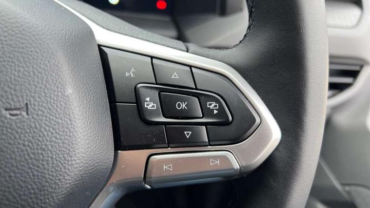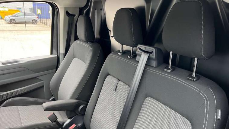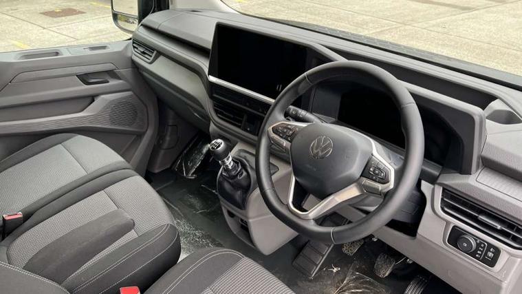 12" digital drivers display, 13" touchscreen infotainment display with wireless app connect and DAB radio, 5G Modem, Adaptive cruise control, Apple CarPlay and Android Auto, Dynamic road sign display, eCall emergency system, Electromechanical speed sensitive power steering, height and longitudinally adjustable steering column, Lane and blind spot assist with exit warning system, Preparation of VW connect and connect plus, Wireless mobile phone charging, Wrong way driver warning, Body colour bumpers, Body coloured door handles, Body coloured door mirrors, Body coloured radiator grille, Electrically heated, adjustable and folding door mirrors, Heat reflecting side window glass, Mud flaps front and rear, Rear Transporter nameplate in black grained decorative trim, Vehicle opening configuration 1x 1st row of seats, 2x all doors, 12V outlet in centre console and 12V outlet on rear right D-pillar, 2x 15-W USB data/charging ports in dashboard and 1x USB-C, 1x USB-A center bottom, 2x LED lights in load compartment, 3x additional super bright LED lights in load compartment, 4 way height and tilt adjustable head restraints, 5 additional USB-C charging ports, Black plastic scuff plate for sliding door in cargo without illumination, Cabin interior lighting, Glasses compartment in driver side roof, Grab handle on A-pillar passenger side, Illuminated lockable glovebox, Lashing rings for reinforced floor covering, Leatherette gear lever, Narrow centre console with cup holder and compartment for mobile phone, Overhead storage compartment, Rubber floor covering in cab, Striped fabric upholstery, Without passenger seats in load compartment, Driver and front passenger airbag with front passenger airbag deactivation, Dual tone horn, Front and curtain airbags for driver and front passenger, Seat belt pretensioner for driver seat, Anti theft alarm system with interior monitoring in cab, backup horn and towing protection, Electronic immobiliser, Lockable wheel bolts, Preparation for alcohol ignition interlock, 5+ Promise, Alternator - 230A, Electromechanical brake booster, Electronic stability control, ABS, ASR with deactivation button, hill start assist and brake assist system,
