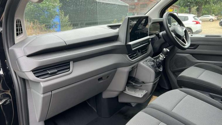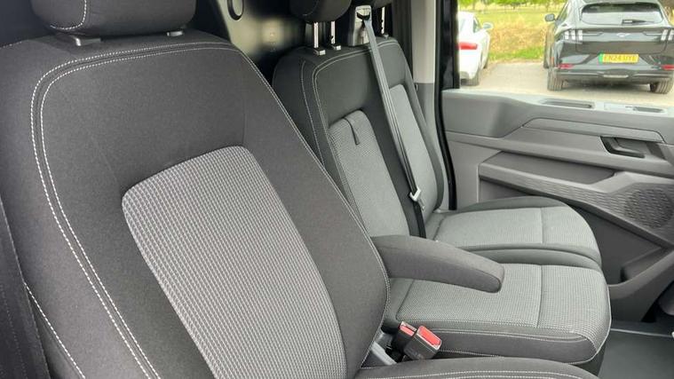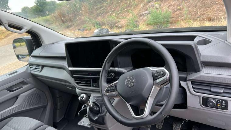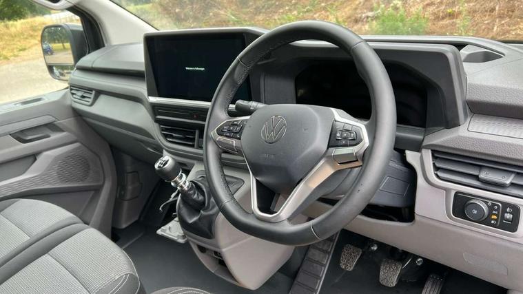 12" digital drivers display, 13" touchscreen infotainment display with wireless app connect and DAB radio, 5G Modem, Adaptive cruise control, Apple CarPlay and Android Auto, Dynamic road sign display, eCall emergency system, Electromechanical speed sensitive power steering, height and longitudinally adjustable steering column, Lane and blind spot assist with exit warning system, Preparation of VW connect and connect plus, Wireless mobile phone charging, Wrong way driver warning, Body colour bumpers, Body coloured door handles, Body coloured door mirrors, Body coloured radiator grille, Electrically heated, adjustable and folding door mirrors, Heat reflecting side window glass, Mud flaps front and rear, Rear Transporter nameplate in black grained decorative trim, Vehicle opening configuration 1x 1st row of seats, 2x all doors, 12V outlet in centre console and 12V outlet on rear right D-pillar, 2x 15-W USB data/charging ports in dashboard and 1x USB-C, 1x USB-A center bottom, 2x LED lights in load compartment, 3x additional super bright LED lights in load compartment, 4 way height and tilt adjustable head restraints, 5 additional USB-C charging ports, Black plastic scuff plate for sliding door in cargo without illumination, Cabin interior lighting, Glasses compartment in driver side roof, Grab handle on A-pillar passenger side, Illuminated lockable glovebox, Lashing rings for reinforced floor covering, Leatherette gear lever, Narrow centre console with cup holder and compartment for mobile phone, Overhead storage compartment, Rubber floor covering in cab, Striped fabric upholstery, Without passenger seats in load compartment, Driver and front passenger airbag with front passenger airbag deactivation, Dual tone horn, Front and curtain airbags for driver and front passenger, Seat belt pretensioner for driver seat, Anti theft alarm system with interior monitoring in cab, backup horn and towing protection, Electronic immobiliser, Lockable wheel bolts, Preparation for alcohol ignition interlock, 5+ Promise, Alternator - 230A, Electromechanical brake booster, Electronic stability control, ABS, ASR with deactivation button, hill start assist and brake assist system,