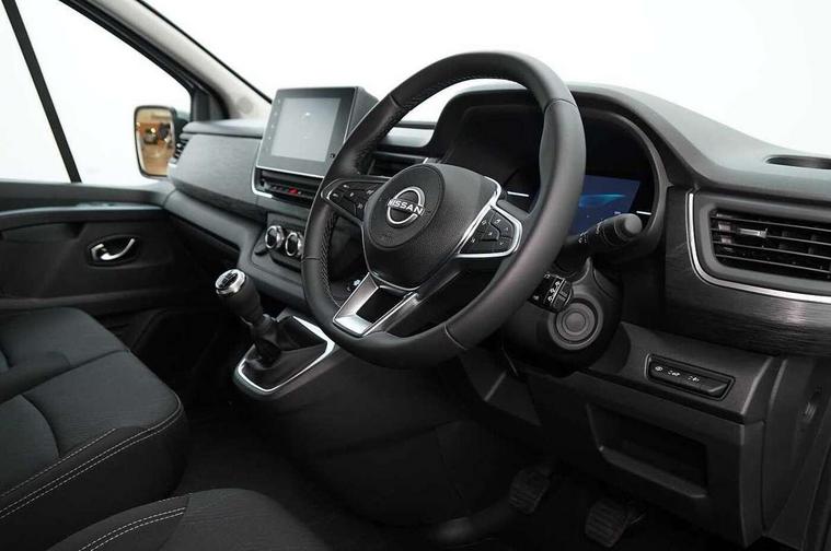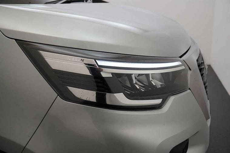 7" Colour TFT screen in dials dash, Blind Spot warning system, Bluetooth, Car phone pre installed, Driver drowsiness and attention warning, eCall, Front parking sensor, Intelligent Speed Assist (cruise control with speed limiter and traffic sign recognition), Lane departure warning system, Low fuel level warning light, Navigation system, Nissan connected services, PAS, Rear parking sensor, Rear view camera, Service indicator, Trip computer, AM/FM Radio, Apple Carplay/Android Auto, Audio switch on steering wheel, Aux port, Digital radio (DAB), Media center with 8" Touchscreen at centre of dashboard and multi-touch support, USB socket, Automatic headlights and wipers, Blind spot mirror in sunvisor, Body coloured exterior mirrors, Body coloured front and rear bumper, side mouldings and rear columns, Daytime running lights, Electric front windows with one touch drivers window, Electric heated and folding door mirrors, High low headlights beam, LED front fog lights, LED headlights, Left side sliding door, 2 x cargo load mounting hooks on each side of C and D pillars, 4 x cargo floor load mounting hooks on each side, Cloth upholstery, Cupholders on dashboard, Drivers armrest, Foldable Passenger bench with fixed table, Front automatic AC, Front head restraints, Full steel bulkhead, Height adjustable driver seat with lumbar support, Imitation leather steering wheel, Loadthrough facility in bulkhead, Passenger bench with underseat storage, Steering wheel rake adjustment, Steering wheel reach adjustment, Automatic door locking (at 5mph), Driver's airbag, Passenger airbag, Tyre pressure monitoring system, Alcohol interlock predisposition, Deadlocks, I Key, Insurance approved immobiliser, Radio frequency remote central locking, Thatcham alarm system, 12V socket in load area, ABS + EBD, Automatic forward emergency braking system (AEBS), ESP, Hill start assist and Extended grip, 17" alloy wheels, Full size spare wheel,