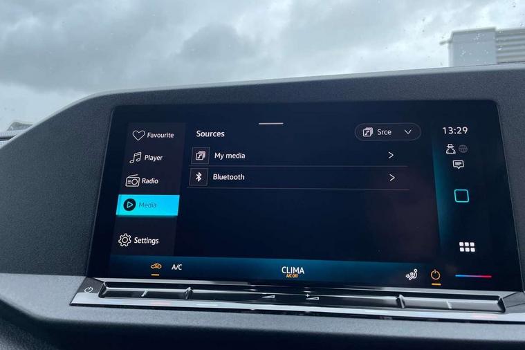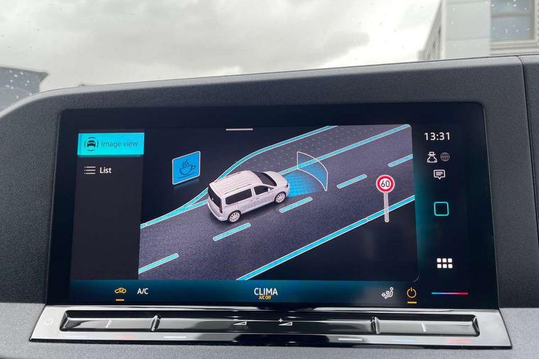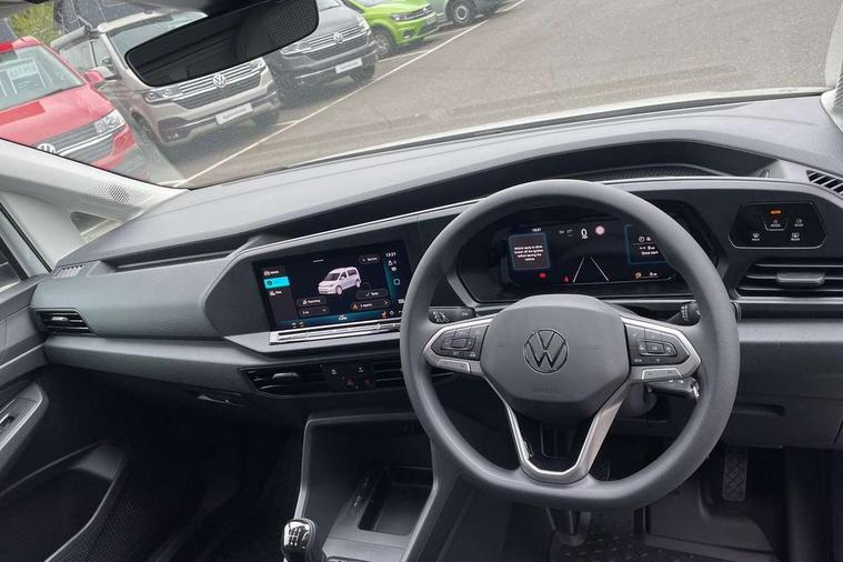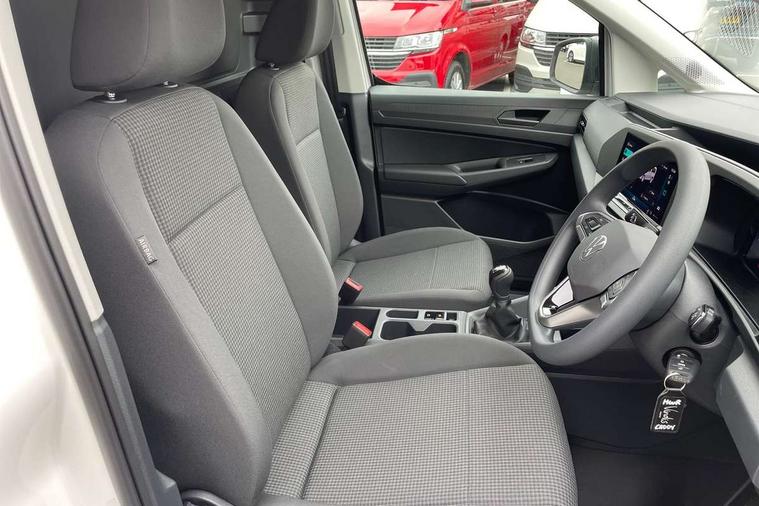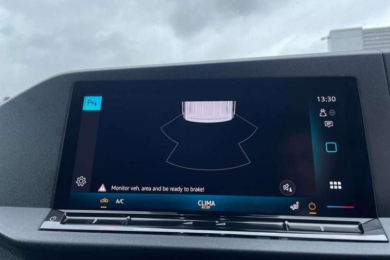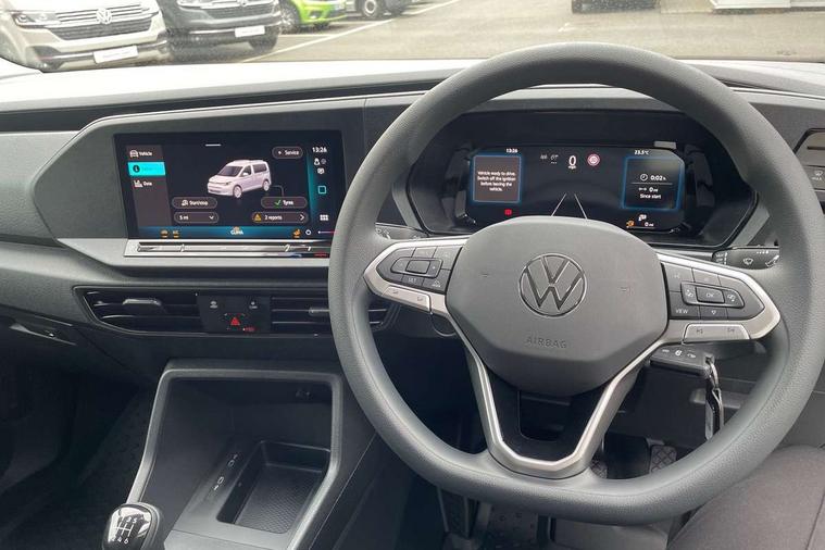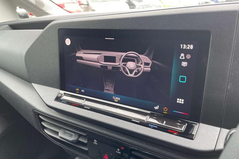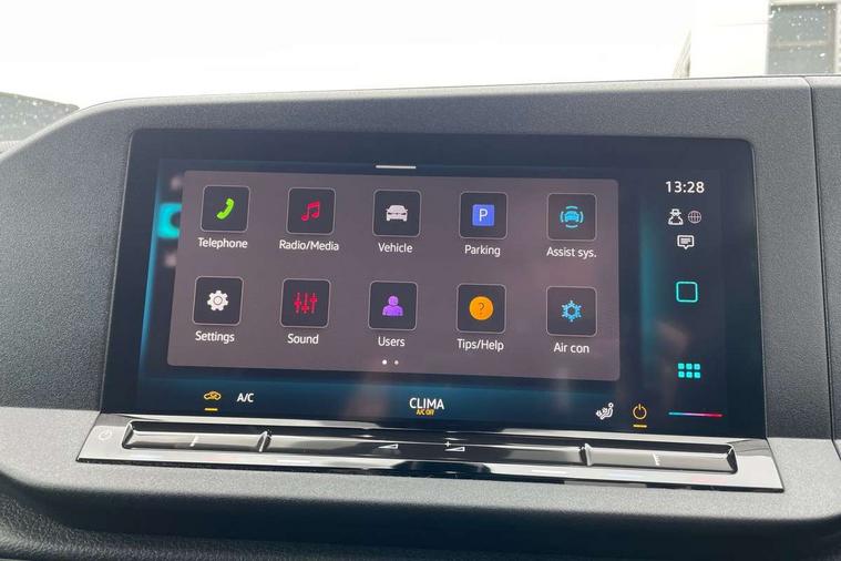 Bluetooth - Mobile phone interface, Car2X technology, Driver alert system, eCall emergency system, Intelligent Speed Assist, Lane assist, Seatbelt warning indicator, Service indicator, Start-stop system with regenerative braking, 2 USB interfaces type C in dashboard, DAB Radio, We Connect Basic Preparation, Automatic hazard light activation under emergency braking, Black front and rear bumpers, Electric front windows, Heat insulating windscreen, Roof rail preparation, Windscreen wiper with variable intermittent delay and wash-wipe system, Dimming breakaway interior rear view mirror, Electronically controlled heating system, Interior light in headliner incorporting LED technology, Lockable glove compartment door with light, Manual heating and ventilation system, Manual height adjustment for front seats, Reach and rake adjustable steering column, Six lashing points for securing loads, 3-point seat belts in front, with pretensioner and height adjustment, Driver and front passenger airbag with front passenger airbag deactivation, Tyre pressure monitoring system, Anti-theft alarm system, interior monitoring, backup horn, and towing protection, Electronic engine immobiliser, Remote central locking with deadlocks, interior locking, Anti locking braking system (ABS), Automatic post collision braking system, Autonomous Emergency Braking Front Assist with Pedestrian Monitoring, Brake assist, Diesel particulate filter, Electric parking brake with auto hold function, Electronic brake force distribution (EBD), Electronic differential lock (EDL), Electronic stabilisation programme (ESP), Engine drag torque control (MSR), Hill hold assist, Traction control system (TCS), Decorative beige birch vein inserts, Full size wheel trims,