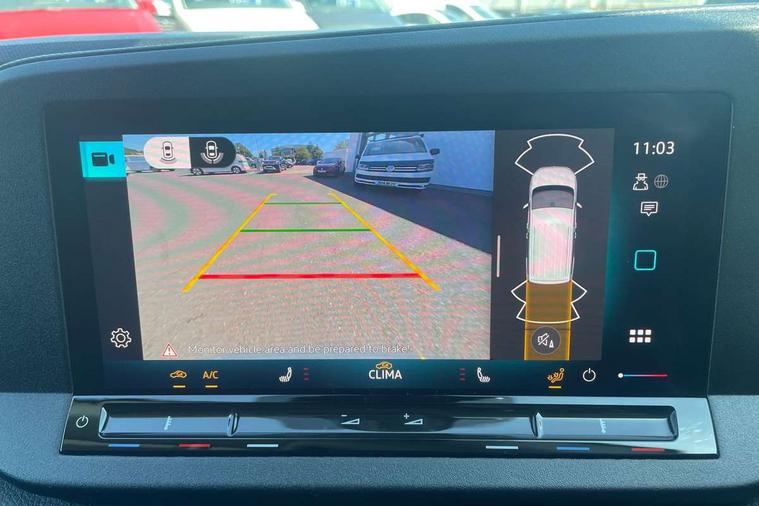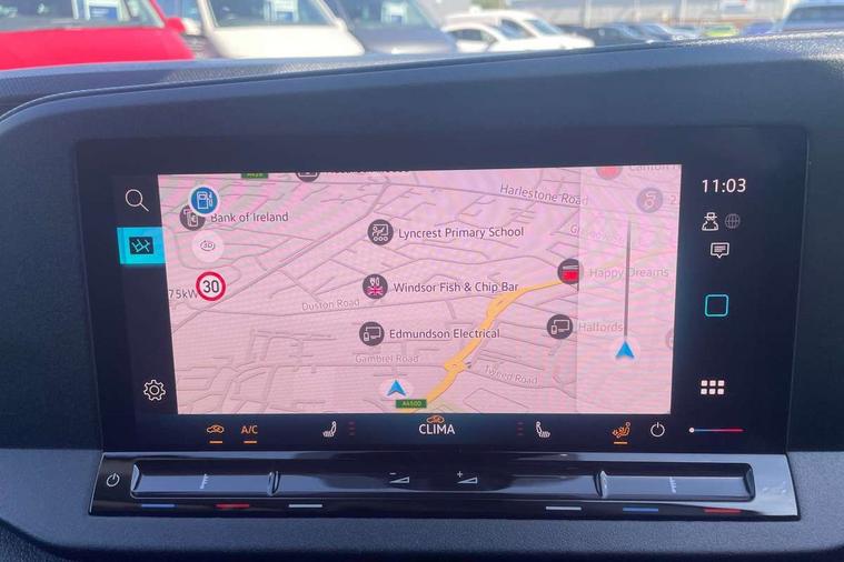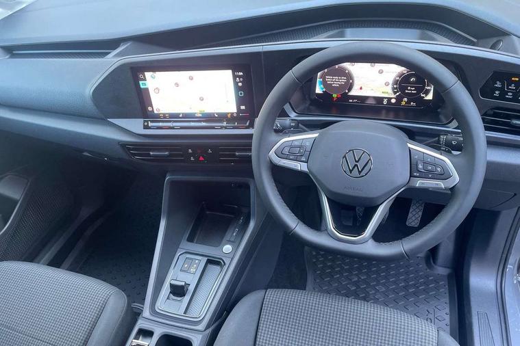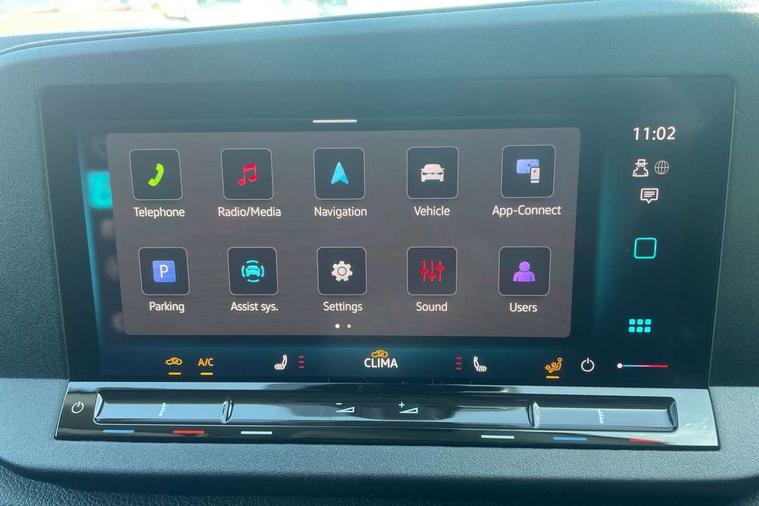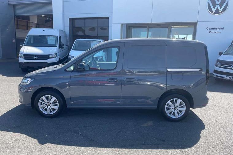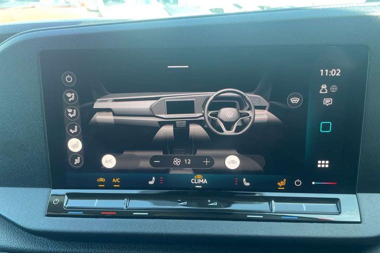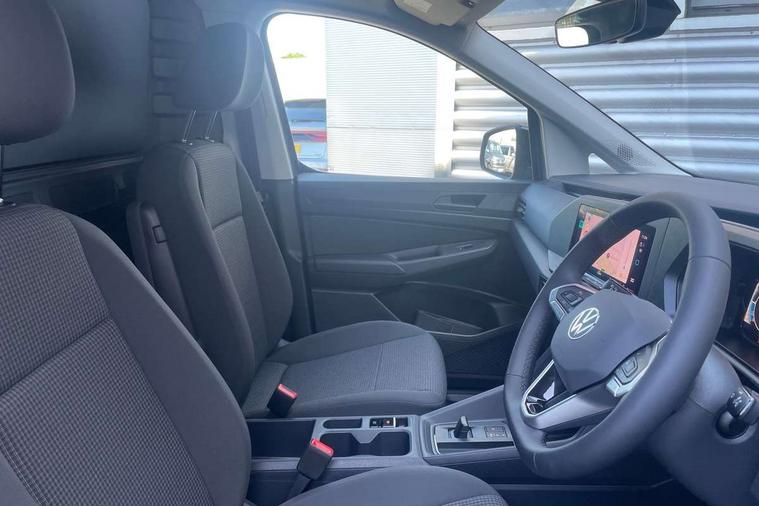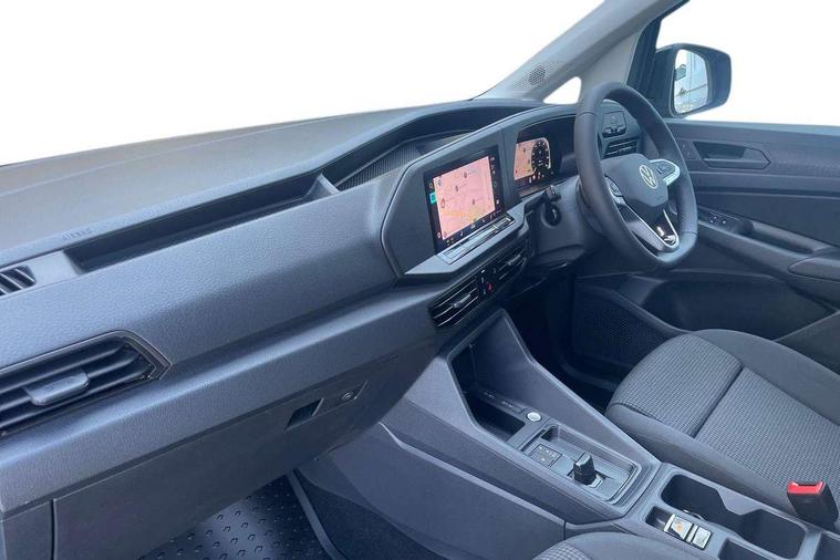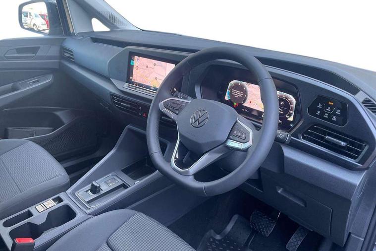 Bluetooth - Mobile phone interface, Car2X technology, Driver alert system, eCall emergency system, Intelligent Speed Assist, Lane assist, Seatbelt warning indicator, Service indicator, Start-stop system with regenerative braking, 2 USB interfaces type C in dashboard, App-Connect - Wireless for Apple CarPlay, DAB Radio, We Connect Plus Preparation, Automatic hazard light activation under emergency braking, Black painted exterior mirror housings, body-colored door handles and Silver sliding door rail, Body coloured bumpers, Electric front windows, LED rear combination lights, LED rear tail lights, Roof rail preparation, Windscreen wiper with variable intermittent delay and wash-wipe system, Dimming breakaway interior rear view mirror, Electronically controlled heating system, ergoComfort seats for driver, Interior light in headliner incorporting LED technology, Lockable glove compartment door with light, Manual heating and ventilation system, Manual height adjustment for front seats and seat cushion inclination and depth adjustment on drivers seat, Multi function leather steering wheel, Power-adjustable lumbar support for drivers seat, Reach and rake adjustable steering column, Six lashing points for securing loads, Steering wheel paddle shift, Storage compartments under driver and front passenger seats, Sun visors with mirror, airbag label on front passenger sun visor, Winter pack plus - Caddy, 3-point seat belts in front, with pretensioner and height adjustment, Driver and front passenger airbag with front passenger airbag deactivation, Tyre pressure monitoring system, Anti-theft alarm system, interior monitoring, backup horn, and towing protection, Electronic engine immobiliser, Remote central locking with deadlocks, interior locking, Anti locking braking system (ABS), Automatic post collision braking system, Brake assist, Diesel particulate filter, Electric parking brake with auto hold function, Electronic brake force distribution (EBD), Electronic differential lock (EDL), Electronic stabilisation programme (ESP), Engine drag torque control (MSR), Hill hold assist, Traction control system (TCS), Decorative beige birch vein inserts, Wheel bolts with anti-theft protection (unlockable),