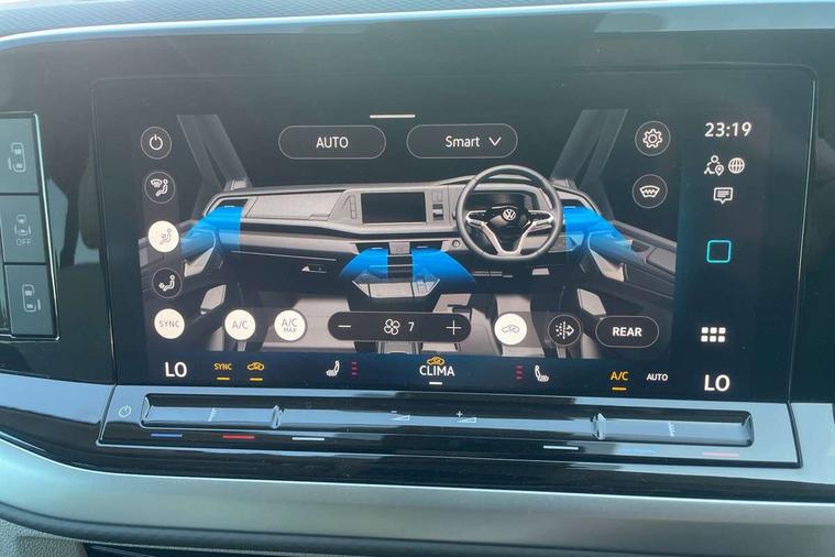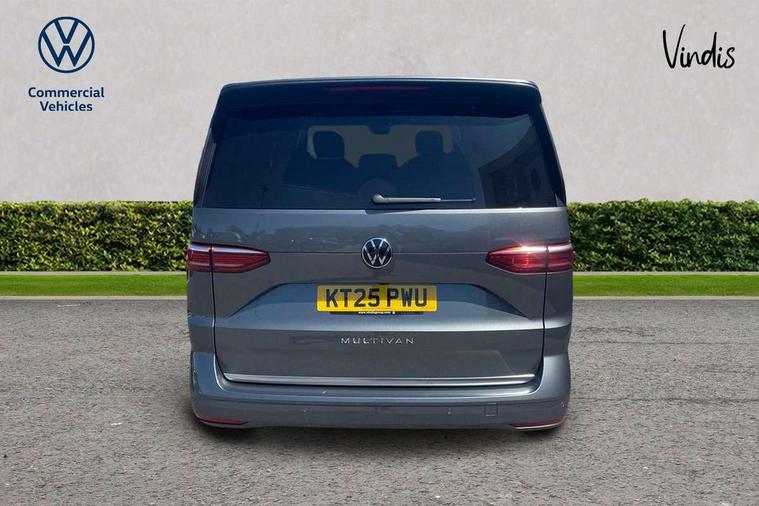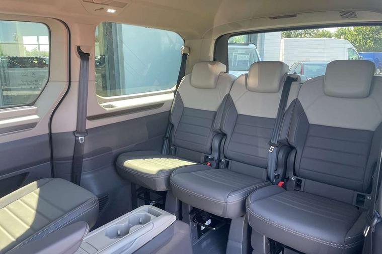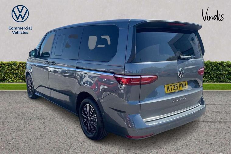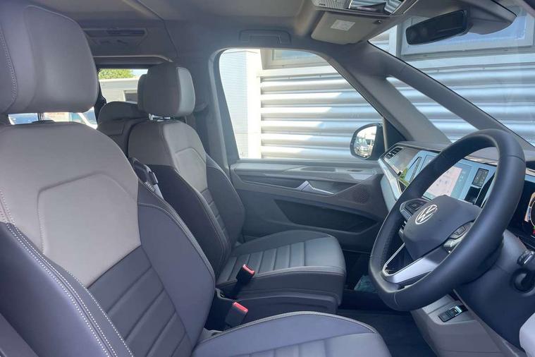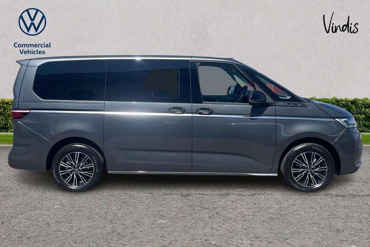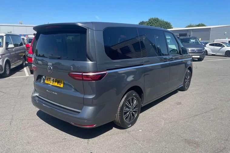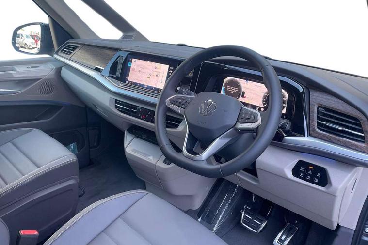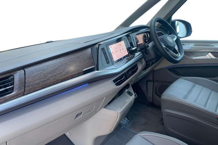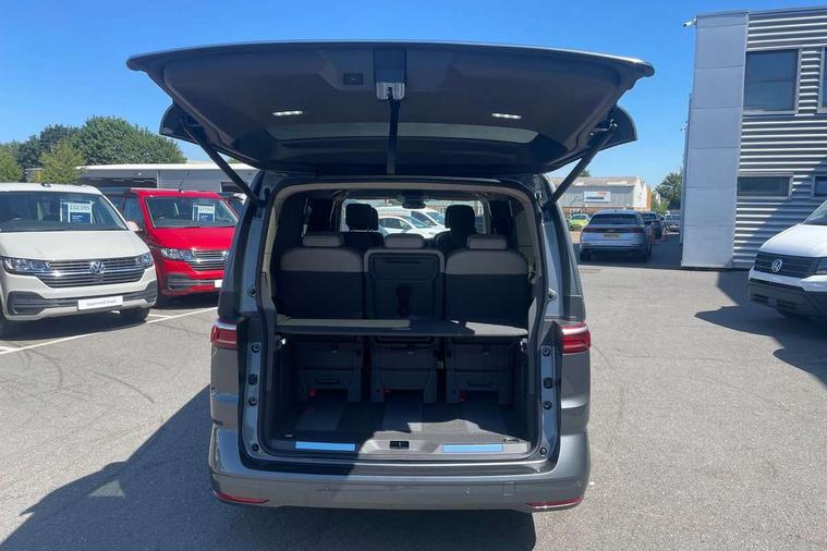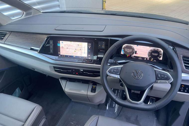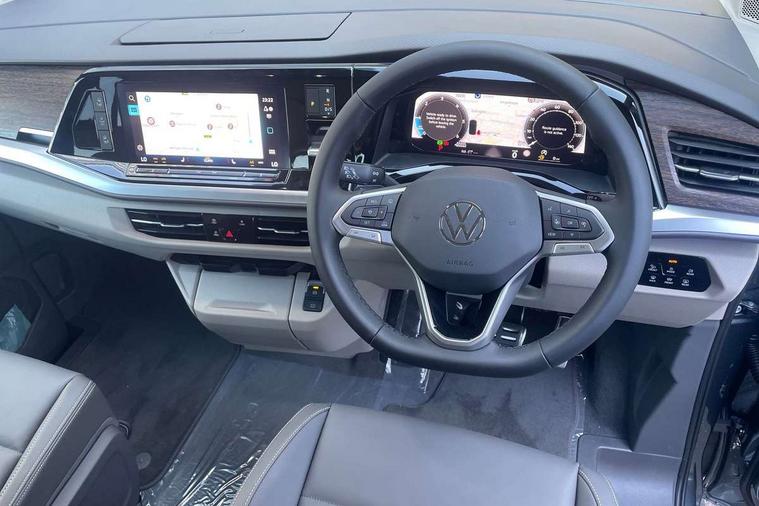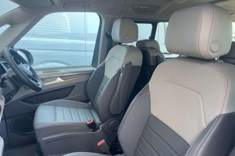 Adaptive cruise control with C2X including front assist and city emergency braking system, Digital Cockpit Pro with 10.25" colour display with adaptable display includes navigation map display, telephone contact images and audio information, Discover media pro navi system with 10" colour touch incl DAB+radio/appconnect for apple carplay/android auto/streaming and internet/gesture control, Driver alert system, Dynamic road sign display, eCall emergency system, Electrically-operated tailgate opening and closing function (Easy open), operated via foot movement under rear tailgate, Emergency assist, Front Cross Traffic Alert, Lane change system with side assist including blind spot monitor, rear traffic alert and exit warning system, Lane keeping system Lane Assist, Mobile phone interface, PAS, Semi-automated driving assistance, Tailgate, Travel assist, Voice control system including Alexa web app, We connect preparation, Electronic differential lock, 2 USB-C ports in front and 4 USB-C ports in passenger compartment, Additional interior noise reduction measures, Advanced high beam control dynamic light assist for LED matrix headlamps, Automatic headlight control with welcome home lights, Body coloured exterior door handles, Break away auto dimming rear view interior mirror, Chrome trim decorative strip mid-way on side and rear, Dynamic headlight range control with dynamic cornering light, Electrically adjustable, heated and folding door mirrors, Front fog lights, Glossy black painted radiator grille with 2 illuminated chrome trims, Heated rear window with window wiper and washer system, Heated windscreen, High gloss black exterior mirror housing, IQ.Light LED matrix headlamps with LED separate daytime running light, Laminated safety glass windshield, heat and sound insulating, LED 3rd brake lamp, LED rear combination lamps, Rear wiper, Stainless steel tailgate trim, Surround lighting in door area and tailgate with logo projection in door area, Windshield wiper intermittent control with rain sensor, 1 x 12V sockets on the dash panel, 12V socket in passenger compartment, 3 seat bench in 3rd row, 30 colours ambient interior lighting and tailgate surround lighting, 7 single seats removable/movable, Carpet mats in cab, Climatronic 3 zone air conditioning with additional control panel in passenger compartment, Front and rear head restraints, Grab handles on A pillar for access, on driver and front passenger side, Height adjustable seats, Height and longitudinal adjustment steering wheel with gear shift paddles, Illumination lockable glovebox compartment, ISOFIX (including i-size) and top tether in all seats in 2nd and 3rd rows, LED luggage compartment lighting X 2, Load compartment partition to 20kg with bag hooks and luggage net, Luggage compartment lid power latching with unlatching from inside, Multifunction leather steering wheel with tiptronic, Reinforced carpet floor covering in passenger compartment, Removable armrests for front seats with power adjustable lumbar support and folding table for 2nd row passenger seats, Removable armrests in 2nd row passenger seats, Single front passenger seat, Slidable multifunction table/centre console with 3 cup holders, Stainless steel pedals, Storage compartment under the 2nd and 3rd row seat and two waste bins, Sun visors with illuminated vanity mirror, ticket holder on driver side with airbag warning label on sunvisor and B-pillar, Easy open package - Multivan, 3x3 point rear seat belts, ABS, Automatic post collision braking system, Autonomous emergency braking front assist with pedestrian and cyclist monitoring, Driver and front passenger airbag with front passenger airbag deactivation, Electric childproof lock, Electronic stability control (ESC) and Electromechanical brake booster, ESP, First aid kit with warning triangle and safety vest, Front disc brakes, Hill hold assist, Seat belt warning for the drivers and all passengers seats if unfastened, Side and curtain airbags for driver and front passenger, curtain airbags for outer seats in rear, centre airbag in front, Single tone horn, Traction control, Tyre pressure monitoring system, Anti theft alarm system with interior monitoring in cab, backup horn and towing protection, Central locking system with interior control and safe lock, Keyless advanced with keyless entry, Start/stop button on centre console, Dark woodgrain optic decorative inserts,