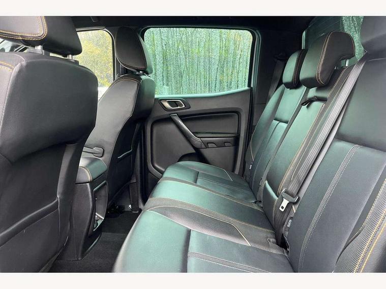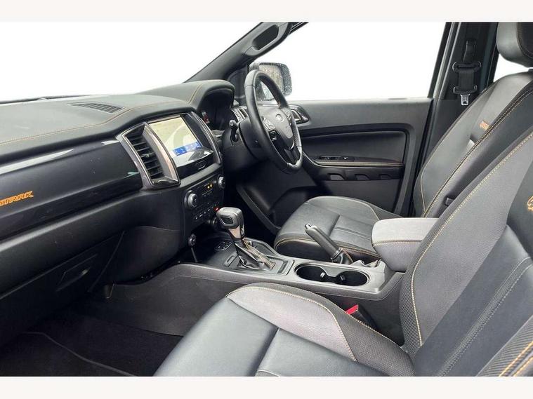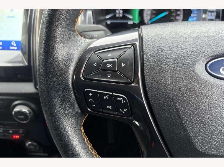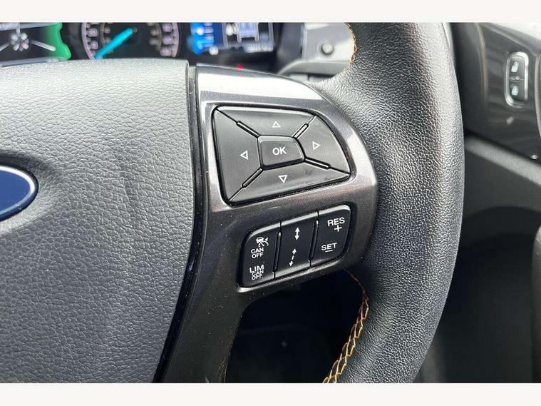 2 key fob, Collision mitigation braking system, Electric power assisted steering, Fixed rear view camera, Intelligent speed assistant, Lane keeping aid, Traffic sign recognition, Trip computer, Automatic headlights, Body coloured plastic front bumper, Boulder grey exterior door handle, Boulder grey exterior door mirror, Boulder grey radiator grille, Daytime running lights, Dual power heated fold back door mirror with puddle lamp and signal, Electrically operated windows with one shot driver's window, Electrochromic interior mirror, Front splash guard and mud flaps, Heated windshield and rear window, High mounted stop lamp with cargo area light, LED Front fog lamp, LED projector headlamps, Moulded in colour tailgate handle, Painted front fender grille, Privacy glass, Rain sensitive windshield wipers, Rear bumper chrome under-bar, Rear bumper step in boulder grey, Rear mudflaps, Roof rails, Side step with brushed inserts, Sports bar, Tailgate - Easy-lift/lower mechanism, Under hood engine cover, Underbody protection, Centre console coolbox, Chrome interior door handle, Driver seat back mounted map pocket, Dual control system - Electronic air temperature control (EATC), Ebony headliner, Heated front seat, Journey grain partial leather upholstery with Wildtrak logo, Leather gearknob, LED ambient interior lighting, Power adjustable 8 way driver seat, Premium front and rear floor mats with Wildtrak logo, Reach and rake adjustable steering column, Roof storage for driver sunglasses, Sport leather stitched steering wheel, Tie down rails and rope hooks, Wildtrak door trim panel insert, ICE feature pack 129 - Ranger, 3 point inertia rear seatbelts, Driver and front passenger airbag, side airbag, curtain airbag and driver knee airbag, ISOFIX child safety seat attachment, Seatbelt reminders for driver and front passenger, Tyre pressure sensors, Double locking power door lock with flip key, Immobiliser, Locking wheel nuts, Passive anti theft system, Passive keyless entry and start system, Power tailgate lock, Spare wheel lock, Thatcham category 1 alarm security system, ABS, ESP and roll over mitigation, Emergency brake assist, Engine start/stop system, Locking rear axle, Power converter,