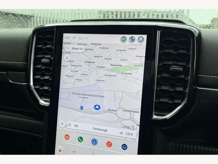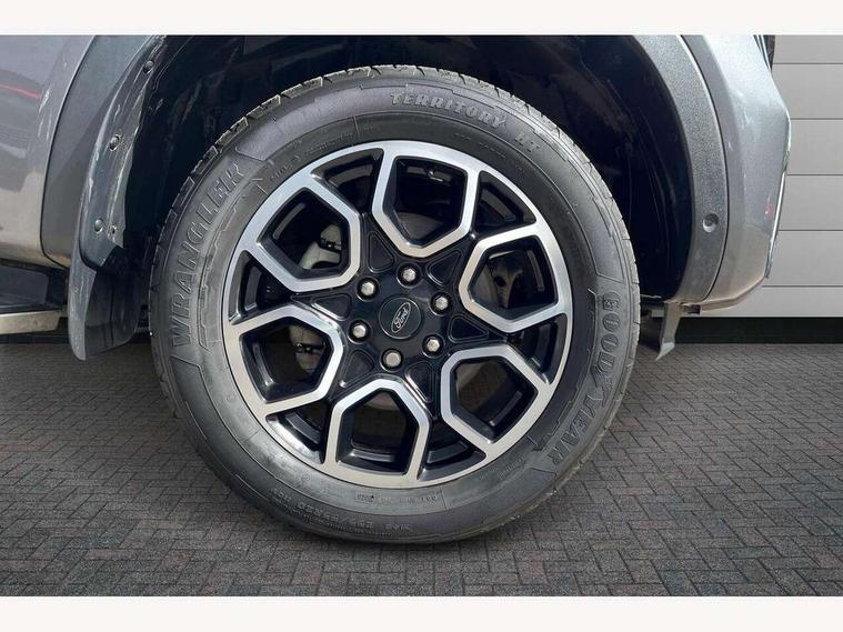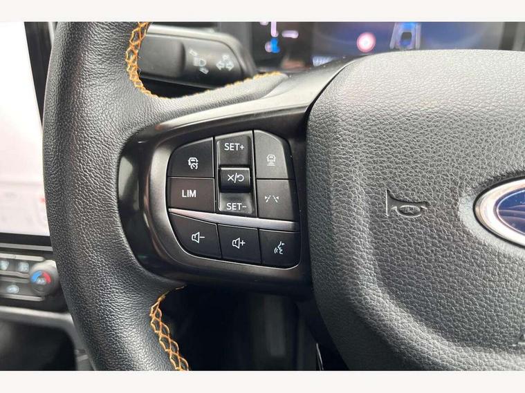 AEB and ISA, Conventional gearshift, Electric power assisted steering, Evasion steer assist, Ford pass connect embedded modem, Ice warning, Partial TFT/LCD instrument cluster, Passenger side roof mounted grab handle, Pre collision assist, Road departure warning, Traffic sign recognition, Trip computer, 360 lighting, Accent colour exterior mirrors, Accent colour front bumper, Accent colour grille, Accent colour rear bumper, Acoustic laminated windscreen, Assisted conventional tailgate, Auto high headlamp, Automatic headlights, Black rear underrun bar, Black wheelip molding, Body coloured door handles, Daytime running lights, Dual power heated fold back door mirror with puddle lamps, E-marked glass, Electric rear window defroster, Electric windshield defroster, Electrochromic interior mirror, Fog lamp bezel, Front fender painted grill, Front headlamp leveling, Front splash guard, Front towing hooks, High mounted stop lamp, Ladder rack, LED Front fog lamp, Level 2 halogen headlamps, Level 2 LED taillamps, Manual liftgate, Narrow bodyside moulding and insert, Non locking capless fuel fill, Outside thermometer, Plastic cab roll over bar, Power front windows with one touch up/down, Privacy glass, Quickclear heated windscreen, Rain sensitive windshield wipers, Rear bumper extension, Rear bumper step, Rear fog lamps, Rear mudflaps, Rear splash guard, Roof rails, Self coloured decklid handles, Side step - Bar only, Side step with bright finish inserts, Silver matte step bar, Standard green glass windscreen, Trailer tow class I, Trailer tow wiring, Under hood engine cover, Cargo light, Console with double lid, Door handles with inside MIC, Driver and passenger sunvisor with mirror, Ebony headliner, Electronic dual zone automatic air conditioning, Fold flat rear seat with durabale surface, Fresh air heater, Glove box lights, Heated steering wheel, LED ambient interior lighting, Less load rest, Less outside tie down hooks, Locking glove box lid, Micro rib embossed leather upholstery, Non woven carpet, Overhead console with dome lamps, Pollen filter, Premium air register, Premium front and rear floor mats, Pull out cup holder, Reach and rake adjustable steering column, Rear floor ducts, Roof storage for driver sunglasses, Steering wheel with multimedia controls, Tie down rails and rope hooks, Washer tank level warn lamp, Body protection pack 2 - Ranger, Front seat pack 7 - Ranger, Functional upgrade pack 3 - Ranger, Heavy duty terrain pack - Ranger, Interior trim pack 13 - Ranger, Rear seat pack 15 - Ranger, Tachograph prep pack - Ranger, Child proof rear door locks, Driver and passenger airbag, Driver knee airbag, Head and thorax airbag in 2nd row, ISOFIX child safety seat attachment, Passenger knee airbag, Tyre pressure sensors, 2 Remote control unit - key fob, Flip key, Immobiliser, Locking wheel lug nut, Passive anti theft system, Passive keyless entry, Power door dead locks, Power tailgate lock, Thatcham alarm system, Thatcham security system, 12V aux rear power point plug, ABS + ESP, Electric parking brake, Emergency brake assist, Engine start/stop system, Front and rear disc brakes, Loadbox power point plug, Open style rear axle, Soft ride suspension, 18" Aluminium spare wheel, Spare tire lock,