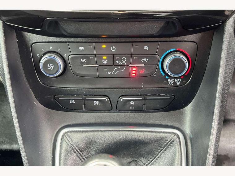 Easy fuel capless refuelling system, Eco coach, Embedded modem, Mid series analog cluster, PAS, Trip computer, Steering wheel mounted audio controls, 180 degree rear cargo doors, Active grille shutter, Automatic headlamps with follow me home with automatic windshield wiper, Body colour side protection mouldings, Body coloured door handles, Body coloured door mirrors, Body coloured lift/decklid exterior handles, Body coloured plastic front bumper, Body coloured rear bumper end caps, Daytime running lights, Driver one touch up/down power windows, Dual power heated fold back mirrors, Electric windshield defroster, Emergency brake light flashing, Front fog lights with adaptive cornering, Front lip spoiler, High mounted stop lamp, Hinged rear cargo door, Instrument panel stowage box, Moulded colour 3 bar radiator grille, Non infra red reflection windscreen, Rear fog lights, Rear tinted glass, Self coloured rear bumper, 12V socket, 2 front cupholders, 2 way front headrestraints, 4 way manually adjustable driver seat with lumbar support, Bright interior door handles, Centre console, Complete rear trim board, Configurable interior light, Door trim panel level 2, Driver seat rotary recliner, Driver sunvisor with mirror and ticket pocket, Front grab handles, Glove box lights, Glovebox with lid, Header courtesy lights with 2 map lights, High series fabric soft door armrest, Leather steering wheel, LED load compartment light, Ligne cloth upholstery, Overhead storage compartment, Passenger seat rotary recliner, Passenger sunvisor, Pollen filter without carbon filter, Reach and rake adjustable steering column, Refrigerant R134a, Rubber partial floor covering, Sensico gear shift knob, Key combination pack 2 - Transit Connect, Black seat belt, Child proof rear door locks, Driver airbag restraint, Enabled door auto relocking, Front active seat belts, Front seat belt adjuster, Configurable Unlocking, Immobiliser, Keyless start, Locking wheel nuts, Power door dead locks, Remote central double locking, Thatcham category 1 alarm with 2nd remote key, ABS, Auto start/stop system, Emergency brake assist, Heavy duty battery, Hill start assist, Power 4-wheel disc, Standard duty alternator, Traction control, 16" 6.5 7 spoke aluminium alloy wheels, 205/60 R16 tyre, Less wheel cover, Standard tire tread,
