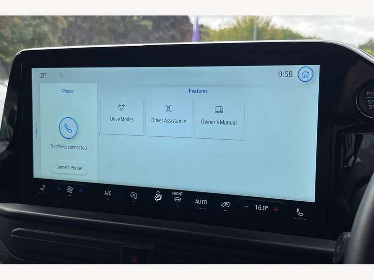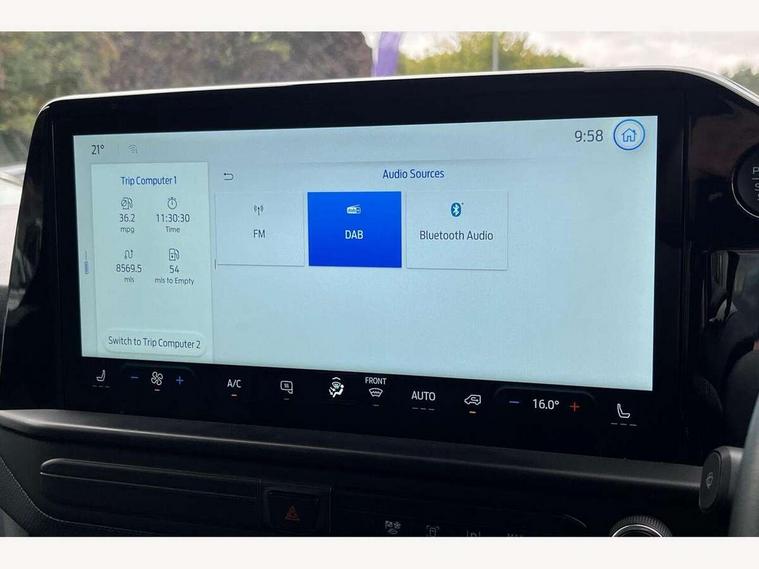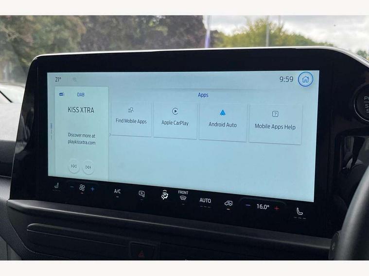 13" Touchscreen, 5G embedded modem, AECS NO SMS/Roll Detect 2G, PAS, Tyre pressure monitor, SYNC 4 - Android Auto/Apple Car Play, advance speech recognition, over the air update capability, Automatic headlights, Automatic windscreen wipers, Body coloured door mirrors, Body coloured front bumper, Body coloured rear bumpers, Daytime running lights, Electric front windows with one touch facility for driver and front passenger, Front mud flaps, Front splash guards, Low roof line, Quickclear front window defroster, Rear cargo hinged door, Rear splash guards, Trailer sway control, 8 Load compartment tie down loops, Courtesy light, Interior grab handle with driver's sunglasses holder, LED lights, Locking glove box lid, Sensico gearshift knob, 2 remote keys, Alcohol Interlock wiring preparation pack, Keyless entry and start, Locking wheel lug nut, Thatcham category 1 alarm, 20L AdBlue tank, ABS, Diesel particulate filter, ESP, Hill launch assist, Traction control, Full wheelcovers,