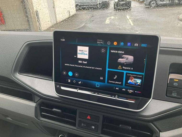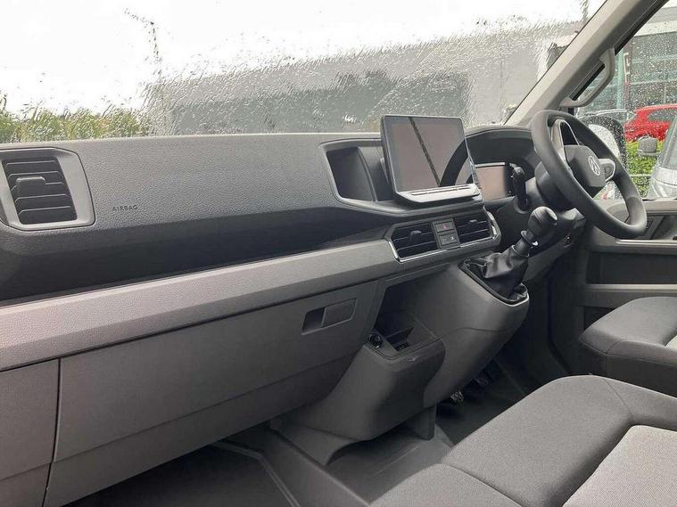 Bluetooth, Digital clock, Driver alert system, E-call + We connect basic preparation, Instrument cluster, Lights on warning buzzer, Locking fuel cap, Multi-function Display Plus, Rev counter, Service indicator, Speedometer, Voice control system, Composition media with 6.5" with we connect plus prep, 4 speaker, multifun display plus, USB, mob interface, app con, "We connect function", DAB Radio, Auto low beam mode, Leaving home function and manual coming home function, Cab doors, Convex and wide angle mirror, Driver seatbelt warning light, Electric windows, Electrically heated and adjustable door mirrors, Half painted front bumper, Heat insulating glass, Indicators in front door mirrors, One towing eye in front, Rear wing doors with 270 degree hinges, Special identification plate, Unpainted radiator grille, Air recirculation system, Ashtray, Centre console storage tray, CFCU preparation, Charcoal filter, Climatic air conditioning, Document holder on centre console, Drinks holders, Electromechanical Servotronic steering, Electronically controlled heating system, Fully adjustable suspension type driver seat, Grab handles on rear entry pillars, Height adjustable head restraints, Height and reach adjustable steering wheel, Illuminated glove compartment with lockable lid, Interior light, including 2 reading lights, Interior light, switchable by door, Jack and tool kit, Preparation for interface for external use with terminal block, Storage compartments in doors and in step, right, Storage tray on dashboard, Two 12V outlets in the cab (in the dashboard), Without rear side trim panel passenger load compartment, Non-smokers pack - Crafter, 3 point inertia reel belt on all seats, Automatic hazard light with emergency braking, Crosswind assist, Driver and front passenger airbag with front passenger airbag deactivation, Height adjustable seatbelts for outer cab seats, 1 rigid key, Anti-theft alarm with interior monitor, back up horn and tow away protect, overhead storage with two 1-DIN, reading light, SAFELOCK with 2 remote keys, Engine immobiliser, ABS, Automatic post collision braking system, EBA, EBD, EDL, ESP, Front disc brakes, HBA, Hill start assist, Parking brake - hill hold control, Start and stop system with regenerative braking, TCS, Hub cap covers,