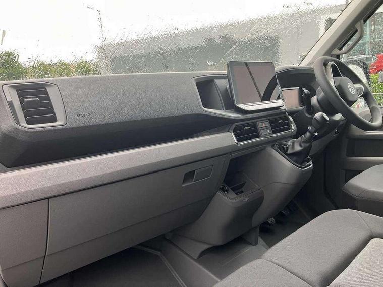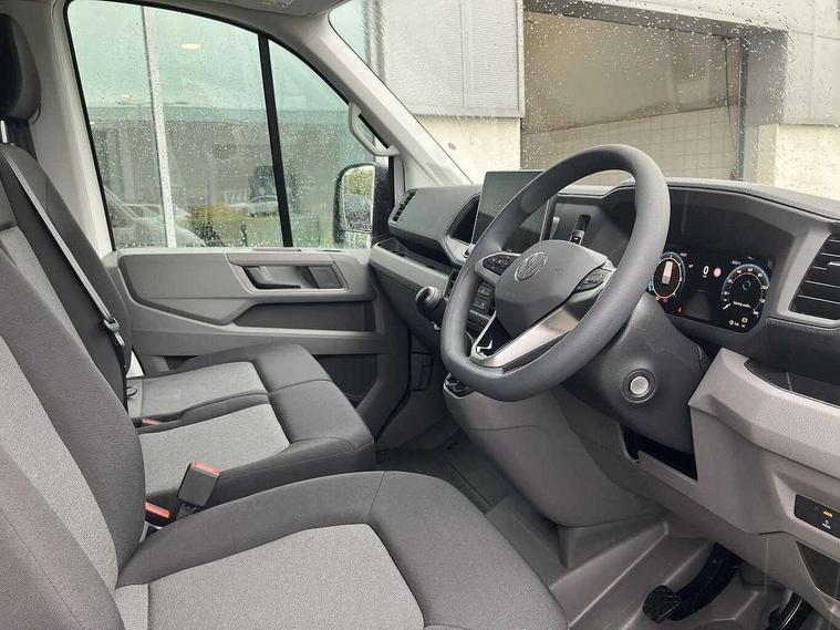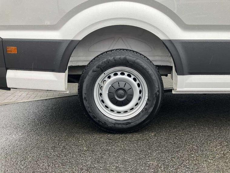 Bluetooth, Digital clock, Driver alert system, E-call + We connect basic preparation, Instrument cluster, Lights on warning buzzer, Locking fuel cap, Multi-function Display Plus, Rev counter, Service indicator, Speedometer, Voice control system, Composition media with 6.5" with we connect plus prep, 4 speaker, multifun display plus, USB, mob interface, app con, "We connect function", DAB Radio, Auto low beam mode, Leaving home function and manual coming home function, Cab doors, Convex and wide angle mirror, Driver seatbelt warning light, Electric windows, Electrically heated and adjustable door mirrors, Half painted front bumper, Heat insulating glass, Indicators in front door mirrors, One towing eye in front, Rear wing doors with 270 degree hinges, Special identification plate, Unpainted radiator grille, Air recirculation system, Ashtray, Centre console storage tray, CFCU preparation, Charcoal filter, Climatic air conditioning, Document holder on centre console, Drinks holders, Electromechanical Servotronic steering, Electronically controlled heating system, Fully adjustable suspension type driver seat, Grab handles on rear entry pillars, Height adjustable head restraints, Height and reach adjustable steering wheel, Illuminated glove compartment with lockable lid, Interior light, including 2 reading lights, Interior light, switchable by door, Jack and tool kit, Preparation for interface for external use with terminal block, Storage compartments in doors and in step, right, Storage tray on dashboard, Two 12V outlets in the cab (in the dashboard), Without rear side trim panel passenger load compartment, Non-smokers pack - Crafter, 3 point inertia reel belt on all seats, Automatic hazard light with emergency braking, Crosswind assist, Driver and front passenger airbag with front passenger airbag deactivation, Height adjustable seatbelts for outer cab seats, 1 rigid key, Anti-theft alarm with interior monitor, back up horn and tow away protect, overhead storage with two 1-DIN, reading light, SAFELOCK with 2 remote keys, Engine immobiliser, ABS, Automatic post collision braking system, EBA, EBD, EDL, ESP, Front disc brakes, HBA, Hill start assist, Parking brake - hill hold control, Start and stop system with regenerative braking, TCS, Hub cap covers,