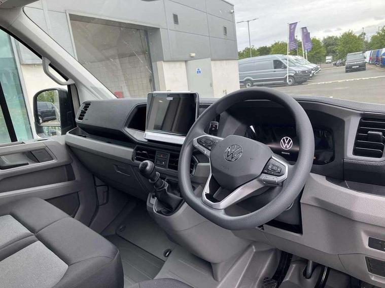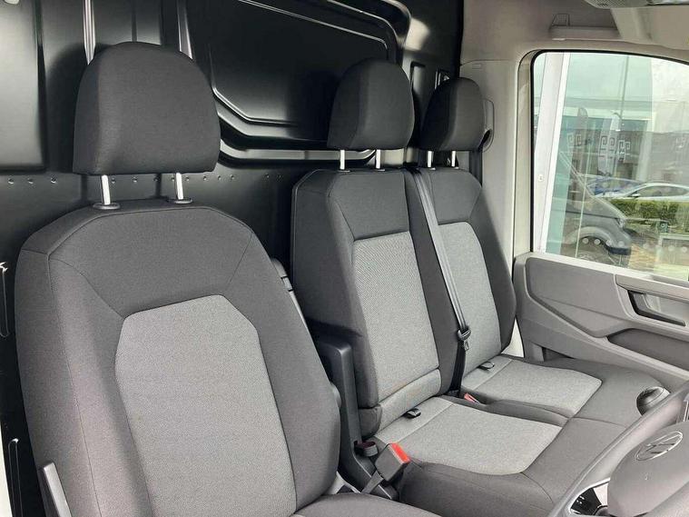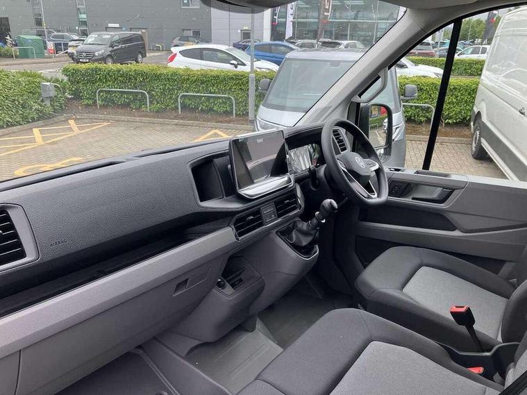 Bluetooth, Digital clock, Driver alert system, E-call + We connect basic preparation, Instrument cluster, Lights on warning buzzer, Locking fuel cap, Multi-function Display Plus, Rev counter, Service indicator, Speedometer, Voice control system, Composition media with 6.5" with we connect plus prep, 4 speaker, multifun display plus, USB, mob interface, app con, "We connect function", DAB Radio, Auto low beam mode, Leaving home function and manual coming home function, Cab doors, Convex and wide angle mirror, Driver seatbelt warning light, Electric windows, Electrically heated and adjustable door mirrors, Half painted front bumper, Heat insulating glass, Indicators in front door mirrors, One towing eye in front, Rear wing doors with 270 degree hinges, Special identification plate, Unpainted radiator grille, Air recirculation system, Ashtray, Centre console storage tray, CFCU preparation, Charcoal filter, Climatic air conditioning, Document holder on centre console, Drinks holders, Electromechanical Servotronic steering, Electronically controlled heating system, Fully adjustable suspension type driver seat, Grab handles on rear entry pillars, Height adjustable head restraints, Height and reach adjustable steering wheel, Illuminated glove compartment with lockable lid, Interior light, including 2 reading lights, Interior light, switchable by door, Jack and tool kit, Preparation for interface for external use with terminal block, Storage compartments in doors and in step, right, Storage tray on dashboard, Two 12V outlets in the cab (in the dashboard), Without rear side trim panel passenger load compartment, Non-smokers pack - Crafter, 3 point inertia reel belt on all seats, Automatic hazard light with emergency braking, Crosswind assist, Driver and front passenger airbag with front passenger airbag deactivation, Height adjustable seatbelts for outer cab seats, 1 rigid key, Anti-theft alarm with interior monitor, back up horn and tow away protect, overhead storage with two 1-DIN, reading light, SAFELOCK with 2 remote keys, Engine immobiliser, ABS, Automatic post collision braking system, EBA, EBD, EDL, ESP, Front disc brakes, HBA, Hill start assist, Parking brake - hill hold control, Start and stop system with regenerative braking, TCS, Hub cap covers,