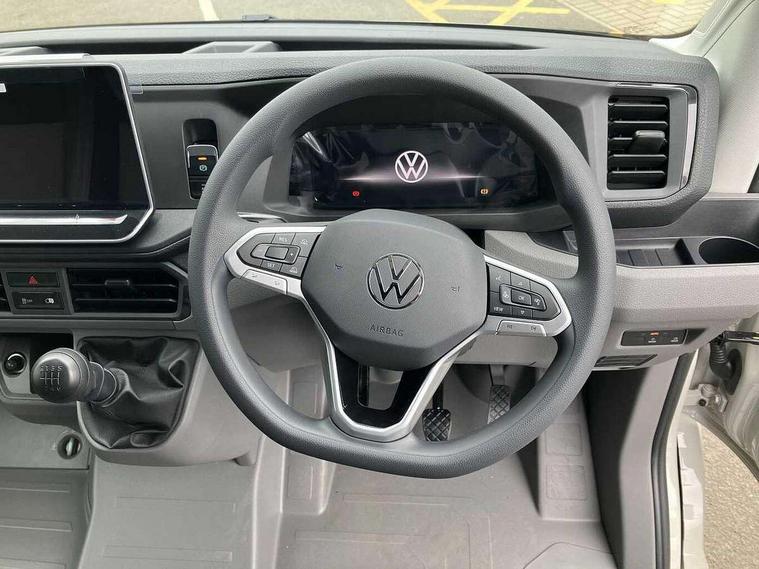 Bluetooth, Digital clock, Driver alert system, E-call + We connect basic preparation, Instrument cluster, Lights on warning buzzer, Locking fuel cap, Multi-function Display Plus, Rev counter, Service indicator, Speedometer, Voice control system, Composition media with 6.5" with we connect plus prep, 4 speaker, multifun display plus, USB, mob interface, app con, "We connect function", DAB Radio, Auto low beam mode, Leaving home function and manual coming home function, Cab doors, Convex and wide angle mirror, Driver seatbelt warning light, Electric windows, Electrically heated and adjustable door mirrors, Half painted front bumper, Heat insulating glass, Indicators in front door mirrors, One towing eye in front, Rear wing doors with 270 degree hinges, Special identification plate, Unpainted radiator grille, Air recirculation system, Ashtray, Centre console storage tray, CFCU preparation, Charcoal filter, Climatic air conditioning, Document holder on centre console, Drinks holders, Electromechanical Servotronic steering, Electronically controlled heating system, Fully adjustable suspension type driver seat, Grab handles on rear entry pillars, Height adjustable head restraints, Height and reach adjustable steering wheel, Illuminated glove compartment with lockable lid, Interior light, including 2 reading lights, Interior light, switchable by door, Jack and tool kit, Preparation for interface for external use with terminal block, Storage compartments in doors and in step, right, Storage tray on dashboard, Two 12V outlets in the cab (in the dashboard), Without rear side trim panel passenger load compartment, Non-smokers pack - Crafter, 3 point inertia reel belt on all seats, Automatic hazard light with emergency braking, Crosswind assist, Driver and front passenger airbag with front passenger airbag deactivation, Height adjustable seatbelts for outer cab seats, 1 rigid key, Anti-theft alarm with interior monitor, back up horn and tow away protect, overhead storage with two 1-DIN, reading light, SAFELOCK with 2 remote keys, Engine immobiliser, ABS, Automatic post collision braking system, EBA, EBD, EDL, ESP, Front disc brakes, HBA, Hill start assist, Parking brake - hill hold control, Start and stop system with regenerative braking, TCS, Hub cap covers,