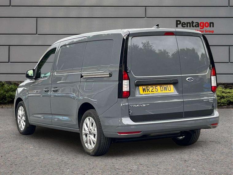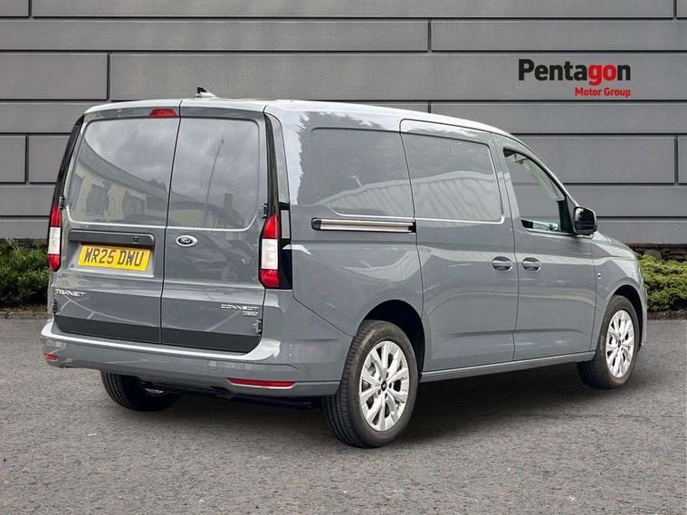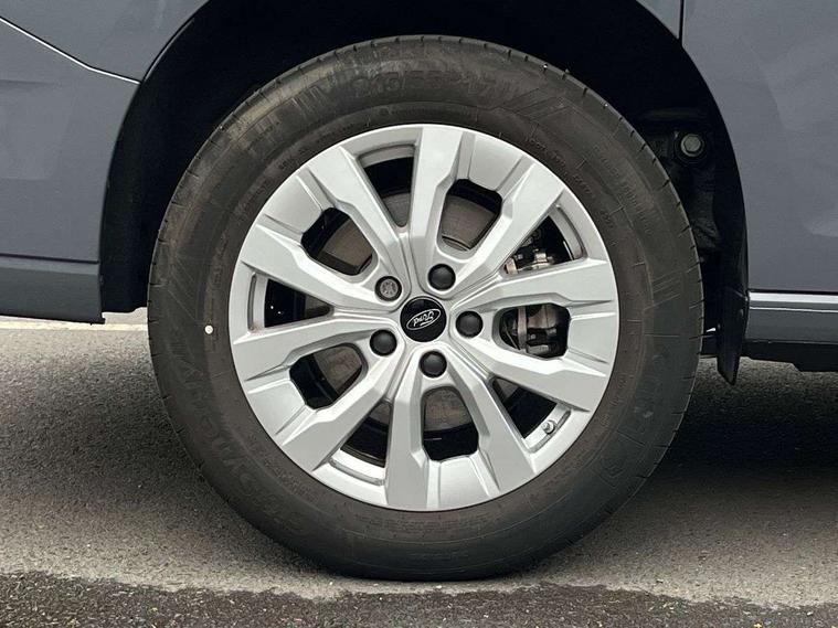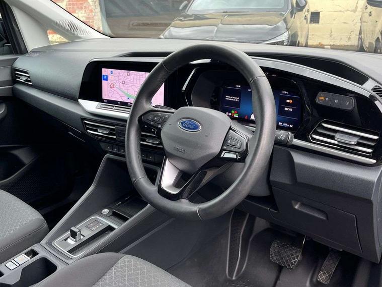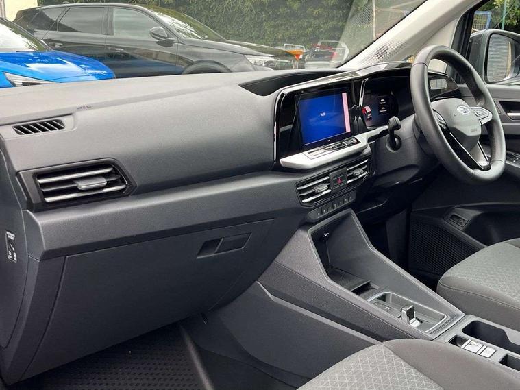 10" touchscreen infotainment display with volume and temperature slider controls, Android Auto and Apple Carplay with USB or wireless connectivity, Brake wear indicator, Enhanced digital cluster with navigation integration, Fordpass connect modem including eCall, Front camera system, PAS, Tyre pressure monitoring system with cluster display of tyre pressures, Wireless charging pad, 4 speakers, DAB radio bluetooth, voice control and navigation, Two USB (45W type C) front power/Data points, Auto Headlamps - Follow Me Home, Automatic headlamps on/off, Automatic windshield wiper, Black painted exterior mirror caps, Body colour door handles with silver door rail, Body coloured exterior tailgate handle, Body coloured front bumper, Body coloured rear bumper, Chrome grille and fog light surrounds, Day and night inside mirror, Dual power heated mirrors, Emergency brake light flashing, Front fog lights, High mounted stop lamp, Less roof rails, Misfuel Inhibitor, Power folding door mirrors, Power front windows - One touch up-down, Quickclear electric windshield defroster, Rear tinted glass, Standard green class windscreen, Tail lamps, Weather protection seals, 12V socket in cabin, 2 way front headrestraints, 4 way manually adjustable driver seat, 4 way manually adjustable passenger seat, Cargo area dual LED lights, Cargo area hardboard trim, Centre console with open stowage, Chrome air register, Driver and passenger sunvisor with mirror, Driver seat rotary recliner, Electronic dual zone automatic air conditioning, First row LED light with map lights, Fold flat passenger seat with integrated work surface, Foot pedal, Overhead storage compartment, Pollen filter without carbon filter, Reach and rake adjustable steering column, Recirculation heater, Rubber cab floor cover, Rubber load floor cover, Sensico gear shift knob, Sensico steering wheel, Silver interior door handles, Curtain airbags, Driver and front passenger airbag, Driver and passenger seatbelt reminder, Front active seat belts, Front passenger airbag deactivation, Front seat belt adjuster, 2 remote keys, Ford KeyFree system with power starter button and deadlocking, Immobiliser, Locking wheel bolts, Thatcham alarm system, 12v socket on cargo area, 50L fuel tank, ABS, Charging cable (Type 2 Mode 3), Electric parking brake, Emergency brake assist, ESP, RSC, wind mitigation, Standard duty alternator, Start/stop system, Traction control, Gloss black cluster and infotainment bezels with silver painted instrument panel spear, 17" silver alloy wheels with blue centre caps, 215/55 R17 tyres, Tyre repair kit,