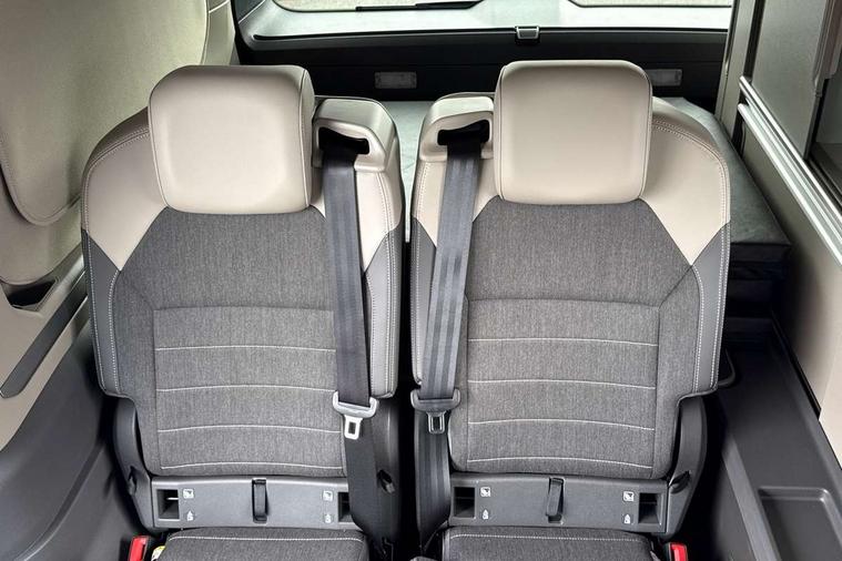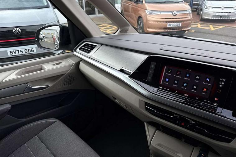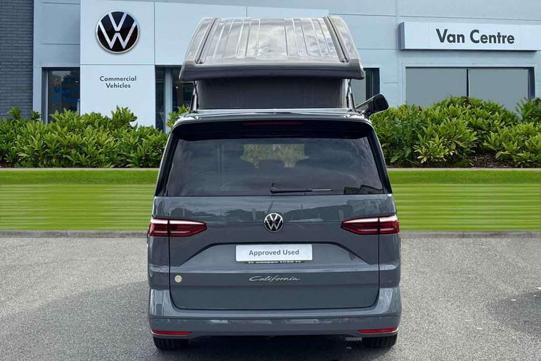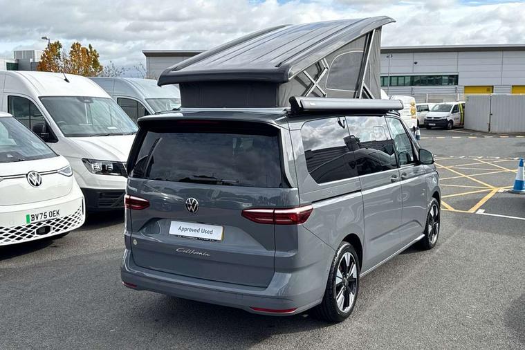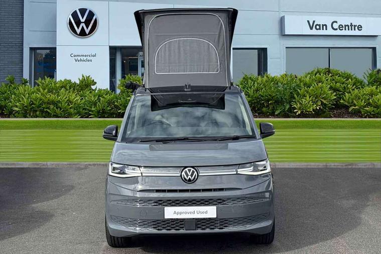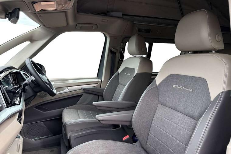 Advanced driver attention and drowsiness monitor, California on tour app, Digital cockpit pro, Discover Pro Navigation system, Driving profile selection, eCall emergency system, Emergency assist, Function control unit, IDA voice assistant and voice enhancer, Lane keeping system Lane Assist, Mobile phone interface, Multifunction camera, PAS, Preparation for online services, Tailgate with window aperture and with power latching, Traffic sign recognition, Turn assist with evasive assistance, Volkswagen wired and wireless app connect, Additional batteries 2nd and 3rd with voltage transformer NV, Battery without capacity specification, Standard battery/generator, Standard suspension and shock absorption, 2 USB-C ports at the front, 4 USB-C charging sockets in the passenger compartment, 8 Speakers, Digital radio reception (DAB), 3rd brake light, 65% light absorbing privacy glass, Dynamic Light Assist for LED matrix headlights, Electro hydraulic elevating roof, with three windows including one front passengers panorama opening, canvas in Basalt Grey, Four speed control for windscreen wipers, Heat and sound insulating laminated safety glass windshield, Heated windscreen, High gloss black door mirrors, Illuminated molding between headlamps, Nameplate set California, Poor weather light including cornering light, Red LED tail lights, Sliding window in front with fly screen in passenger compartment left/right & fixed window in rear in load passenger compartment at left, Windscreen wiper intermittent control, 2 single seats with integrated seatbelt and sleeping mat, 230V external inlet with charging feature for vehicle batteries, 230V inverter with socket on driver seat, Additional interior noise attenuation plus, Ambient interior lighting, Armrest on front swivel seats in both sides with electric lumbar support, Camper parking heater for continuous operation & parking heater for windshield defrosting with radio remote control, Darkening roller blinds and thermo mats, Drawers under the outer seats in the cab and passenger compartment & 2 waste bins, Front and rear headrests, Heated front seats, Heated steering wheel, Kitchen with outdoor folding table for cooking and roof storage box in décor 2, Lockable glove compartment with lighting, Multifunction leather steering wheel with paddle shifters, Plastic floor covering in passenger/load compartment, Single front passenger seat, Surround lighting in door area, Swivel seat on left with height adjustable including drawer, Swivel seat on right with height adjustable including drawer, Advanced assistance pack - California, Top package - California, 2x3 point automatic seatbelts at the rear outside with ECE label, with/without belt tensioner, Autonomous emergency braking front assist with pedestrian and cyclist monitoring, Child locks, Driver and front passenger airbags with front passenger airbag deactivation button, First aid kit with warning triangle and safety vest, Front Assist with pedestrian and cyclist detection, Front disc brakes, Height adjustable three point automatic seatbelts at front with belt and end fitting tensioners, Side and curtain airbags for driver and front passenger, curtain airbags for outer seats in rear, centre airbag in front, Swerve support and oncoming vehicle braking when turning, Tyre pressure loss indicator, Anti theft alarm system with interior monitoring in cab, backup horn and towing protection, Central locking + keyless locking and starting system Keyless Advanced with safe lock, Lockable wheel bolts, Preparation for alcohol interlock, 5+ Promise service plan, Dark silver brushed decorative inlays, Hub caps for alloy wheels, Tool kit,