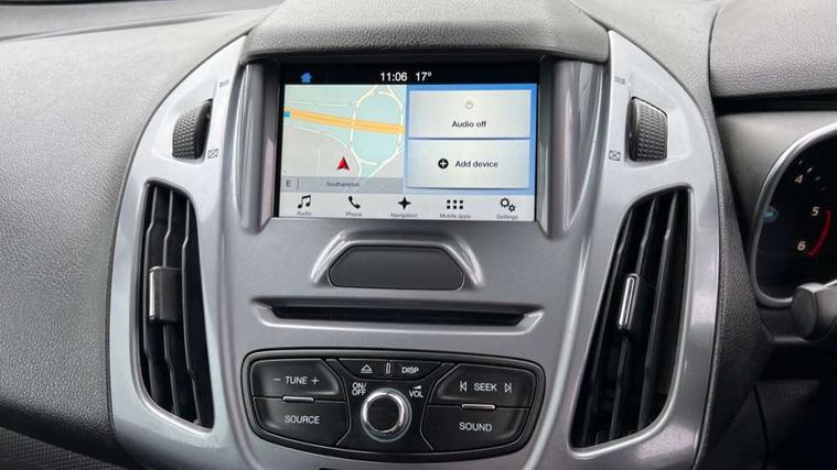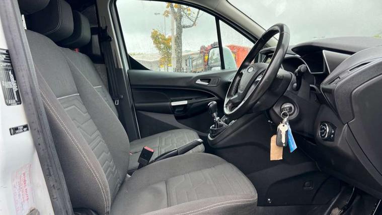 Bluetooth with USB box, Cruise control with speed limiter, Easy fuel capless refuelling system, PAS, Reverse parking sensor, Trip computer, Voice control system, DAB radio/CD with SYNC, Steering wheel mounted audio controls, Automatic lights and wipers, Body colour side protection mouldings, Body coloured door handles, Body coloured door mirrors, Body coloured front bumper, Chrome front grille, Chrome head lamp bezels, Electrically folding and heated door mirrors, Front electric windows with anti-trap and driver's one touch function, Heated windscreen with heated door mirrors and washer jets, 6 lashing points for securing loads, 8 way adjustable drivers seat, Bulkhead - load through hatch, Cloth upholstery, Dual fold flat passenger seat with storage box, Glovebox with lid, Heated driver's seat, Interior roof rack / Interior Overhead stowage, Leather steering wheel, Load box LED lights, Plastic cargo area lining, Reach and rake adjustable steering column, Fuel economy pack - Transit Connect, Driver seatbelt reminder, Driver's airbag, 2nd remote key, Immobiliser, Remote central locking, Thatcham category 1 alarm, ABS + EBD, ESP + EBA, Hill start assist,