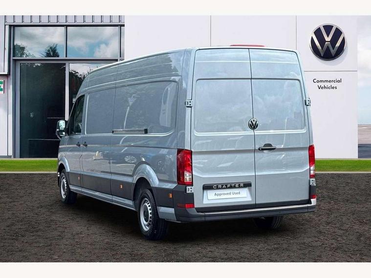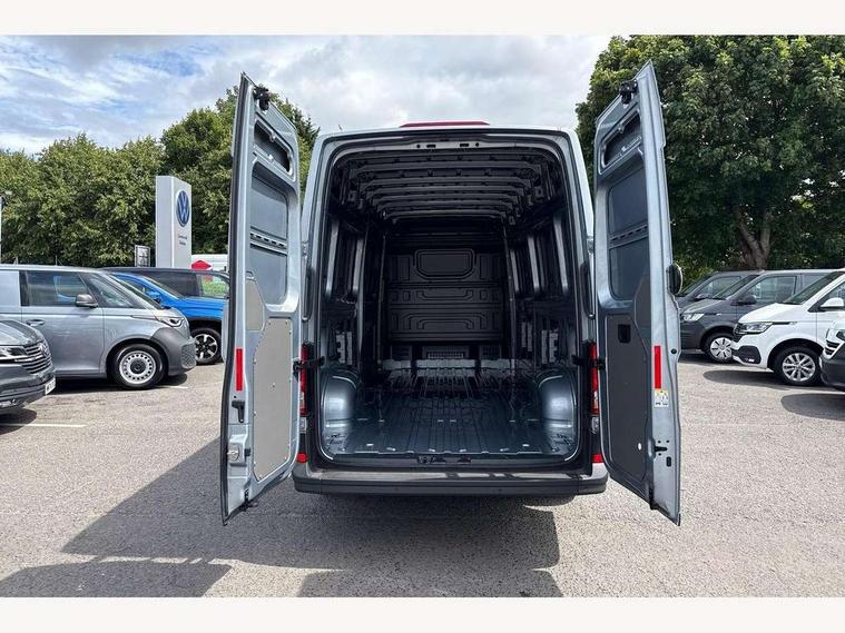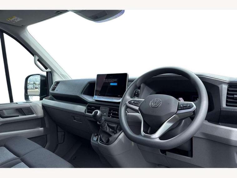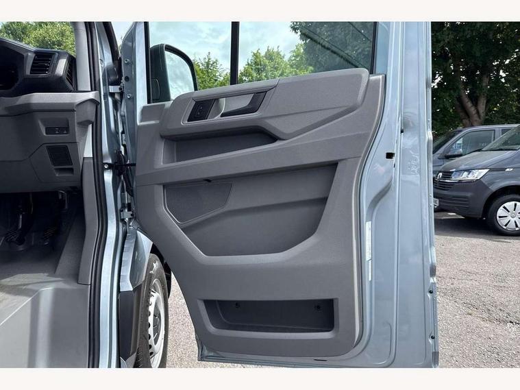 Advanced driver attention and drowsiness monitor, Blind spot monitor, Bluetooth, Digital clock, Digital cockpit with active Info display, Dynamic road sign display, E-call + We connect basic preparation, Forward collision warning with warning and braking reaction to vehicles, pedestrians and cyclists, Front assist including city emergency braking, Instrument cluster, Lane keeping assist, Lights on warning buzzer, Locking fuel cap, Rev counter, Roof console for interior lighting control, Service indicator, Speedometer, USB socket at top of windscreen, Wireless charging, 2 USB C ports in dashboard, DAB Radio, Auto low beam mode, Leaving home function and manual coming home function, Black unpainted plastic front bumper, Cab doors, Convex and wide angle mirror, Driver seatbelt warning light, Electric windows, Heat insulating glass, Indicators in front door mirrors, One towing eye in front, Rear badges, Special identification plate, Touch panel control for exterior lights, Unpainted radiator grille, Windscreen wiper auto control with light and rain sensor, Air recirculation system, Ashtray, Centre console storage tray, CFCU preparation, Charcoal filter, Document holder on centre console, Drinks holders, Electromechanical Servotronic steering, Electronically controlled heating system, Fully adjustable suspension type driver seat, Height adjustable head restraints, Height and reach adjustable steering wheel, Illuminated glove compartment with lockable lid, Interior light, including 2 reading lights, Interior light, switchable by door, Jack and tool kit, Preparation for interface for external use with terminal block, Storage compartments in doors and in step, right, Storage tray on dashboard, Two 12V outlets in the cab (in the dashboard), Without rear side trim panel passenger load compartment, Non-smokers pack - Crafter, 3 point inertia reel belt on all seats, Automatic hazard light with emergency braking, Crosswind assist, Driver and front passenger airbag with front passenger airbag deactivation, Height adjustable seatbelts for outer cab seats, 1 rigid key, Central locking system with Keyless Go without SAFELOCK entry - Keyless entry and start, Engine immobiliser, ABS, Automatic post collision braking system, EBA, EBD, EDL, Electronic parking brake - hill hold control, ESP, Front disc brakes, HBA, Hill start assist, Start and stop system with regenerative braking, TCS, Hub cap covers,