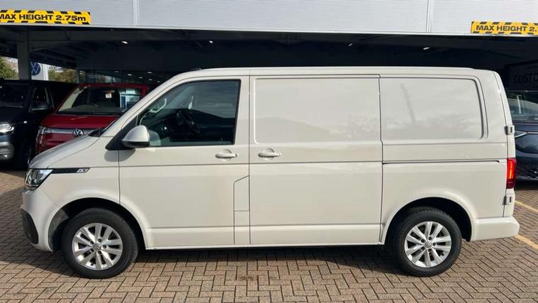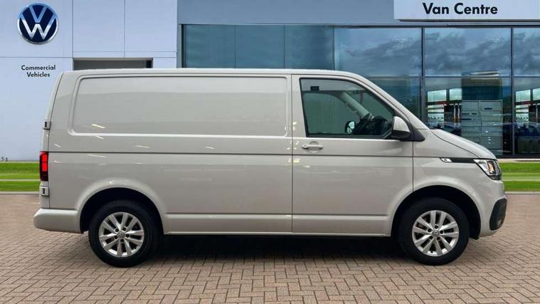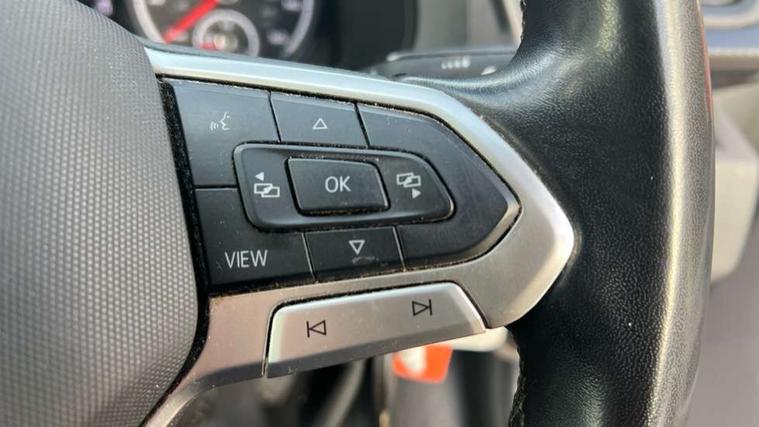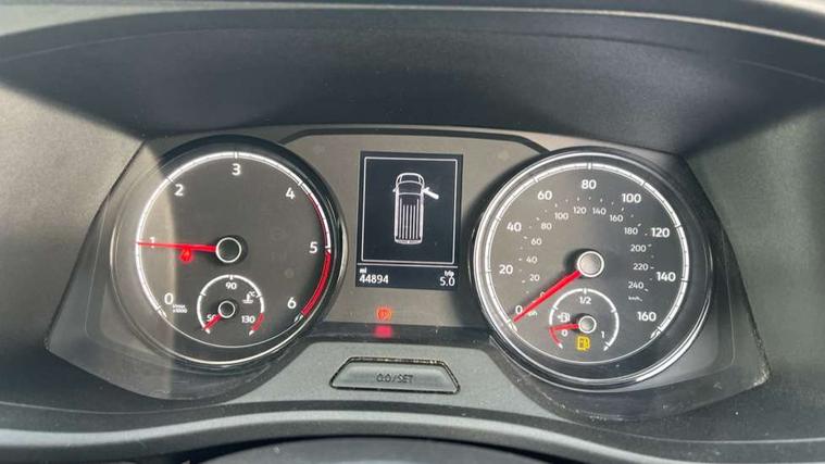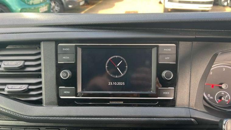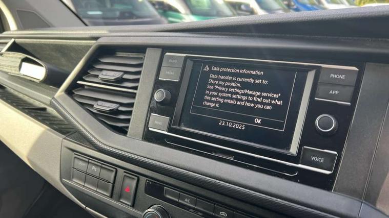 Adaptive cruise control, Cross wind assist, Dimmable illuminated instruments, Driver alert with Multi-function display plus, eCall emergency system, Electromechanical speed sensitive power steering, height and longitudinally adjustable steering column, Forward collision warning front assist with autonomous emergency braking, Mobile phone interface, Multi function display plus with black and white display, 2 USB interfaces type C in dashboard, 4 speakers with 2 tweeters and 2 woofers, Composition colour radio with 6.5" touchscreen, Digital radio reception (DAB+), Volkswagen app connect, Automatic headlight control, leaving home and manual coming home feature, Closing rear wing door with unlatching from the inside, Front fog lamps with cornering light, Heat insulating glass (green) in cab and passenger/load compartment, Heated front windscreen, Left convex exterior mirror, Power folding adjustable door mirrors with separately heated, Radiator grille with 2 chrome trims, Rear wing doors without window apertures, Right convex exterior mirror, Transporter nameplate on the rear fender, Windshield wiper intermittent control with rain sensor for windshield wipers, 3 spoke leather wrapped multi function steering wheel, Auto dimming breakaway interior rear view mirror, Comfort headliner in cab, hardboard roof trim in passenger and load compartment, Dust/pollen filter, Front and rear left without window closed side panel in load compartment, Front seats on the right in 1st row of seat, Glove compartment with illumination, Heavy duty tool kit and jack, High partition, Interior plastic loading edge protection, LED Interior lighting in load and passenger compartment, Manual adjustable lumbar support for right single seat in 1st row seats, Refrigerant R134a, Standard lower part dashboard in palladium, Storage compartments on cab seats and reading light, Without right side window apertures in passenger and load compartment, Comfort pack - Transporter, Exterior pack without fog light- Transporter, Light and vision pack - Transporter, Non smoker pack - Transporter, 3 point height adjustable seat belts on outer seats cab with electric pretensioners, Driver and front passenger airbag with front passenger airbag deactivation, Warning buzzer and light for driver and front passenger seat belt not fastened, Without child safety lock in passenger compartment, Anti theft alarm system with interior monitoring in cab, backup horn and towing protection, Lockable wheel bolts, 16" chassis with 16" brake system, Additional 12V socket, Diesel particulate filter, Electronic stability control, ABS, ASR with deactivation button, hill start assist and brake assist system, Start/stop system with regenerative breaking, 16" Clayton alloy wheels,