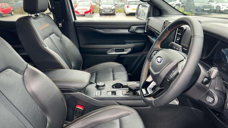 AEB and ISA, Conventional gearshift, Electric power assisted steering, Evasion steer assist, Ford pass connect embedded modem, Ice warning, Partial TFT/LCD instrument cluster, Passenger side roof mounted grab handle, Pre collision assist, Road departure warning, Traffic sign recognition, Trip computer, 360 lighting, Accent colour exterior mirrors, Accent colour front bumper, Accent colour grille, Accent colour rear bumper, Acoustic laminated windscreen, Active grille shutter, Assisted conventional tailgate, Auto high headlamp, Automatic headlights, Black rear underrun bar, Black wheelip molding, Body coloured door handles, Daytime running lights, Dual power heated fold back door mirror with puddle lamps, E-marked glass, Electric rear window defroster, Electric windshield defroster, Electrochromic interior mirror, Fog lamp bezel, Front fender painted grill, Front headlamp leveling, Front splash guard, Front towing hooks, High mounted stop lamp, Ladder rack, LED Front fog lamp, Level 2 halogen headlamps, Level 2 LED taillamps, Manual liftgate, Narrow bodyside moulding and insert, Non locking capless fuel fill, Outside thermometer, Plastic cab roll over bar, Power front windows with one touch up/down, Privacy glass, Quickclear heated windscreen, Rain sensitive windshield wipers, Rear bumper extension, Rear bumper step, Rear fog lamps, Rear mudflaps, Rear splash guard, Roof rails, Self coloured decklid handles, Side step - Bar only, Side step with bright finish inserts, Silver matte step bar, Standard green glass windscreen, Trailer tow class I, Trailer tow wiring, Under hood engine cover, Cargo light, Console with double lid, Door handles with inside MIC, Driver and passenger sunvisor with mirror, Ebony headliner, Electronic dual zone automatic air conditioning, Fold flat rear seat with durabale surface, Fresh air heater, Glove box lights, Heated steering wheel, LED ambient interior lighting, Less load rest, Less outside tie down hooks, Locking glove box lid, Micro rib embossed leather upholstery, Non woven carpet, Overhead console with dome lamps, Pollen filter, Premium air register, Premium front and rear floor mats, Pull out cup holder, Reach and rake adjustable steering column, Rear floor ducts, Roof storage for driver sunglasses, Steering wheel with multimedia controls, Tie down rails and rope hooks, Washer tank level warn lamp, Body protection pack 2 - Ranger, Front seat pack 7 - Ranger, Functional upgrade pack 3 - Ranger, Heavy duty terrain pack - Ranger, Interior trim pack 13 - Ranger, Rear seat pack 15 - Ranger, Tachograph prep pack - Ranger, Child proof rear door locks, Driver and passenger airbag, Driver knee airbag, Head and thorax airbag in 2nd row, ISOFIX child safety seat attachment, Passenger knee airbag, Tyre pressure sensors, 2 Remote control unit - key fob, Flip key, Immobiliser, Locking wheel lug nut, Passive anti theft system, Passive keyless entry, Power door dead locks, Power tailgate lock, Thatcham alarm system, Thatcham security system, 12V aux rear power point plug, ABS/ESP brakes with electronic brake boost, Electric parking brake, Emergency brake assist, Engine start/stop system, Front and rear disc brakes, Loadbox power point plug, Open style rear axle, Soft ride suspension, 18" Aluminium spare wheel, Spare tire lock,