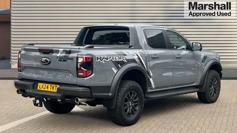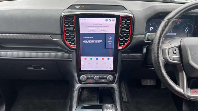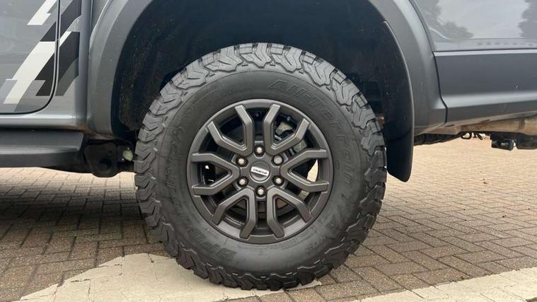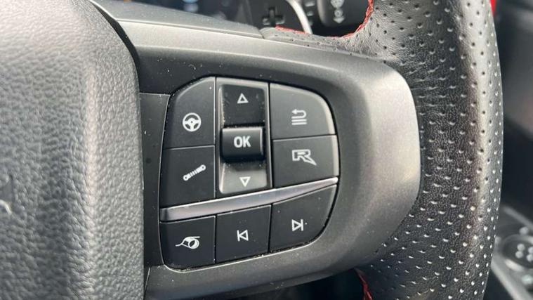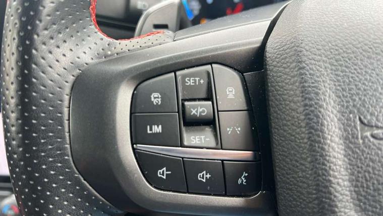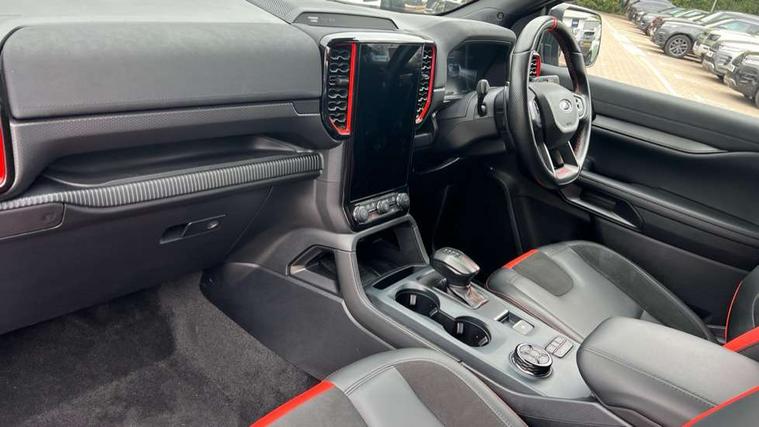A-pillar assist handle, Electric power assisted steering, Electronic automatic gearshift, Full TFT/LCD instrument cluster, Passenger side roof mounted grab handle, Pro trailer backup assist, Wireless charging pad, 360 lighting, Accent colour HD front bumper, Acoustic laminated windscreen, Assisted conventional tailgate, Automatic headlamp levelling, Automatic headlights, Black front fender grille, Black grille, Body colour exterior mirrors, Body coloured door handles, Cast alloy side step, Daytime running lights, Dual power heated fold back door mirror with puddle lamps, E-marked glass, Electric rear window defroster, Electric windshield defroster, Electrochromic interior mirror, Extra large wheelarch flares, Fog lamp bezel, Front splash guard, Front towing hooks, Fuel tank guard, High mounted stop lamp, LED Front fog lamp, Level 3 Taillamps, Manual liftgate, Metal underbody protection, Non locking capless fuel fill, Power front windows with one touch up/down, Power rear windows, Privacy glass, Rain sensitive windshield wipers, Rear bumper step accent color, Rear fog lamps, Rear splash guard, Rear towing hooks, Self coloured decklid handles, Tempered glass front window, Under hood engine cover, 12v socket in bedliner, Cargo light, Console with double lid, Driver and passenger sunvisor with mirror, Dual control system - Electronic air temperature control (EATC), Fresh air heater, Front premium floor mats, Heated steering wheel, High series air register, LED ambient interior lighting, Load box edge protectors, Locking glove box lid, Non woven carpet, Overhead console with dome lamps, Pollen filter, Pull out cup holder, Radio noise supression, Rear floor ducts, Roof storage for driver sunglasses, Steering wheel with multimedia controls, Super matte leather upholstery, Tie down hooks, Washer tank level warn lamp, Front seat pack 9 - Ranger, Functional upgrade pack 3 - Ranger, Heavy duty terrain pack - Ranger, ICE feature pack 106 - Ranger, Interior trim pack 15 - Ranger, Rear seat pack 15 - Ranger, Wheel pack 19 - Ranger, Breakdown warning triangle, Child proof rear door locks, Driver and passenger airbag, Dual note electric horn, 2 Remote control unit - key fob, Power door dead locks, Stolen vehicle recovery system, Tailgate lock, Thatcham alarm system, Thatcham security system, 400W Power inverter, ABS/ESP brakes with electronic brake boost, Battery management system, Cabin socket and loadbox socket, Electric parking brake, Electrical outlet 3, Engine start/stop system, Front and rear disc brakes, Locking front axle, Locking rear axle, Performance suspension, Rear power point plug, 17" alloy wheels painted in precision grey and all terrain tyres with Ford carbon black centre cap, 17" Aluminium spare wheel, Spare tire lock,