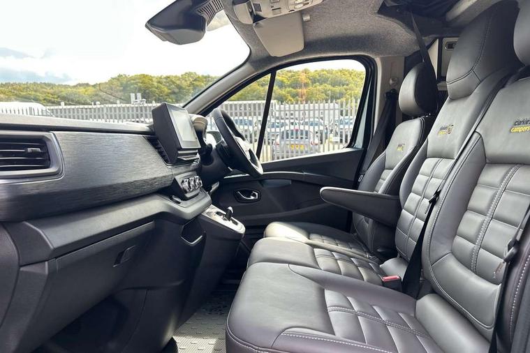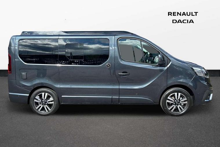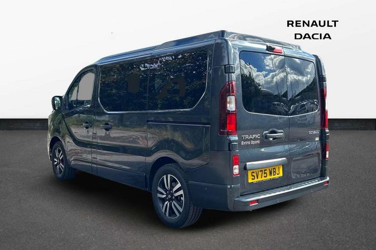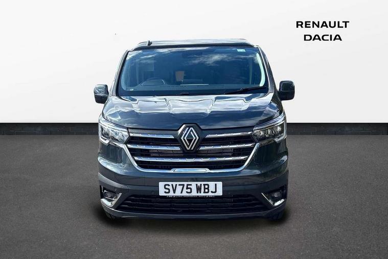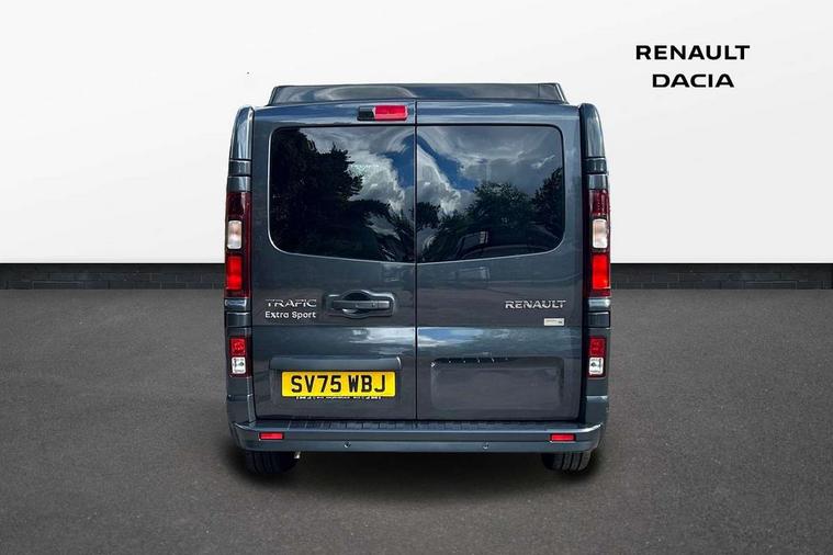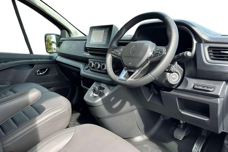 360 degree parking sensors (front, rear and lateral ultra sonic sensors), 7" Colour TFT driver information display, Driver attention alert, Driver drowsiness warning, E-Call - automated emergency call, Easy link navigation with 8" touchscreen DAB radio with bluetooth, USB + aux input, compatible with Apple CarPlay and Android Auto, ECO mode button, Gearshift indicator, Intelligent Speed Assist, Lane departure warning system, PAS, Rear parking camera, Smart phone integration with Android auto & Apple CarPlay, Trip computer, Automatic high beam, Blind spot mirror on passenger sunvisor, Body coloured door mirrors, Body coloured door rail and rear tail light column with chrome grille, Body coloured front bumper, Body coloured side mouldings, Chrome Grille, Electric folding door mirrors, Electric front windows with one touch drivers window, Front fog lights, Full LED headlights with C-shaped DRL, New brand identity, Roof bar fixings, Wide view mirror, 12V power socket in front, 14 load anchorage points, Climate control, Closed glovebox, Height adjustable drivers seat with armrest and lumbar adjustment, Interior LED cabin lighting, Java cloth upholstery, LED load space lighting, Premium dashboard with horizontal grain and chrome styling, Premium faux leather steering wheel, Look pack - Trafic, Parking pack - Trafic, Visibility pack - Trafic, 3 point height adjustable seatbelts with pretensioners and load limiter, Driver and passenger airbags, Driver and passenger seatbelt reminder, Front lateral and curtain airbags and passenger airbag with deactivation, Alarm - Thatcham T1 volumetric alarm, Alcohol interlock pre-device, Deadlocking, Electronic immobiliser, Hands free key card with push button stop/start function, Keyless entry system, Remote central locking, 20L AdBlue tank, 4 disc brakes, 6 speed gearbox, 80 litre fuel tank, ABS with EBD (Electronic Brake force Distribution), Active emergency braking system, ESC (Electronic Stability Control) with Hill Start Assist and Grip Xtend, 17" Avens diamond cut alloy wheels,