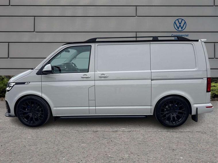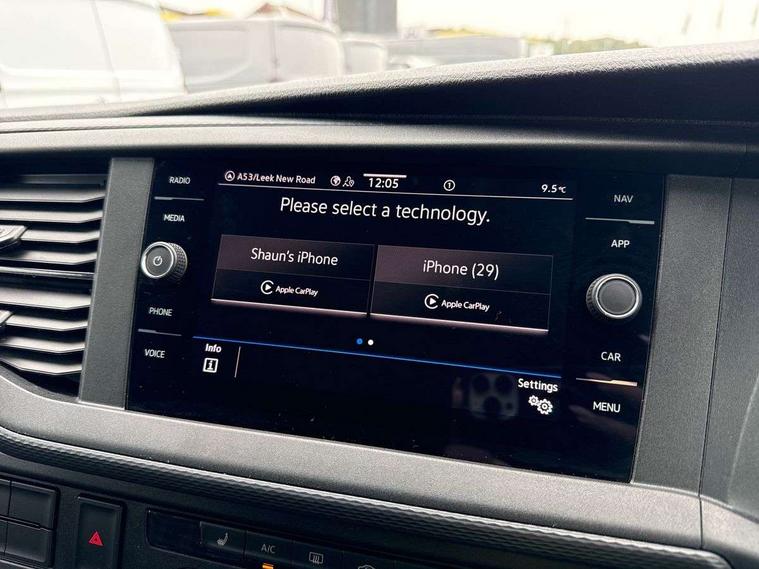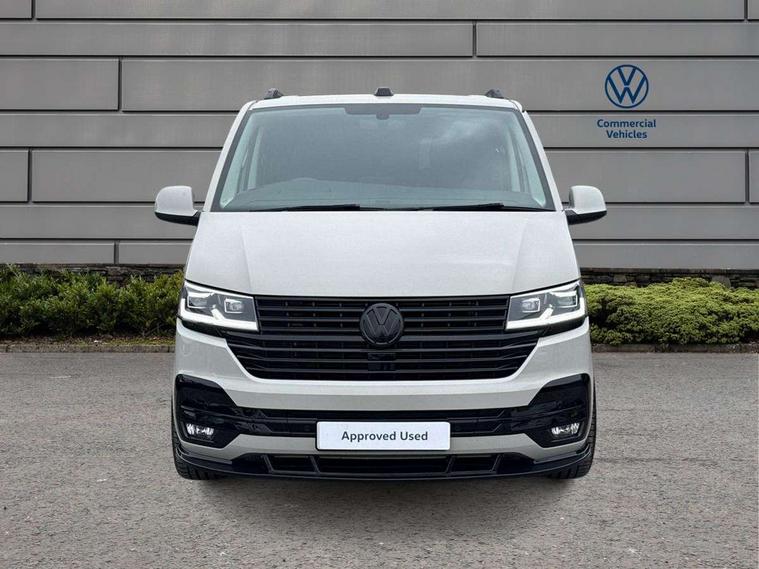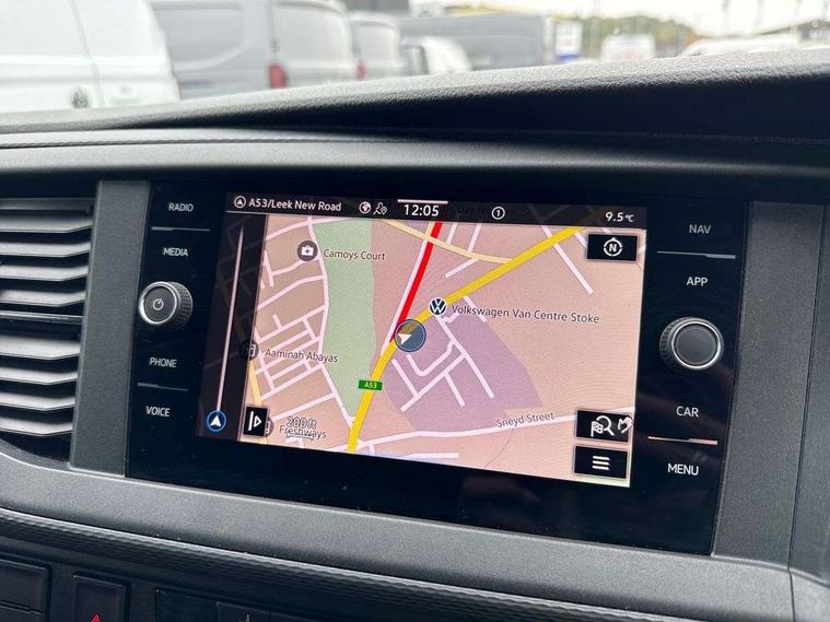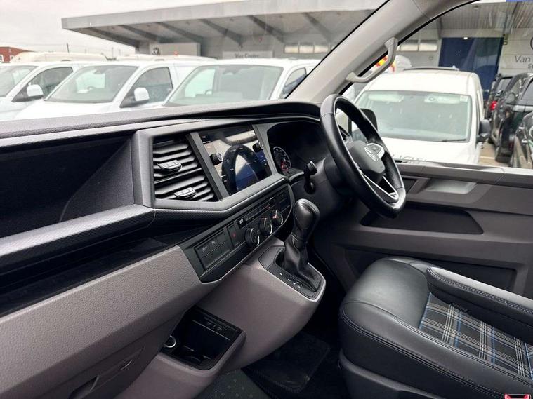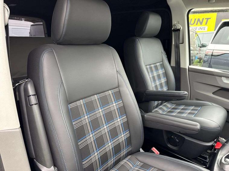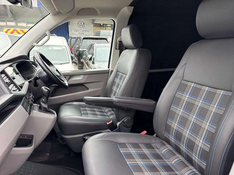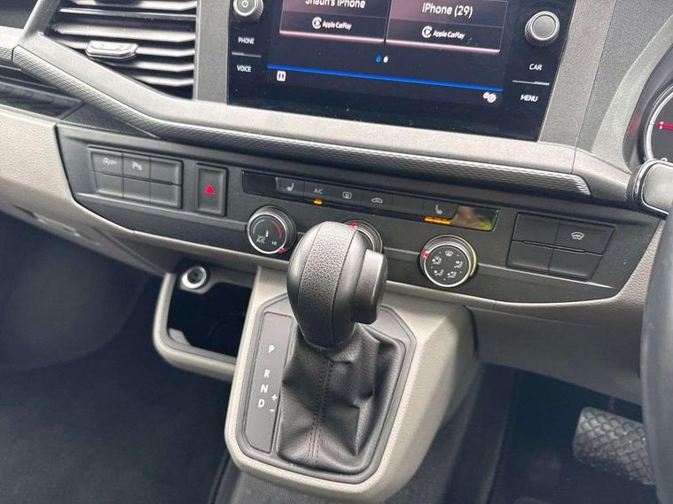 Adaptive cruise control, Cross wind assist, Dimmable illuminated instruments, Driver alert with Multi-function display plus, eCall emergency system, Forward collision warning front assist with autonomous emergency braking, Mobile phone interface, Multi function display plus with black and white display, 2 USB interfaces type C in dashboard, 4 speakers with 2 tweeters and 2 woofers, Composition colour radio with 6.5" touchscreen, Digital radio reception (DAB+), Volkswagen app connect, Automatic headlight control, leaving home and manual coming home feature, Closing rear wing door with unlatching from the inside, Front fog lamps with cornering light, Heat insulating glass (green) in cab and passenger/load compartment, Heated front windscreen, Left convex exterior mirror, Power folding adjustable door mirrors with separately heated, Radiator grille with 2 chrome trims, Rear wing doors without window apertures, Right convex exterior mirror, Transporter nameplate on the rear fender, Windshield wiper intermittent control with rain sensor for windshield wipers, 3 spoke leather wrapped multi function steering wheel, Auto dimming breakaway interior rear view mirror, Comfort headliner in cab, hardboard roof trim in passenger and load compartment, Dust/pollen filter, Front and rear left without window closed side panel in load compartment, Front seats on the right in 1st row of seat, Glove compartment with illumination, Heavy duty tool kit and jack, High partition, Interior plastic loading edge protection, LED Interior lighting in load and passenger compartment, Manual adjustable lumbar support for right single seat in 1st row seats, Refrigerant R134a, Standard lower part dashboard in palladium, Storage compartments on cab seats and reading light, Without right side window apertures in passenger and load compartment, Comfort pack - Transporter, Exterior pack without fog light- Transporter, Non smoker pack - Transporter, 3 point height adjustable seat belts on outer seats cab with electric pretensioners, Driver and front passenger airbag with front passenger airbag deactivation, Warning buzzer and light for driver and front passenger seat belt not fastened, Without child safety lock in passenger compartment, Anti theft alarm system with interior monitoring in cab, backup horn and towing protection, Lockable wheel bolts, 16" chassis with 16" brake system, Diesel particulate filter, Electronic stability control, ABS, ASR with deactivation button, hill start assist and brake assist system, Start/stop system with regenerative breaking, 16" Clayton alloy wheels,
