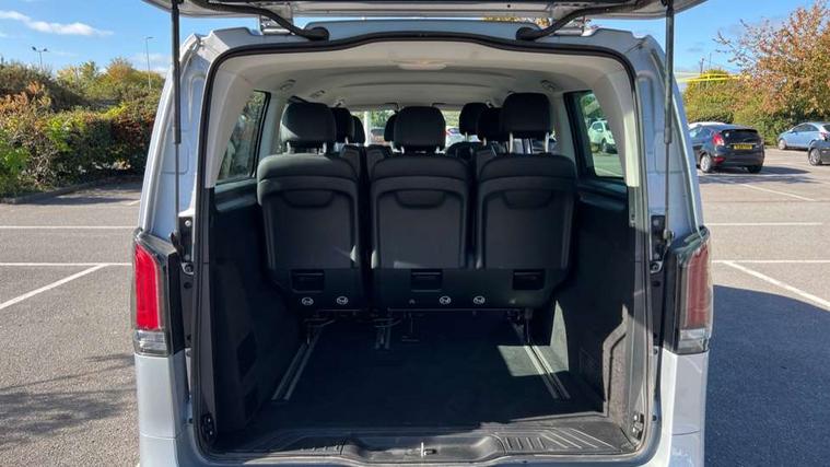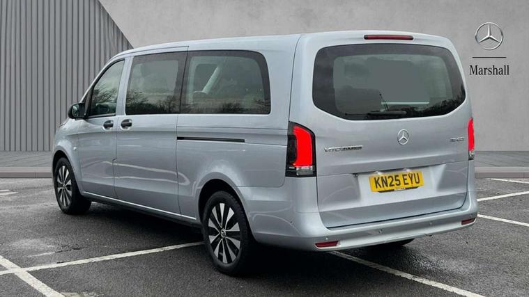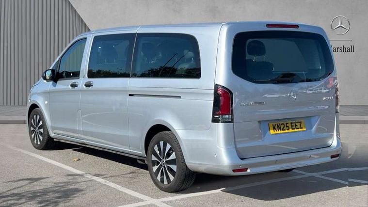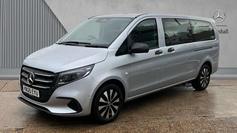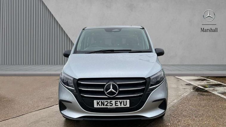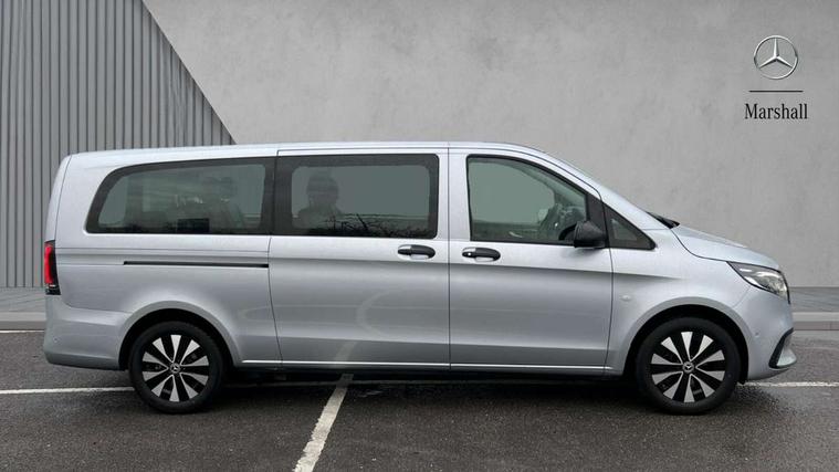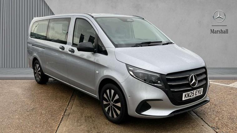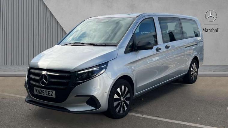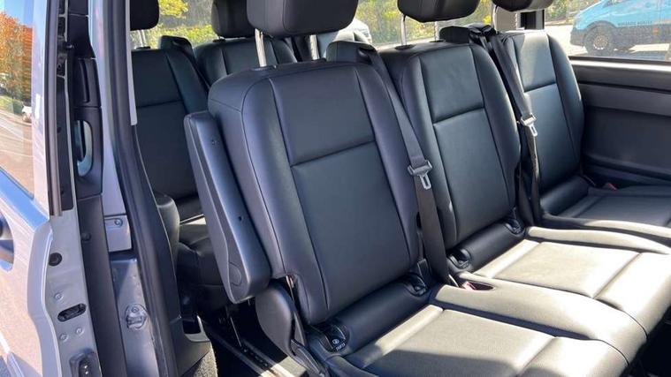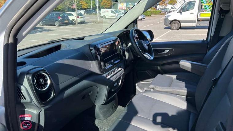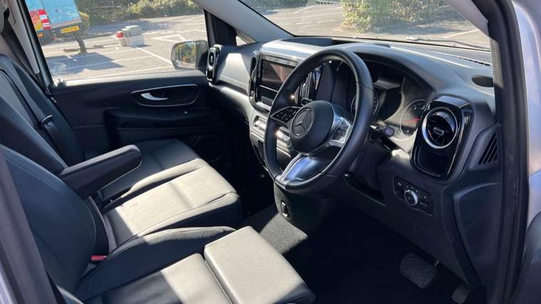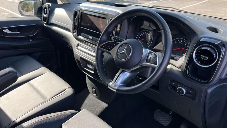 Active lane keeping assist, Blind spot assist, Comfort overhead control panel, Cruise control, Electric power steering, Modern instrument cluster with 5.5" TFT color display, Wireless tyre pressure monitoring, 2 way front and rear loudspeakers, Aux input socket, Digital radio (DAB), MBUX multimedia system with 10.25" touchscreen, Adaptive brake lights, Chrome radiator grille, Colour coded front and rear bumpers, Daytime running lights, Electric front windows, Electrically heated and adjustable door mirrors, Exit lamps, Headlight assistant, Heat insulating glass, LED tail lamps, brake lamps and indicators, Multibeam LED with highbeam assist plus, Side sliding door - left, Side sliding door - right, Tailgate, Third rear brake light, 12V outlets right and left for rear seat row, 3 seater comfort bench in 2nd row with folding outer seat, Armrests for crew/passenger compartment, Comfort driver's seat, Driver's seat lumbar support, Electrical component for trailer socket, Front carpets, Front door storage pockets, Front footwell lights, Grab handles for drivers and co-driver doors, Grab handles in rear, Height adjustable head restraints, Height and rake adjustable steering wheel, Illuminated vanity mirrors with sunvisors, Interior ambient lighting, Interior panelling higher execution, Leather steering wheel, Locking glove compartment, Multifunctional steering wheel, Panelling under roof, Rear carpets, TPO Plastic flooring in passenger compartment, Anti theft protection pack - Vito Tourer, Chrome interior appointments pack - Vito Tourer, Mirror pack - Vito Tourer, Parking pack - Vito Tourer, Smartphone integration package - Vito/Vito Tourer, 3 point seatbelts for all seats, Accident recovery and breakdown management, Attention assist, Co-driver airbag, Co-driver thorax, pelvis and side airbag, Crosswind assist, Driver thorax, pelvis and side airbag, Driver's airbag, Mercedes-Benz emergency call system, Windowbags for driver and co-driver, 12V outlets sockets, 24 litre larger AdBlue tanks, 70 litre fuel tank, 9G tronic automatic gearbox, ABS/ESP/ASR, Active brake assist, Diesel particulate filter, EBV and BAS, Hill start assist, Mechanical parking brake, Speed limiter 210 km/h, Traction control, Uprated heavy duty battery - 95Ah,