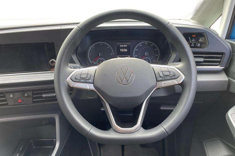 Bluetooth - Mobile phone interface, Digital multi-function cockpit display, Driver alert system, eCall emergency system, Lane assist, Seatbelt warning indicator, Service indicator, Start-stop system with regenerative braking, 2 USB interfaces type C in dashboard, DAB Radio, Automatic hazard light activation under emergency braking, Body coloured bumpers, Electric front windows, Heat insulating windscreen, Rear view mirror with anti dazzle function, Roof rail preparation, Windscreen wiper with variable intermittent delay and wash-wipe system, Electronically controlled heating system, ergoComfort seats for driver, Interior light in headliner incorporting LED technology, Lockable glove compartment door with light, Manual heating and ventilation system, Manual height adjustment for front seats and seat cushion inclination and depth adjustment on drivers seat, Multi function leather steering wheel, Power-adjustable lumbar support for drivers seat, Reach and rake adjustable steering column, Six lashing points for securing loads, Storage compartments under driver and front passenger seats, Sun visors with mirror, airbag label on front passenger sun visor, 3-point seat belts in front, with pretensioner and height adjustment, Driver and front passenger airbag with front passenger airbag deactivation, Tyre pressure monitoring system, Anti-theft alarm system, interior monitoring, backup horn, and towing protection, Electronic engine immobiliser, Remote central locking with deadlocks, interior locking, Anti locking braking system (ABS), Automatic post collision braking system, Autonomous Emergency Braking Front Assist with Pedestrian Monitoring, Diesel particulate filter, Electric parking brake with auto hold function, Electronic brake force distribution (EBD), Electronic differential lock (EDL), Electronic stabilisation programme (ESP), Engine drag torque control (MSR), Hill hold assist, Traction control system (TCS), Decorative beige birch vein inserts, Full size wheel trims,
