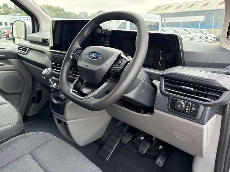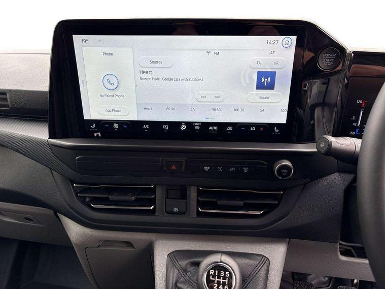 13" Touchscreen, 5G embedded modem, AECS NO SMS/Roll Detect 2G, PAS, Tyre pressure monitor, SYNC 4 - Android Auto/Apple Car Play, advance speech recognition, over the air update capability, Automatic headlights, Automatic windscreen wipers, Body coloured door mirrors, Body coloured front bumper, Body coloured rear bumpers, Daytime running lights, Electric front windows with one touch facility for driver and front passenger, Front mud flaps, Front splash guards, Low roof line, Quickclear front window defroster, Rear cargo hinged door, Rear splash guards, Trailer sway control, 6 Load compartment tie down loops, Courtesy light, Interior grab handle with driver's sunglasses holder, LED lights, Locking glove box lid, Sensico gearshift knob, 2 remote keys, Alcohol Interlock wiring preparation pack, Keyless entry and start, Locking wheel lug nut, Thatcham category 1 alarm, 20L AdBlue tank, ABS, Diesel particulate filter, ESP, Hill launch assist, Traction control, Full wheelcovers,