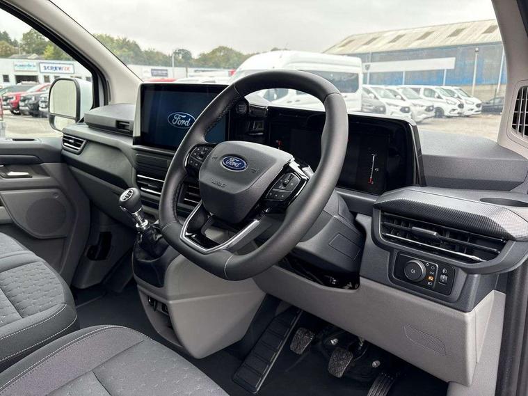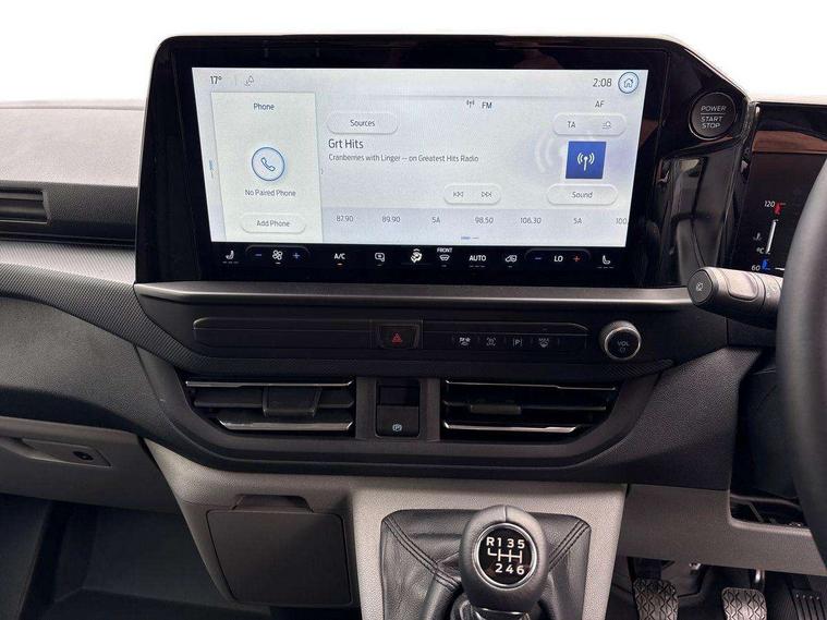 13" Touchscreen, 5G embedded modem, AECS NO SMS/Roll Detect 2G, PAS, Tyre pressure monitor, SYNC 4 - Android Auto/Apple Car Play, advance speech recognition, over the air update capability, Automatic headlights, Automatic windscreen wipers, Body coloured door mirrors, Body coloured front bumper, Body coloured rear bumpers, Daytime running lights, Electric front windows with one touch facility for driver and front passenger, Front mud flaps, Front splash guards, Low roof line, Quickclear front window defroster, Rear cargo hinged door, Rear splash guards, Trailer sway control, 6 Load compartment tie down loops, Courtesy light, Interior grab handle with driver's sunglasses holder, LED lights, Locking glove box lid, Sensico gearshift knob, 2 remote keys, Alcohol Interlock wiring preparation pack, Keyless entry and start, Locking wheel lug nut, Thatcham category 1 alarm, 20L AdBlue tank, ABS, Diesel particulate filter, ESP, Hill launch assist, Traction control, Full wheelcovers,