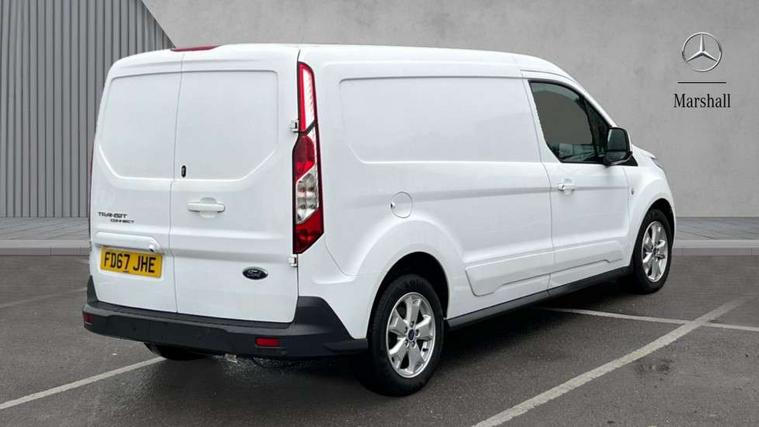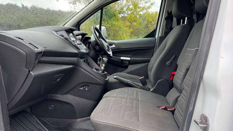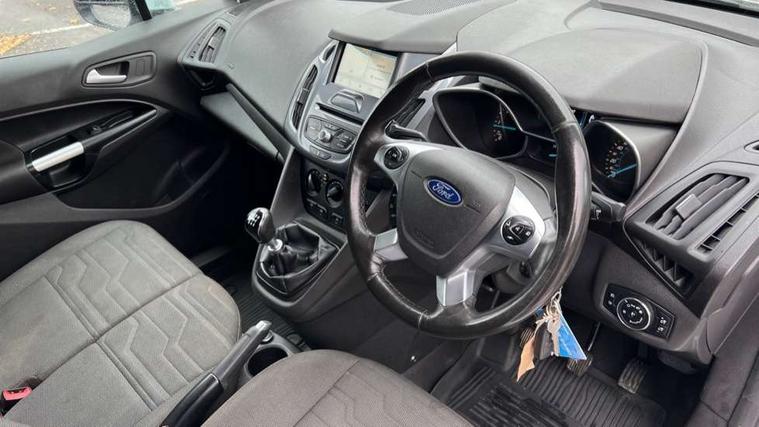 Bluetooth with USB box, Cruise control with speed limiter, Easy fuel capless refuelling system, PAS, Reverse parking sensor, Trip computer, Voice control system, DAB radio/CD with SYNC, Steering wheel mounted audio controls, Automatic lights and wipers, Body colour side protection mouldings, Body coloured door handles, Body coloured door mirrors, Body coloured front bumper, Chrome front grille, Chrome head lamp bezels, Electrically folding and heated door mirrors, Front electric windows with anti-trap and driver's one touch function, Heated windscreen with heated door mirrors and washer jets, 6 lashing points for securing loads, 8 way adjustable drivers seat, Bulkhead - load through hatch, Cloth upholstery, Dual fold flat passenger seat with storage box, Glovebox with lid, Heated driver's seat, Interior roof rack / Interior Overhead stowage, Leather steering wheel, Load box LED lights, Plastic cargo area lining, Reach and rake adjustable steering column, Fuel economy pack - Transit Connect, Driver seatbelt reminder, Driver's airbag, 2nd remote key, Immobiliser, Remote central locking, Thatcham category 1 alarm, ABS + EBD, ESP + EBA, Hill start assist,