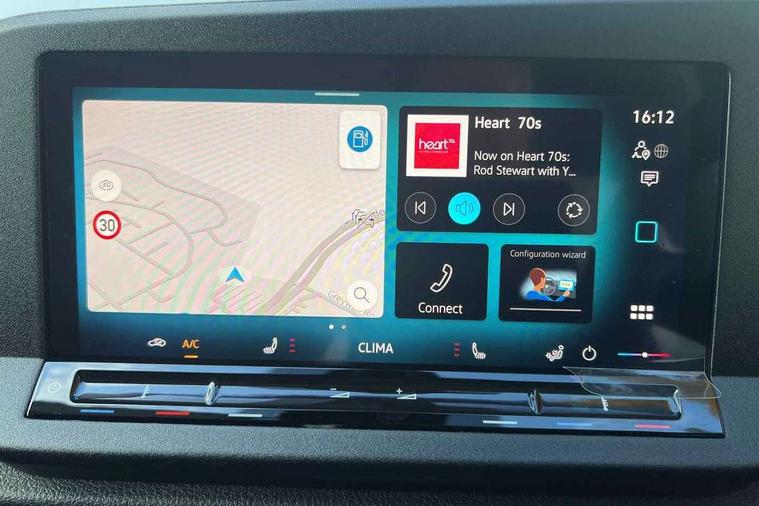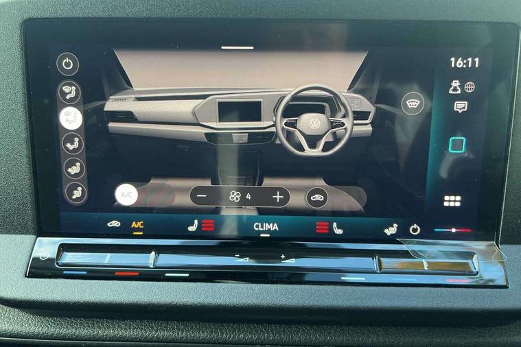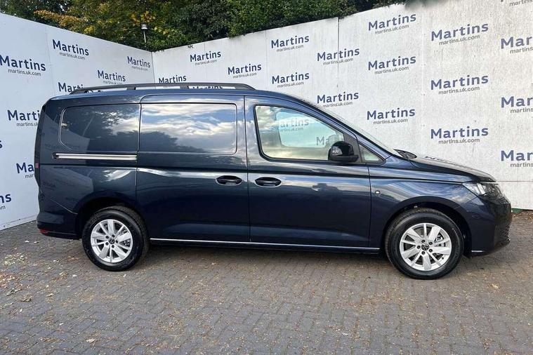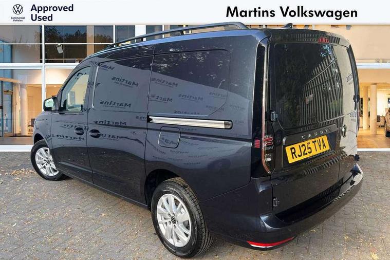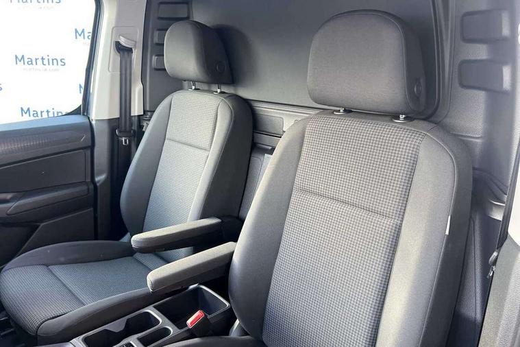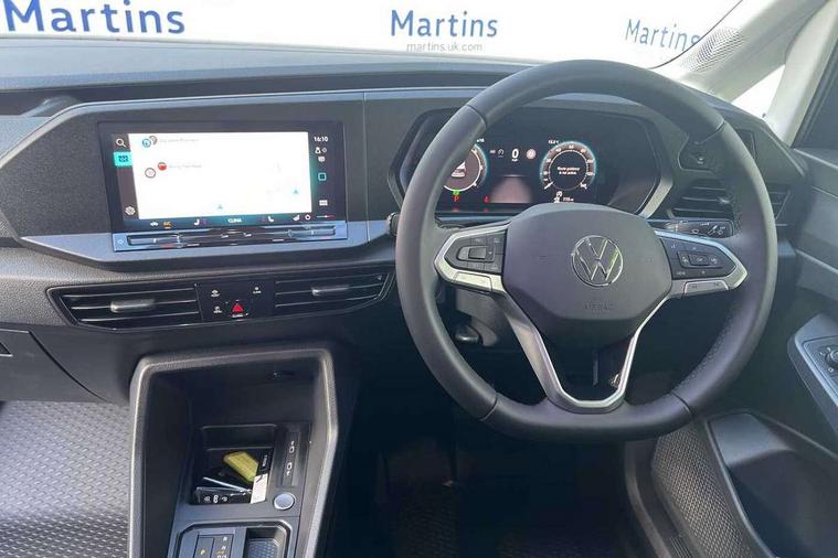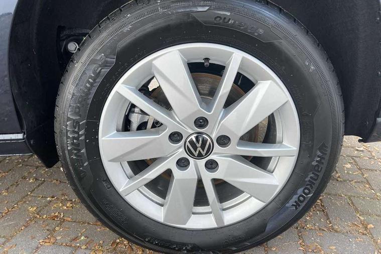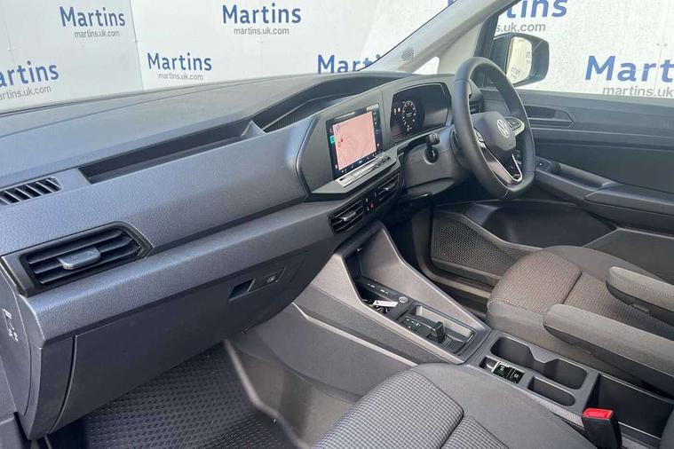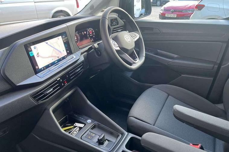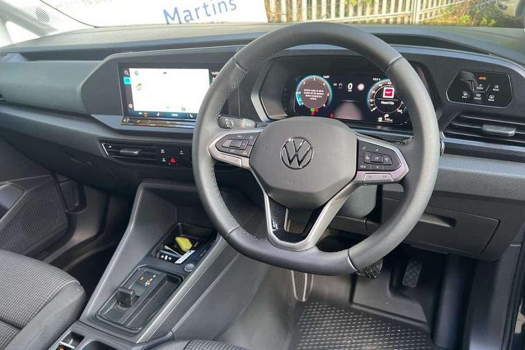 Bluetooth - Mobile phone interface, Car2X technology, Driver alert system, eCall emergency system, Intelligent Speed Assist, Lane assist, Seatbelt warning indicator, Service indicator, Start-stop system with regenerative braking, 2 USB interfaces type C in dashboard, App-Connect - Wireless for Apple CarPlay, DAB Radio, We Connect Plus Preparation, Automatic hazard light activation under emergency braking, Black painted exterior mirror housings, body-colored door handles and Silver sliding door rail, Body coloured bumpers, Electric front windows, LED rear combination lights, LED rear tail lights, Roof rail preparation, Windscreen wiper with variable intermittent delay and wash-wipe system, Dimming breakaway interior rear view mirror, Electronically controlled heating system, ergoComfort seats for driver, Interior light in headliner incorporting LED technology, Lockable glove compartment door with light, Manual heating and ventilation system, Manual height adjustment for front seats and seat cushion inclination and depth adjustment on drivers seat, Multi function leather steering wheel, Power-adjustable lumbar support for drivers seat, Reach and rake adjustable steering column, Six lashing points for securing loads, Steering wheel paddle shift, Storage compartments under driver and front passenger seats, Sun visors with mirror, airbag label on front passenger sun visor, Winter pack plus - Caddy, 3-point seat belts in front, with pretensioner and height adjustment, Driver and front passenger airbag with front passenger airbag deactivation, Tyre pressure monitoring system, Anti-theft alarm system, interior monitoring, backup horn, and towing protection, Electronic engine immobiliser, Remote central locking with deadlocks, interior locking, Anti locking braking system (ABS), Automatic post collision braking system, Brake assist, Diesel particulate filter, Electric parking brake with auto hold function, Electronic brake force distribution (EBD), Electronic differential lock (EDL), Electronic stabilisation programme (ESP), Engine drag torque control (MSR), Hill hold assist, Traction control system (TCS), Decorative beige birch vein inserts, Wheel bolts with anti-theft protection (unlockable),