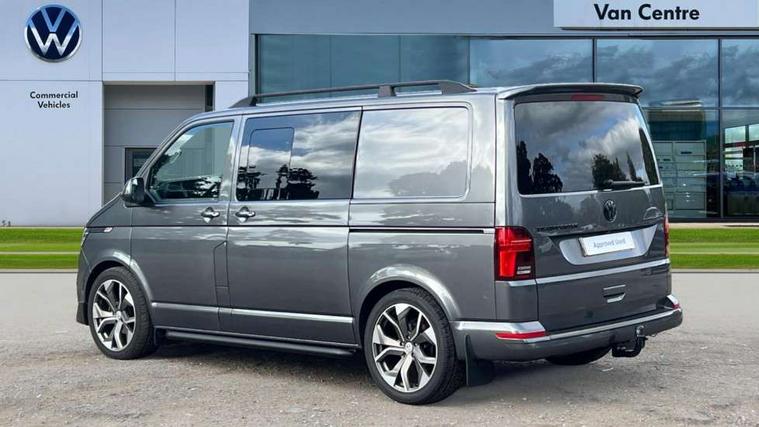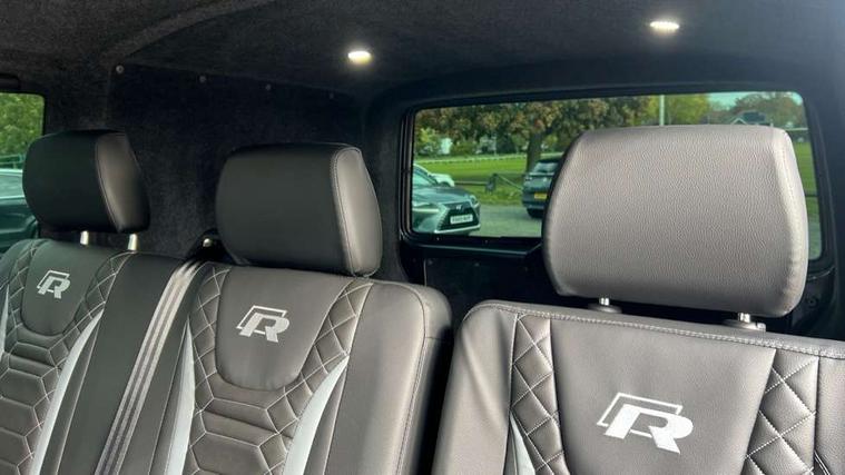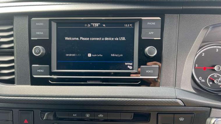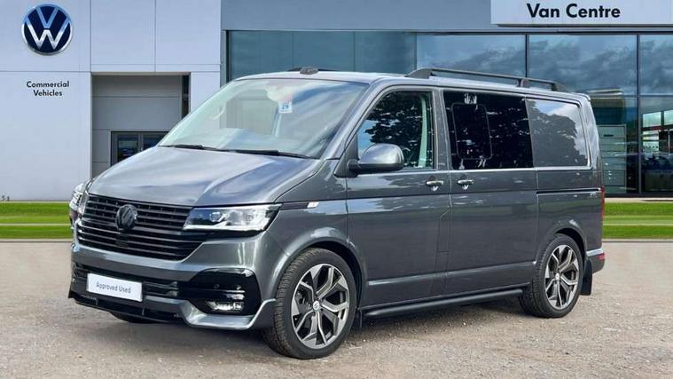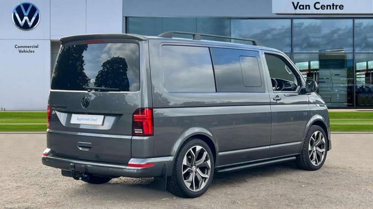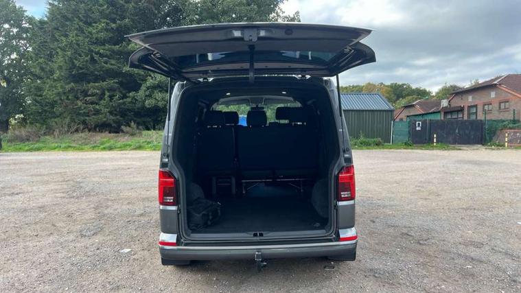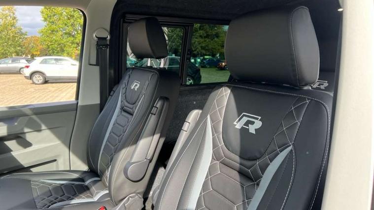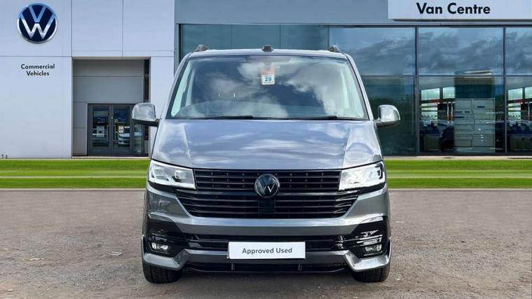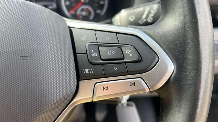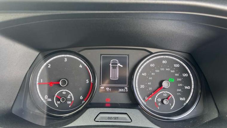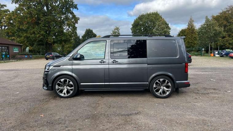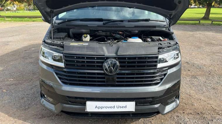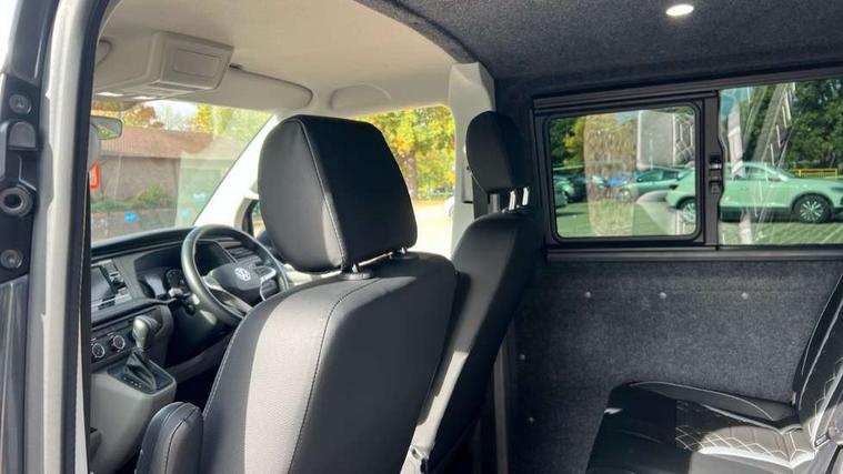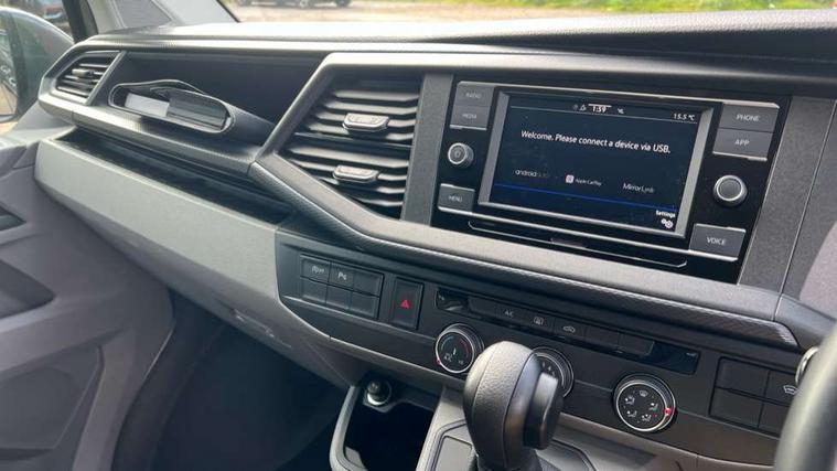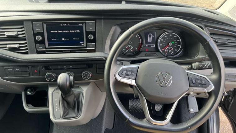 Adaptive cruise control, Child seat anchors ISOFIX and top tether in 2nd row of seats, Cross wind assist, Dimmable illuminated instruments, Driver alert with black and white multi function display plus, eCall emergency system, Forward collision warning front assist with autonomous emergency braking, Headlight range control, Mobile phone interface, Without voice control, 2 USB interfaces type C in dashboard, 4 speakers with 2 tweeters and 2 woofers, Composition colour radio with 6.5" touchscreen, Digital radio reception (DAB+), Volkswagen app connect, Automatic headlight control, leaving home and manual coming home feature, Front fog lamps with cornering light, Green heat insulating glass, Heated front windscreen, Illuminated steps in passenger/load compartment, Left convex exterior mirror, Power folding adjustable door mirrors with separately heated, Privacy glass from the B-pillar and heat-insulating glass in front, Radiator grille with 2 chrome trims, Rear window with heated insulating glass, heated rear window wiper and washer system, Right convex exterior mirror, Tailgate closing with unlatching from the inside, Transporter nameplate on the rear fender, Windshield wiper intermittent control with rain sensor for windshield wipers, Without adhesive film, 3 spoke leather wrapped multi function steering wheel, Additional sound deadening measures in cab and passenger compartment, Auto dimming breakaway interior rear view mirror, Comfort headliner in cab, hardboard roof trim in passenger and load compartment, Dust/pollen filter, Folding grab handles and storage compartments on cab seats, reading light, Front seats on the right in 1st row of seat, Glove compartment with illumination, Heavy duty tool kit and jack, Interior plastic loading edge protection, Lashing rings for load restraint system, LED Interior lighting in load and passenger compartment, Medium height for vehicles with window aperture hardboard side trim panels in passenger/load compartment, Refrigerant R134a, Standard lower part dashboard in palladium, Without partition, Without seats in 3rd row of seats, Comfort pack - Transporter, Exterior pack without fog light- Transporter, Light and vision pack - Transporter, Non smoker pack - Transporter, 3 point height adjustable seat belts on outer seats cab with electric pretensioners, Driver and front passenger airbag with front passenger airbag deactivation, Power operated child safety lock, Warning buzzer and light for driver seat belt not fastened, Anti theft alarm system with interior monitoring in cab, backup horn and towing protection, Lockable wheel bolts, 16" chassis with 16" brake system, Diesel particulate filter, Electronic stability control, ABS, ASR with deactivation button, hill start assist and brake assist system, Speed limiter, Start/stop system with regenerative breaking, 16" Clayton alloy wheels, Wheel trims,