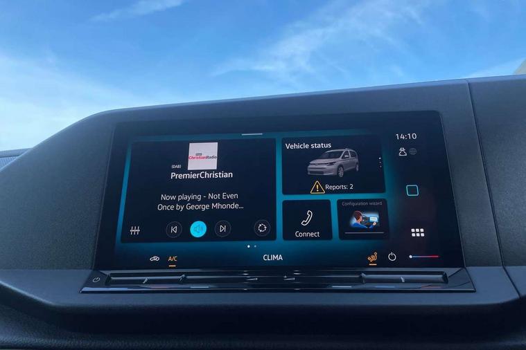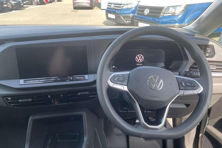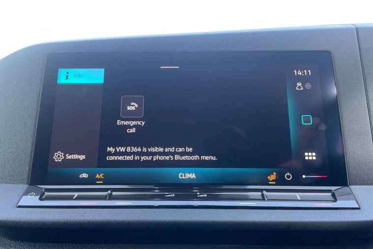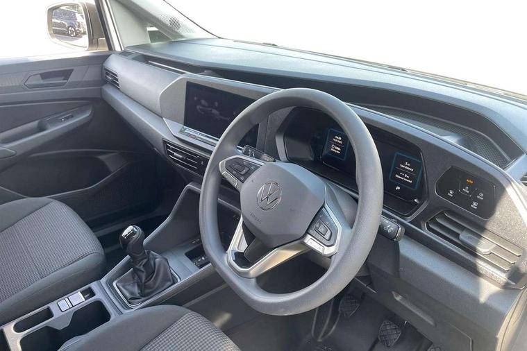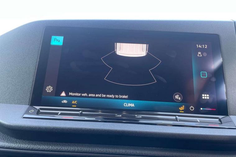 Bluetooth - Mobile phone interface, Car2X technology, Driver alert system, eCall emergency system, Intelligent Speed Assist, Lane assist, Seatbelt warning indicator, Service indicator, Start-stop system with regenerative braking, 2 USB interfaces type C in dashboard, DAB Radio, We Connect Basic Preparation, Automatic hazard light activation under emergency braking, Black front and rear bumpers, Electric front windows, Heat insulating windscreen, Roof rail preparation, Windscreen wiper with variable intermittent delay and wash-wipe system, Dimming breakaway interior rear view mirror, Electronically controlled heating system, Interior light in headliner incorporting LED technology, Lockable glove compartment door with light, Manual heating and ventilation system, Manual height adjustment for front seats, Reach and rake adjustable steering column, Six lashing points for securing loads, 3-point seat belts in front, with pretensioner and height adjustment, Driver and front passenger airbag with front passenger airbag deactivation, Tyre pressure monitoring system, Anti-theft alarm system, interior monitoring, backup horn, and towing protection, Electronic engine immobiliser, Remote central locking with deadlocks, interior locking, Anti locking braking system (ABS), Automatic post collision braking system, Autonomous Emergency Braking Front Assist with Pedestrian Monitoring, Brake assist, Diesel particulate filter, Electric parking brake with auto hold function, Electronic brake force distribution (EBD), Electronic differential lock (EDL), Electronic stabilisation programme (ESP), Engine drag torque control (MSR), Hill hold assist, Traction control system (TCS), Decorative beige birch vein inserts, Full size wheel trims,