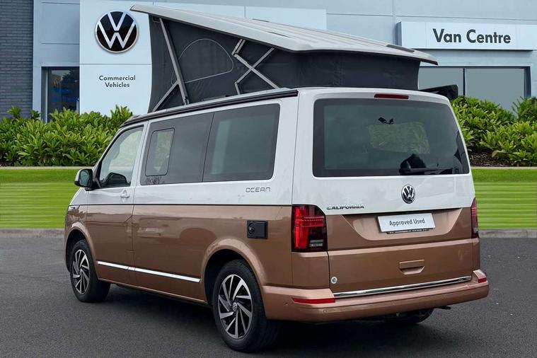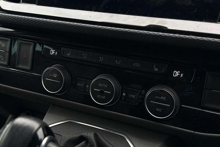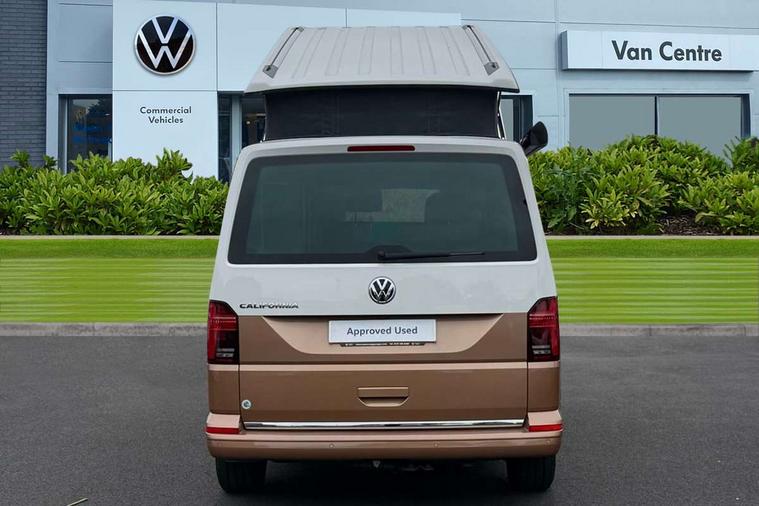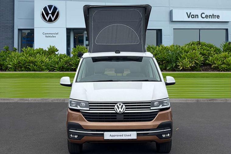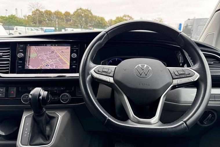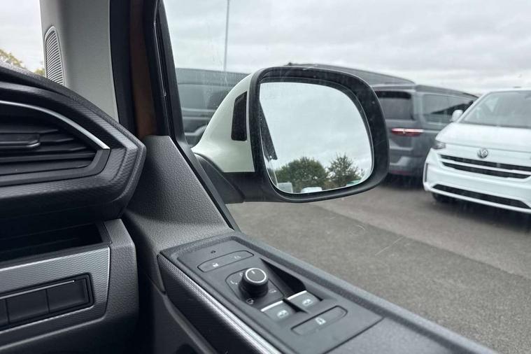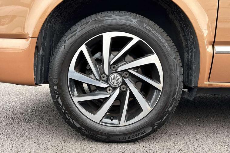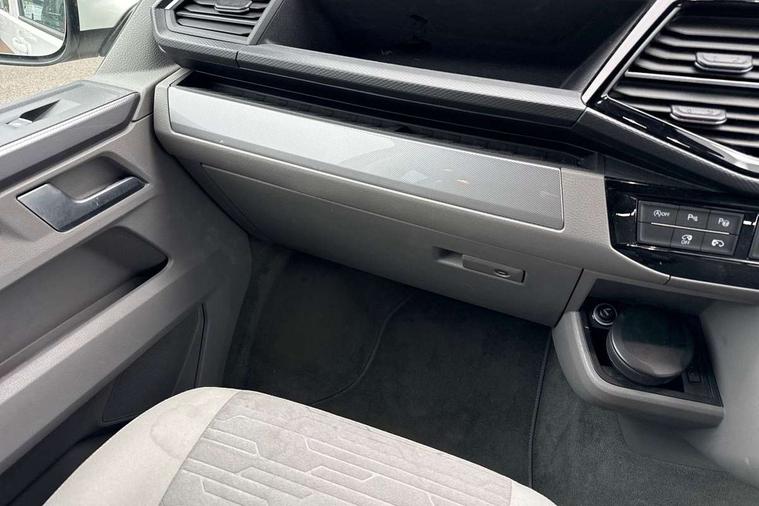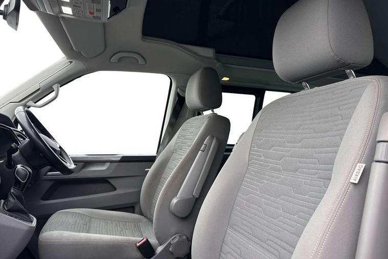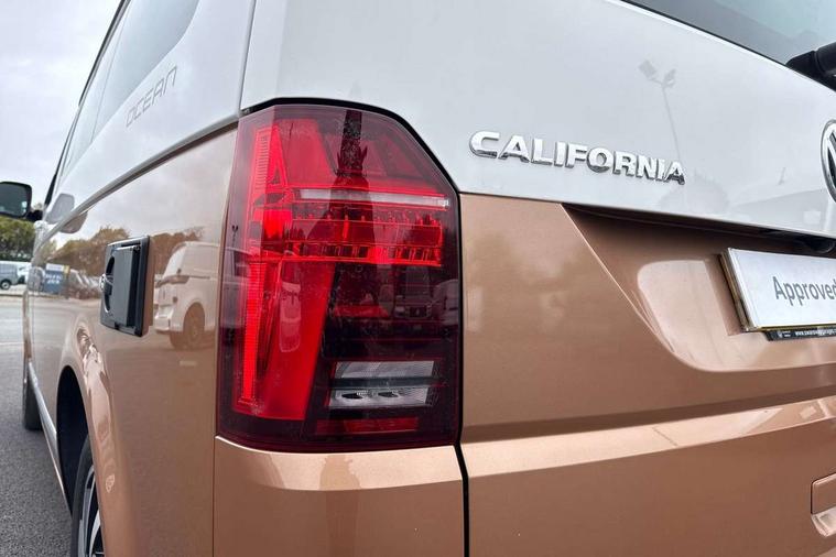 Cross wind assist, Digital cockpit and driver alert system, eCall emergency system, Mobile phone interface, Navigation system preparation, Service interval indicator, Speed limiter, Start/stop system with regenerative braking, Tailgate latch without unlocking function from inside, Tailgate with window aperture and with power latching, Voice control system, Wired and wireless app connect, 17 inch chassis with 17 inch disc brakes in front and 16 inch disc brake in rear, 2 additional batteries with free maintanace including 1 additional battery with cut-off relay, 2 (type C) USB interfaces in dashboard, 8 speakers (4 tweeters + 4 woofers), Digital radio reception (DAB+), Regional code ECE for radio, Additional dust seals on the outside, Automatic headlight range control, Body coloured door handles, Body coloured door mirrors, California nameplate on the fender and on the rear, Electrohydrolic operated pop up roof with 3 windows and 1 front aperture, Front fog lights with cornering function, Heat insulating cab side windows, passenger compartment side windows tinted and with double glazing, Heated washer nozzles in front and washer fluid level indicator, High level 3rd brake light, LED headlamps with LED separate daytime running light, Left convex exterior mirror, Mounting rails on the roof (preparation for movable roof rack), Power adjustable, heated, power folding exterior mirrors, folding possible via vehicle key, Privacy glass with heat insulation, Radiator grille painted in black with 5 chrome trims, additional chrome trim at lower radiator grille, Rear boot, Rear side wing doors, Rear window with insulating glass, rear window wiper and washer system, Right convex exterior mirror, Sliding window in front and fixed window in rear in load/passenger compartment at left, Without left sliding door in load/passenger compartment, 1 swivel seat with longitudinal adjustment on rail system in 2nd row of seats, 1 waste bin in door storage compartment of the cab, 12V outlets in dashboard X 2, 2 velour floor mats, 2-seater bench/bed, movable along rail system and folds down into a two person bed, 230V inlet with charging feature for vehicle batteries and 230V outlet in the interior, 3 spoke leather wrapped multifunction steering wheel, Additional rail for preparation for installation of additional seat, Allergen filter, Armrest for both cab seats, Camping table for inside/outside in sliding door and 2 folding chairs in tailgate, Child seat anchors ISOFIX and top tether for Multivan/California in 2nd to 4th row of seats, Climatronic 3 zone air conditioning with 2nd evaporator, auxiliary heater, air conditioned headliner and additional passenger control, Dimmable illuminated instruments, Electromechanical speed sensitive power steering, height and longitudinally adjustable steering column, Front head restraints, Glove compartment with illumination, Grab handles on A pillar for access, on driver and front passenger side, Heated driver and front passenger seats, Illuminated steps in passenger/load compartment, Illuminated sun visors with mirror and airbag label on front passenger sun visor, Interior loading edge protection in plastic, Jack and tool kit, Manually adjustable lumbar supports for left and right single seat in the 1st row of seats, Operating voltage 12V including 230V outlet on driver seat, Plastic floor covering in passenger/load compartment, Programmable parking heater with radio remote control and auxiliary heater, Rear head restraints, Refrigerant R1234yf, Roof bed (2000 x 1200 mm) with spring plates and mattress, Soft folding grab handles on roof frame, Special interior noise suppression measures, Special sound deadening measures in cab and passenger compartment, Step illumination with California lettering, Swivel seat on the left, with lumbar support in 1st row of seats, Swivel seat on the right, with lumbar support in 1st row of seats, Waeco compressor fridge, Without height adjustment for driver and single passenger seats, Lights and vision pack - California, Smokers pack - California, 3x3 point rear seat belts, Airbags - Drivers and front passengers side and curtain airbags, Driver/Front Passenger airbags, Electronic stability control, ABS, ASR, EDL, brake assist system, Front assist with Autonomous emergency braking for Adaptive cruise control (ACC), Height adjustable 3 point seat belts on outer seats in cab with electric pretensioners, Hill start assist, Passenger airbag deactivation system, Power operated child safety locks, Single tone horn, Warning buzzer and light for driver seat belt not fastened, Anti theft alarm system with interior monitoring in cab, backup horn and towing protection, Central locking system with radio remote control, system controls inside and safelock, Lockable wheel bolts, Comfort dashboard lower part in palladium with chrome elements and bezels painted in black,
