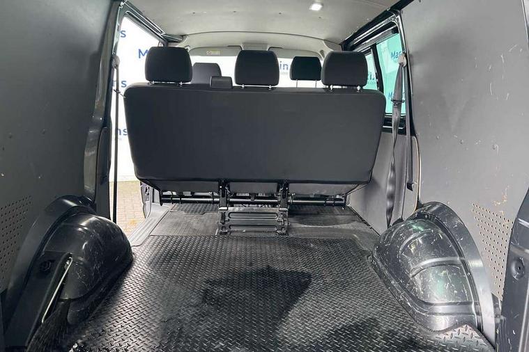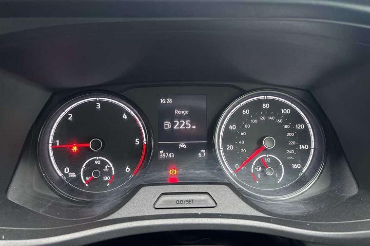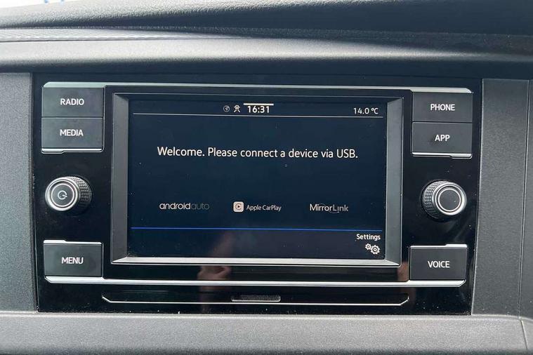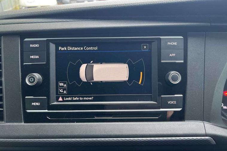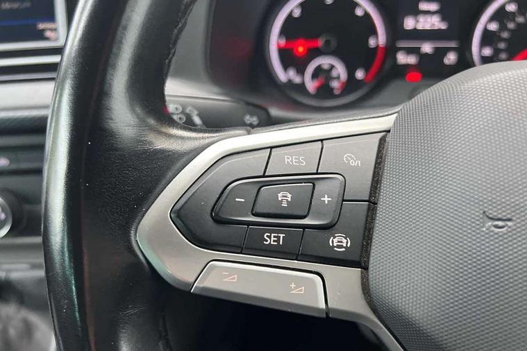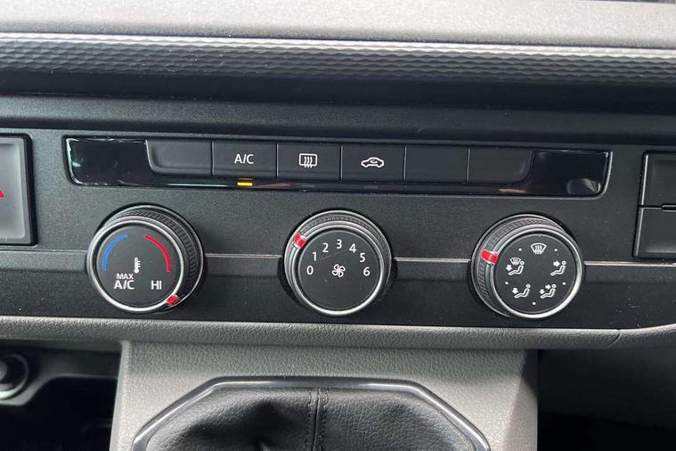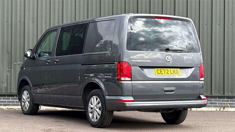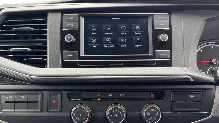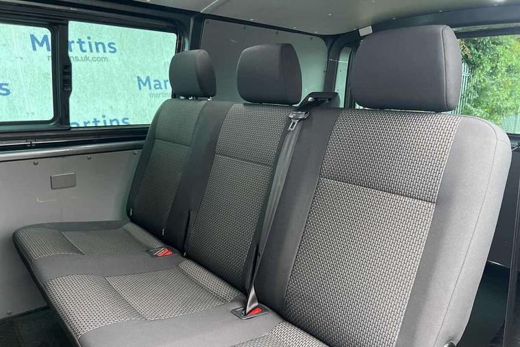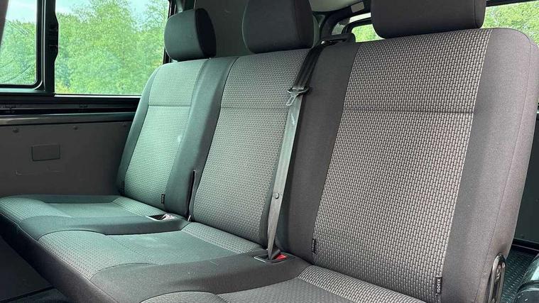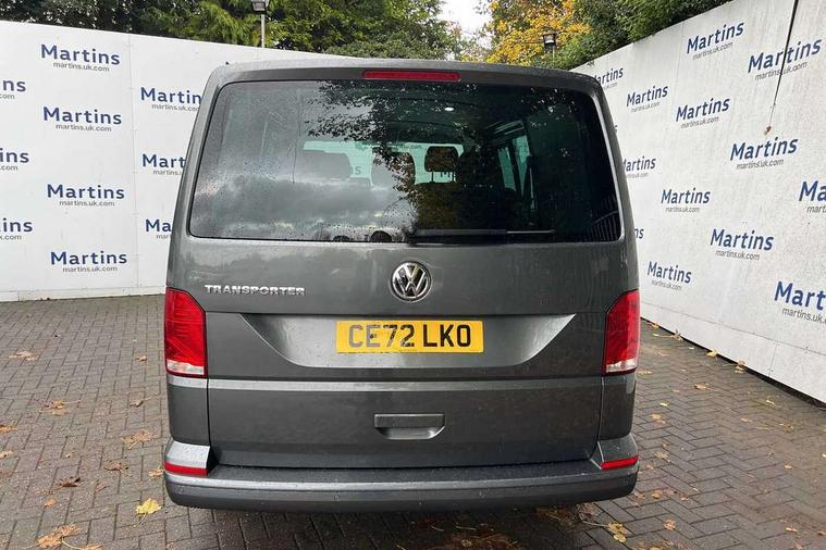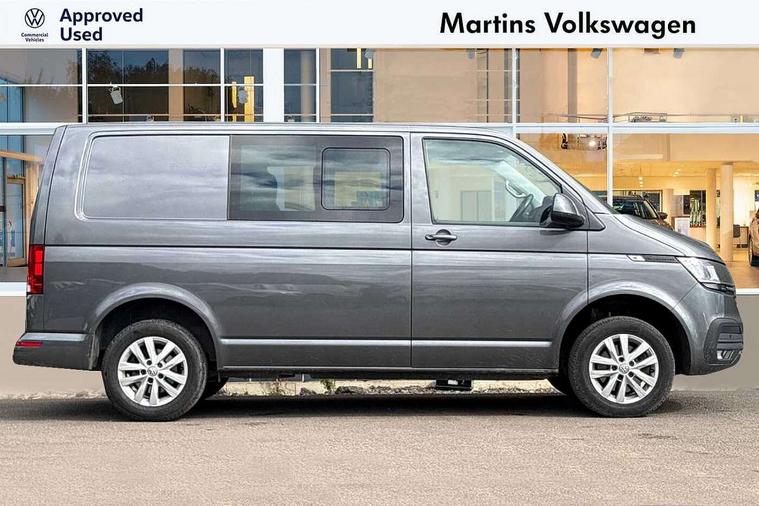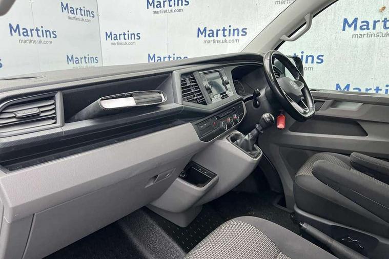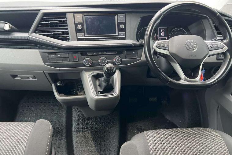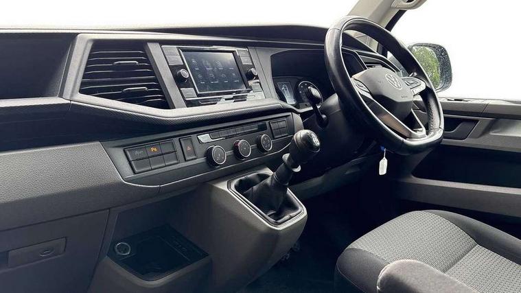 Adaptive cruise control, Child seat anchors ISOFIX and top tether in 2nd row of seats, Cross wind assist, Dimmable illuminated instruments, Driver alert with black and white multi function display plus, eCall emergency system, Forward collision warning front assist with autonomous emergency braking, Headlight range control, Mobile phone interface, Without voice control, 2 USB interfaces type C in dashboard, 4 speakers with 2 tweeters and 2 woofers, Composition colour radio with 6.5" touchscreen, Digital radio reception (DAB+), Volkswagen app connect, Automatic headlight control, leaving home and manual coming home feature, Front fog lamps with cornering light, Green heat insulating glass, Heated front windscreen, Illuminated steps in passenger/load compartment, Left convex exterior mirror, Power folding adjustable door mirrors with separately heated, Privacy glass from the B-pillar and heat-insulating glass in front, Radiator grille with 2 chrome trims, Rear window with heated insulating glass, heated rear window wiper and washer system, Right convex exterior mirror, Tailgate closing with unlatching from the inside, Transporter nameplate on the rear fender, Windshield wiper intermittent control with rain sensor for windshield wipers, Without adhesive film, 3 spoke leather wrapped multi function steering wheel, Additional sound deadening measures in cab and passenger compartment, Auto dimming breakaway interior rear view mirror, Comfort headliner in cab, hardboard roof trim in passenger and load compartment, Dust/pollen filter, Folding grab handles and storage compartments on cab seats, reading light, Front seats on the right in 1st row of seat, Glove compartment with illumination, Heavy duty tool kit and jack, Interior plastic loading edge protection, Lashing rings for load restraint system, LED Interior lighting in load and passenger compartment, Medium height for vehicles with window aperture hardboard side trim panels in passenger/load compartment, Refrigerant R134a, Standard lower part dashboard in palladium, Without partition, Without seats in 3rd row of seats, Comfort pack - Transporter, Exterior pack without fog light- Transporter, Light and vision pack - Transporter, Non smoker pack - Transporter, 3 point height adjustable seat belts on outer seats cab with electric pretensioners, Driver and front passenger airbag with front passenger airbag deactivation, Power operated child safety lock, Warning buzzer and light for driver seat belt not fastened, Anti theft alarm system with interior monitoring in cab, backup horn and towing protection, Lockable wheel bolts, 16" chassis with 16" brake system, Diesel particulate filter, Electronic stability control, ABS, ASR with deactivation button, hill start assist and brake assist system, Speed limiter, Start/stop system with regenerative breaking, 16" Clayton alloy wheels, Wheel trims,