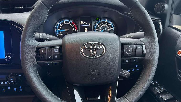 (ACC) Adaptive cruise control switch on steering wheel, 4.2" Multi information display, 8" multimedia system, Black extended surrounds on front fog lamps, Bluetooth connectivity, Colour multi information display, Dynamic guide lines on reversing camera, E-Call emergency call system, Eco driving indicator, Embedded navigation system with cloud connectivity, Front and rear parking sensors, Fuel heater, Intelligent adaptive cruise control, Lane departure alert with brake induced steering, Lane departure warning system, Lane trace assist, Lights on warning buzzer, Multi info, multimedia, telephone, voice recognition switches on steering wheel, MyT connected services, Panoramic view monitor, Power steering, Pre-collision system with pedestrian detection, Reversing camera, Road sign assist, Smart phone integration with Android auto & Apple CarPlay, Tachometer, Tyre pressure warning system (TPWS), Variable flow control (VFC) power steering, Washer fluid level warning, 6 speakers, Digital radio (DAB), MP3 compatibility, Steering wheel mounted audio controls, USB connector, Anti jam protection on front power windows, Auto dimming rear view mirror, Auto Headlights, Automatic headlamp levelling, Automatic high beam, Bi-tone dark grey and grey wheel arch moulding, Black door moulding, Black front spoiler, Black side bar with steps, Body coloured front bumper, Bumper under run protector, C - pillar in black, chrome insert on upper front grille, Dark grey door handles, Dark grey door mirrors, Dark grey front under run, Dark grey insert in headlamps, Dark grey painted lower front grille, Dark grey rear bumper, Dark grey upper front grille surround, Door mirror indicators, Electric front windows with one touch auto up & down function, Electric heated door mirrors, Electronic platform, Emergency brake light assist (EBS), Fixed rear window, Follow me home headlights, Front and rear mudguards, Front and rear power windows, Front spoiler, Front wiper De-icer, Green tinted glass, Headlight cut-off reminder, Heated rear window, Honeycomb black painted front grille, Honeycomb dark grey front grille, Invincible X wide front bumper, LED Daytime running lights, LED dual beam projector headlights, LED front fog lights, LED High mounted stop light, LED Indicators, LED rear brake lights, LED rear combination lights, LED rear lights, Microphone on front personal light, Mud flaps front and rear, Power adjustable door mirrors, Power rear side window, Power retractable door mirrors, Rear doors, Rear fog lights, Rear tailgate, Rear window defogger system, Rear window privacy glass, Shark fin antenna, Silver insert on side doors, Silver surround on multimedia display screen, smoke tinted headlights, Tailgate damper, Trailer sway control, Underbody protection cover, Variable front wipers, Variable intermittent windscreen wipers, Windscreen shadeband, 2 rear coat hooks, 220V power socket, 4 spoke leather steering wheel, 60/40 split tip-up rear bench seat, Adjustable driver seat belt extender, Adjustable rear headrests, Ambient door lighting, Ambient lighting on rear doors, Assist grips in centre pillar, Front pillar and overhead, Auto up and down function on 2nd row, Black centre console, Black front door assist grips, Black insert on centre console, Black upper dashboard, Carpet covered floor, Centre and front room light, Centre console coolbox, Centre console with lid, storage and armrest, Chrome interior door handle, Chrome surround on air conditioning buttons, Clean air filter, Closed upper passenger dashboard storage compartment, Cooler in upper glove box, Driver and passenger seatback pockets, Dual zone automatic air conditioning, Front bottle holders, Front console box, Front cup holders, Front door pockets, Heated driver and front passenger seats, Heated front and rear seats, Illuminated entry system, Inner load hooks on cargo deck, Key reminder warning, Leather gearshift, Leather upholstery, LED Driver and front passenger personal lights, Light blue ambient lighting on front doors, Locking glovebox, Manual telescopic steering wheel, Manual tilt steering wheel, Mirror on passenger sun visor, Multifunction steering wheel, Open tray on passenger dashboard, Pollen filter, Power adjustable drivers seat, Power reclining and sliding driver seat, PTC and viscous heating system, Rear armrest, Rear assist grips, Rear bottle holders, Rear cup holders, Rear door armrest, Rear door pockets, Rear headrests 3, Rear passenger footwell heating, Rear passenger room light, Seatback pockets - shopping bag hooks, silver gear shift surround on centre console, Silver insert on gear shift, Single compartment glove box, Slow opening on lower glovebox, Sunglasses holder, Synthetic leather armrest, Ticket holder on driver sun visor, Under rear passenger bench storage, Child proof rear door locks, Child safety door lock, Front and rear seatbelts reminder, Front passenger airbag detector, Isofix child seat preparation, Passenger airbag on/off switch, Pre tensioners and force limiters, Rear middle 3 point seat belt, Supplement restraint system (SRS) 7 airbags - driver and passenger, knee, side and curtain, Immobiliser, Lockable tailgate, Power door locks, Power passenger window lock, Remote central locking, Smart entry and start system button, Smartphone remote door lock, Smartphone remote hazard lights system, 2 12v sockets, 4x4 rear differential lock, 4x4 steering angle display, Anti lock braking system (ABS), Auto limited slip differntial, Brake assist, Diesel particulate filter, Double wishbone front suspension, Downhill Assist Control (DAC), Hill start assist, Leaf spring rear suspension, Load sensing proportioning system, Pitch and bounce control, Stop/start function, Traction control, Upgraded front and rear differentials, for enhanced torque and drivability, Vehicle stability control, Black chrome deco line on upper dashboard, Black chrome insert on centre air vents, Black chrome side air vent surrounds, Black side air vents, Matt grey 