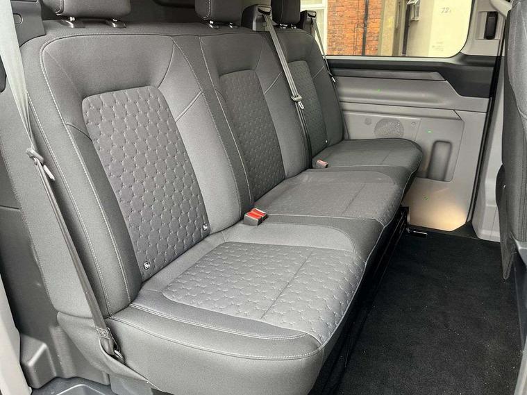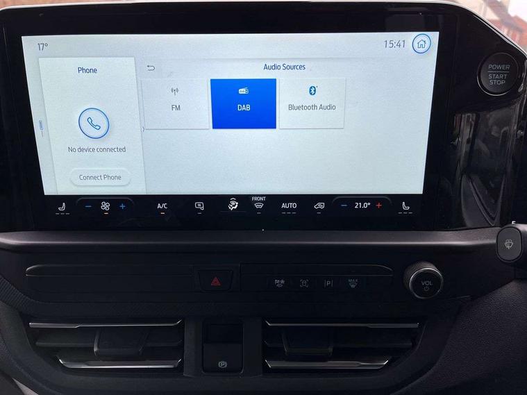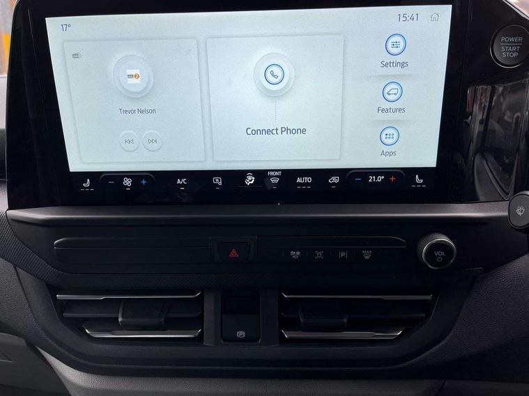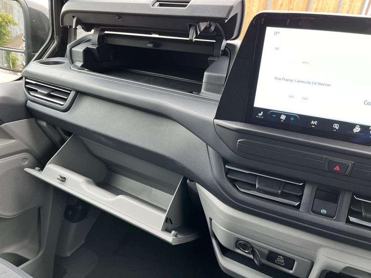 13" Touchscreen, 5G embedded modem, AECS NO SMS/Roll Detect 2G, PAS, Rear USB charge port, Tyre pressure monitor, SYNC 4 - Android Auto/Apple Car Play, advance speech recognition, over the air update capability, Automatic headlights, Automatic windscreen wipers, Body coloured door mirrors, Body coloured front bumper, Body coloured rear bumpers, Daytime running lights, Electric front windows with one touch facility for driver and front passenger, Front mud flaps, Front splash guards, Low roof line, Molded load floor liner, Quickclear front window defroster, Rear cargo hinged door, Rear splash guards, Trailer sway control, 3 Seat Rear seats with under seat stowage, 6 Load compartment tie down loops, Carpet floor in first row and second row, Courtesy light, DCiV Moulded polymer bulkhead, Interior grab handle with driver's sunglasses holder, LED lights, Locking glove box lid, Rear reading light, Rubber in cargo area, Sensico gearshift knob, Super bright load compartment lights, Passenger airbag, 2 remote keys, Alcohol Interlock wiring preparation pack, Keyless entry and start, Locking wheel lug nut, Thatcham category 1 alarm, 63 litre fuel tank, ABS, ESP, Hill launch assist, Traction control, Full wheelcovers,