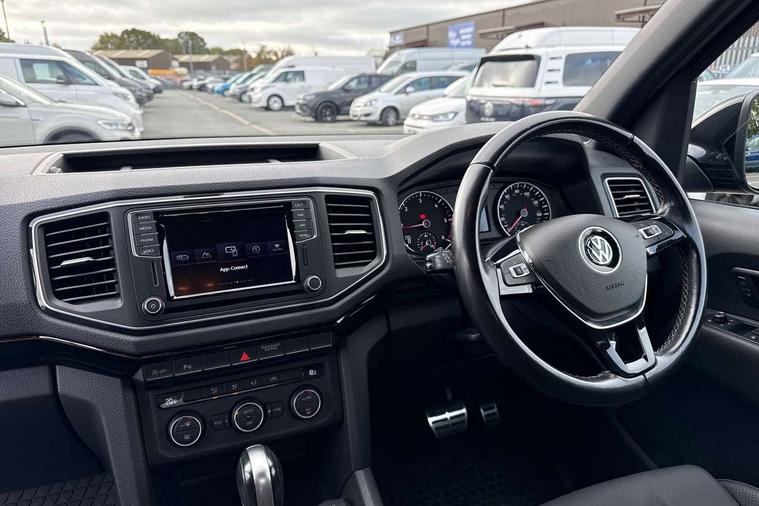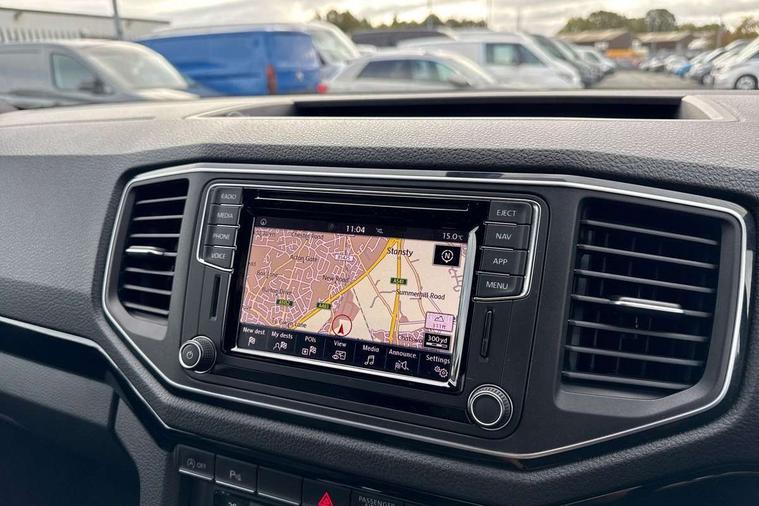 Cruise control with speed limiter, Discover media navigation system includes guide + inform, SD card and off road information display, Front and rear park distance control with rear view camera preparation, Headlight range adjustment, Premium colour multifunction display, Preparation for bluetooth hands free kit, Service indicator, Servotronic speed related PAS, Voice control system, Washer fluid level indicator, 6 speakers, App connect, Digital radio (DAB), USB interface + AUX-IN jack, Add-on kit wider wheel arch cover, Additional dust seals on outside, Bi-xenon headlights, Black fog light frame, Black polish trim strip on grille, Black rear bumper, Black side bars, Body colour sports bar with Aventura emblem, Body coloured door handles, Center high mounted LED brake light, Dark coloured lenses with tail light assemblies, Driving rear fog light on left, Electric front windows, Electric rear windows, Electrically heated and adjustable door mirrors, Front fog lights with cornering function, Gloss black door mirrors, Heat insulating front side windows, Heated front washer nozzles, Heated rear window, LED licence plate lighting, Manual dimming door mirror, Painted bumpers, Power folding door mirrors, Rear privacy glass, Rear side window, Underbody cladding styling, Without luggage compartment lighting, Without roof rails/roof load rack, 12 way electrically and 2 way manually adjustable ergoComfort driver and front passenger seat, 3 seater rear bench, Air conditioning - Climatronic, Airbag label on front passenger sunvisor, Aventura floor mats, Black headlining, Centre console with cover, Cup holders in cab, Dust/pollen filter, Fine nappa leather upholstery, Front air vents with heater duct in 2nd row seats, Heated front seats, Isofix child seat anchorage points on outer rear seats, Jack and tool kit, Leather gearknob and gaiter, Leather gearshift cover, Leather handbrake lever, Load compartment protective coating, Multi function leather steering wheel with gearshift paddles, Storage under front seats, Sun visors with vanity mirrors, Three height adjustable rear headrests, Without lumbar support in seat bacrests, Lights and vision pack - Amarok, Smokers pack with astray - Master, Driver and passenger airbag, Driver's seat belt reminder with electric buckle, Front passenger airbag deactivation, Side and front curtain airbags, 2nd key for remote central locking, Alarm with passenger compartment control and tow away protection, Back-up horn, Lockable comfort tailgate, Locking wheel bolts, Remote control central locking with internal switch, Tilt sensor and single door unlocking, 17" chassis with 17" front disc brake and 16" rear disc brake, ABS + ESP, ASR, Automatic post collision braking system, Brake assist, Diesel particulate filter, Four 12v sockets including 1 in cargo area, Heavy duty suspension, Hill Descent Control, Hill hold assist, Traction control, Trailer stability assist, Gloss black decorative inserts on dashboard, 20" Talca black alloy wheels, Space saver spare wheel,