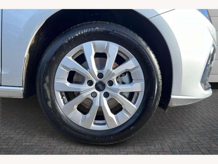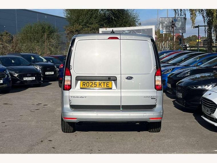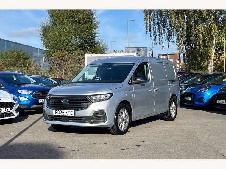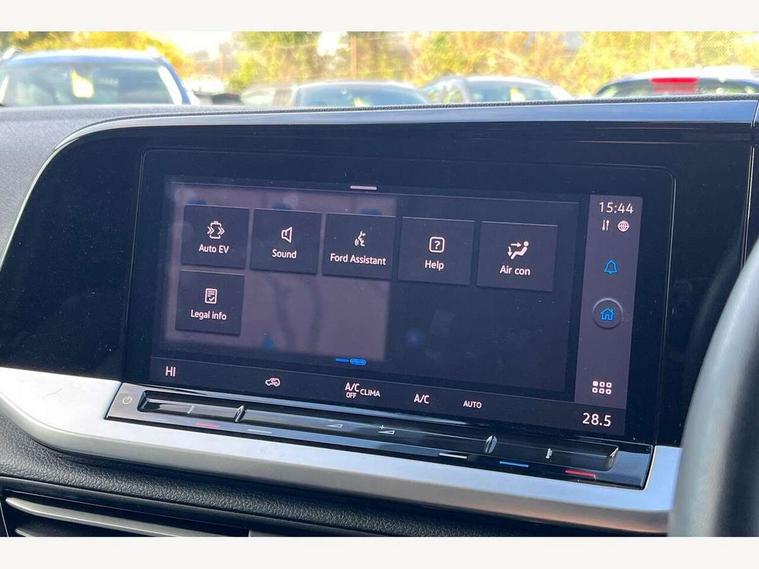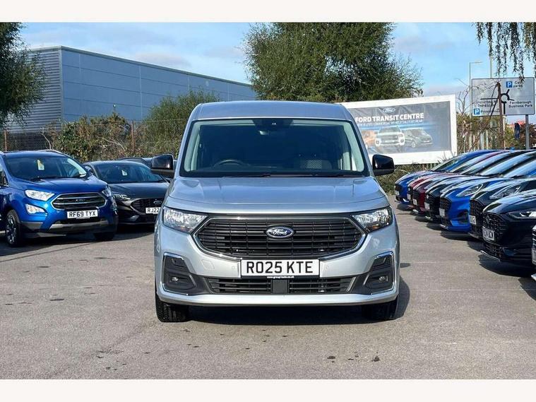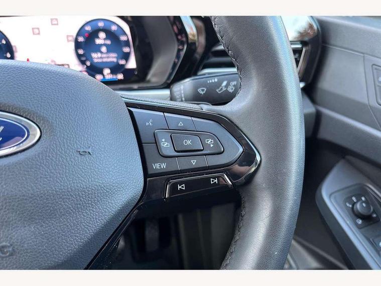 10" touchscreen infotainment display with volume and temperature slider controls, Android Auto and Apple Carplay with USB or wireless connectivity, Brake wear indicator, Enhanced digital cluster with navigation integration, Fordpass connect modem including eCall, Front camera system, PAS, Tyre pressure monitoring system with cluster display of tyre pressures, Wireless charging pad, 4 speakers, DAB radio bluetooth, voice control and navigation, Two USB (45W type C) front power/Data points, Auto Headlamps - Follow Me Home, Automatic headlamps on/off, Automatic windshield wiper, Black painted exterior mirror caps, Body colour door handles with silver door rail, Body coloured exterior tailgate handle, Body coloured front bumper, Body coloured rear bumper, Chrome grille and fog light surrounds, Day and night inside mirror, Dual power heated mirrors, Emergency brake light flashing, Front fog lights, High mounted stop lamp, Less roof rails, Misfuel Inhibitor, Power folding door mirrors, Power front windows - One touch up-down, Quickclear electric windshield defroster, Rear tinted glass, Standard green class windscreen, Tail lamps, Weather protection seals, 12V socket in cabin, 2 way front headrestraints, 4 way manually adjustable driver seat, 4 way manually adjustable passenger seat, Cargo area dual LED lights, Cargo area hardboard trim, Centre console with open stowage, Chrome air register, Driver and passenger sunvisor with mirror, Driver seat rotary recliner, Electronic dual zone automatic air conditioning, First row LED light with map lights, Fold flat passenger seat with integrated work surface, Foot pedal, Overhead storage compartment, Pollen filter without carbon filter, Reach and rake adjustable steering column, Recirculation heater, Rubber cab floor cover, Rubber load floor cover, Sensico gear shift knob, Sensico steering wheel, Silver interior door handles, Curtain airbags, Driver and front passenger airbag, Driver and passenger seatbelt reminder, Front active seat belts, Front passenger airbag deactivation, Front seat belt adjuster, 2 remote keys, Ford KeyFree system with power starter button and deadlocking, Immobiliser, Locking wheel bolts, Thatcham alarm system, 12v socket on cargo area, 50L fuel tank, ABS, Charging cable (Type 2 Mode 3), Electric parking brake, Emergency brake assist, ESP, RSC, wind mitigation, Standard duty alternator, Start/stop system, Traction control, Gloss black cluster and infotainment bezels with silver painted instrument panel spear, 17" silver alloy wheels with blue centre caps, 215/55 R17 tyres, Tyre repair kit,