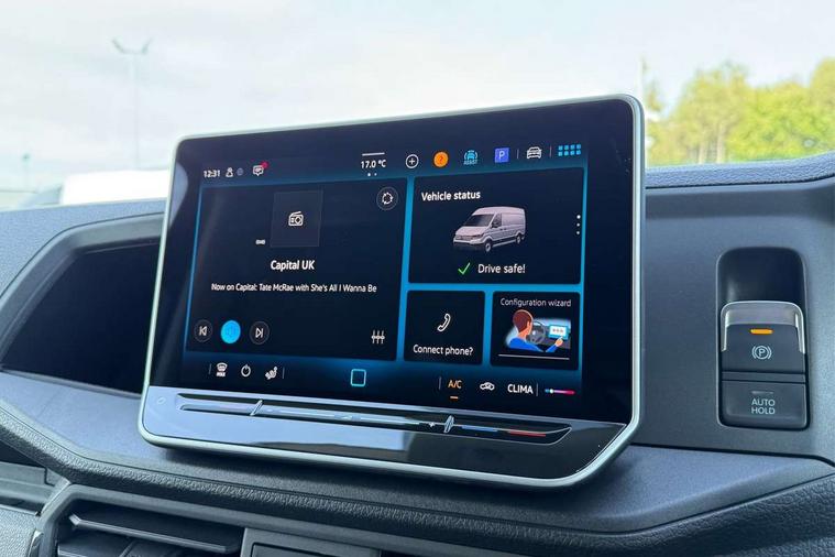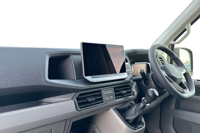 Bluetooth, Digital clock, Driver alert system, E-call + We connect basic preparation, Instrument cluster, Lights on warning buzzer, Locking fuel cap, Multi-function Display Plus, Rev counter, Service indicator, Speedometer, Voice control system, Composition media with 6.5" with we connect plus prep, 4 speaker, multifun display plus, USB, mob interface, app con, "We connect function", DAB Radio, Auto low beam mode, Leaving home function and manual coming home function, Cab doors, Convex and wide angle mirror, Driver seatbelt warning light, Electric windows, Electrically heated and adjustable door mirrors, Half painted front bumper, Heat insulating glass, Indicators in front door mirrors, One towing eye in front, Rear wing doors with 270 degree hinges, Special identification plate, Unpainted radiator grille, Air recirculation system, Ashtray, Centre console storage tray, CFCU preparation, Charcoal filter, Climatic air conditioning, Document holder on centre console, Drinks holders, Electromechanical Servotronic steering, Electronically controlled heating system, Fully adjustable suspension type driver seat, Grab handles on rear entry pillars, Height adjustable head restraints, Height and reach adjustable steering wheel, Illuminated glove compartment with lockable lid, Interior light, including 2 reading lights, Interior light, switchable by door, Jack and tool kit, Preparation for interface for external use with terminal block, Storage compartments in doors and in step, right, Storage tray on dashboard, Two 12V outlets in the cab (in the dashboard), Without rear side trim panel passenger load compartment, Non-smokers pack - Crafter, 3 point inertia reel belt on all seats, Automatic hazard light with emergency braking, Crosswind assist, Driver and front passenger airbag with front passenger airbag deactivation, Height adjustable seatbelts for outer cab seats, 1 rigid key, Anti-theft alarm with interior monitor, back up horn and tow away protect, overhead storage with two 1-DIN, reading light, SAFELOCK with 2 remote keys, Engine immobiliser, ABS, Automatic post collision braking system, EBA, EBD, EDL, ESP, Front disc brakes, HBA, Hill start assist, Parking brake - hill hold control, Start and stop system with regenerative braking, TCS, Hub cap covers,