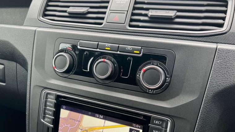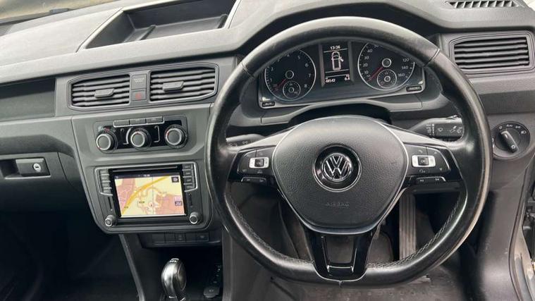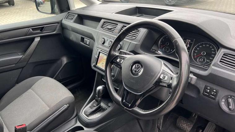 Digital clock, Dimmable dashboard ilumination, Discover media navigation system includes guide + inform with SD card maps, Driver alert system includes drowsiness detection, Headlight range control, Multi-function Display Plus, Seatbelt warning indicator, Service indicator, Servotronic speed related power assisted steering, Stop/start button, Composition colour DAB+ radio including AUX-IN, SD card slot, USB port, MP3 compatible CD player, two speakers and Bluetooth, Anti dazzle rear view mirror, Automatic hazard light activation under emergency braking, Body coloured bumpers, door mirrors and handles, Electric front windows, Heated windscreen, Roof rail preparation, Windscreen wiper with variable intermittent delay and wash-wipe system, 2 LED spot lights in load compartment, 8 way adjustability on drivers seat, including lumbar support, Drivers seat adjustable for reach and rake, Four drinks holders and storage compartment in centre console, Hardboard roof trim and painted half height side panels, Height adjustable driver seat, Height adjustable head restraints, Illuminated lockable glovebox, Jack and tool kit, LED interior light in headlining, Multi function leather steering wheel, Passenger seat with reach and rake adjustment, Reach and rake adjustable steering column, Rubber floor covering, Six lashing points for securing loads, Twin sun visors with vanity mirrors, Two door activated interior lights, Lights and vision pack - Caddy, Drivers side airbags and passenger curtain airbags, Electric seatbelt tensioners, Anti-theft alarm Thatcham cat 1, interior (cab only) and tow away protection, 12V accessory socket, Anti locking braking system (ABS), Automatic post collision braking system, Brake energy regeneration, Electronic brake force distribution (EBD), Electronic differential lock (EDL), Electronic stabilisation programme (ESP), Emergency brake assist, Engine drag torque control (MSR), Hill hold assist, Traction control system (TCS), Black wheel centre caps, Low rolling resistance tyres,